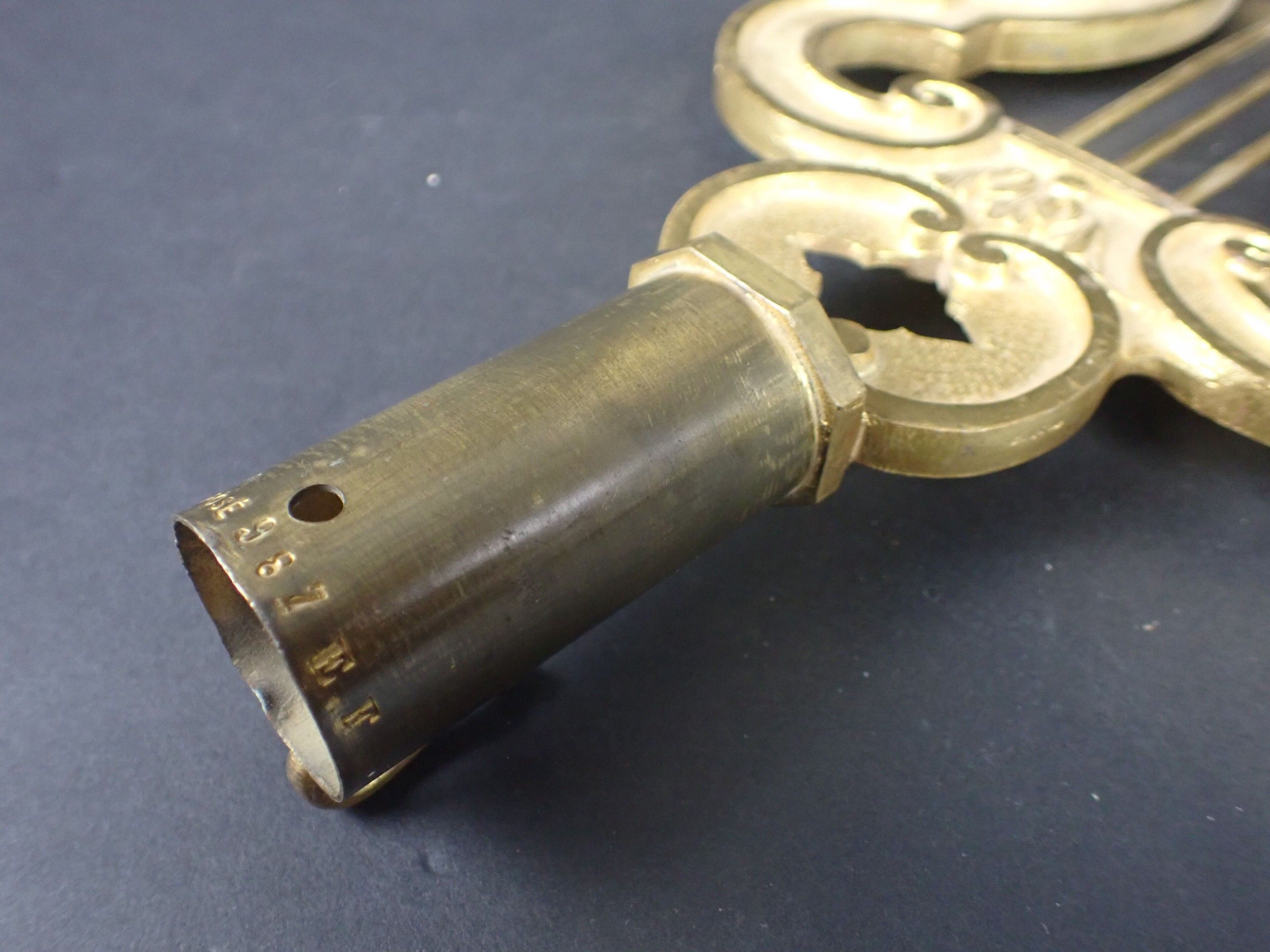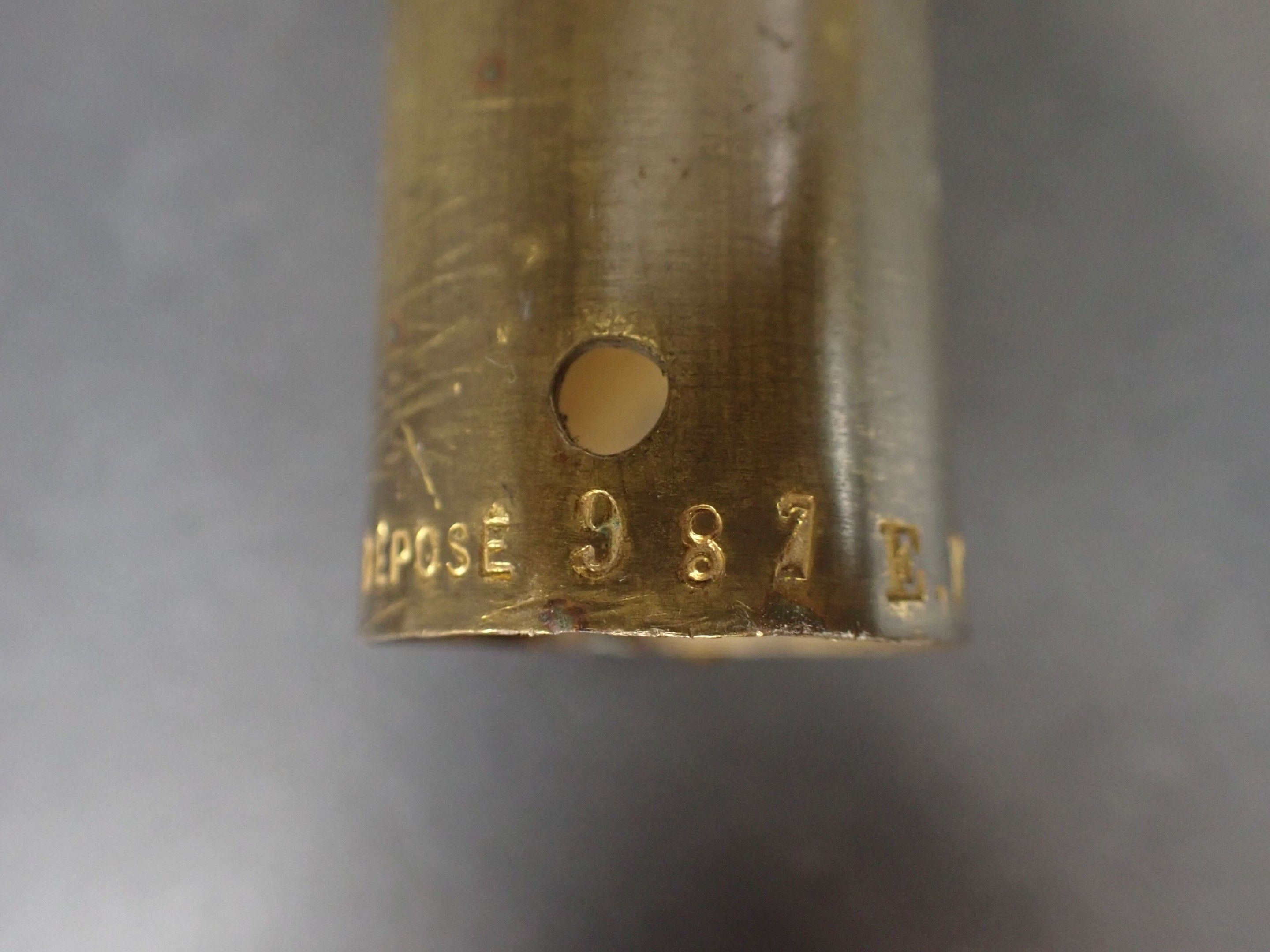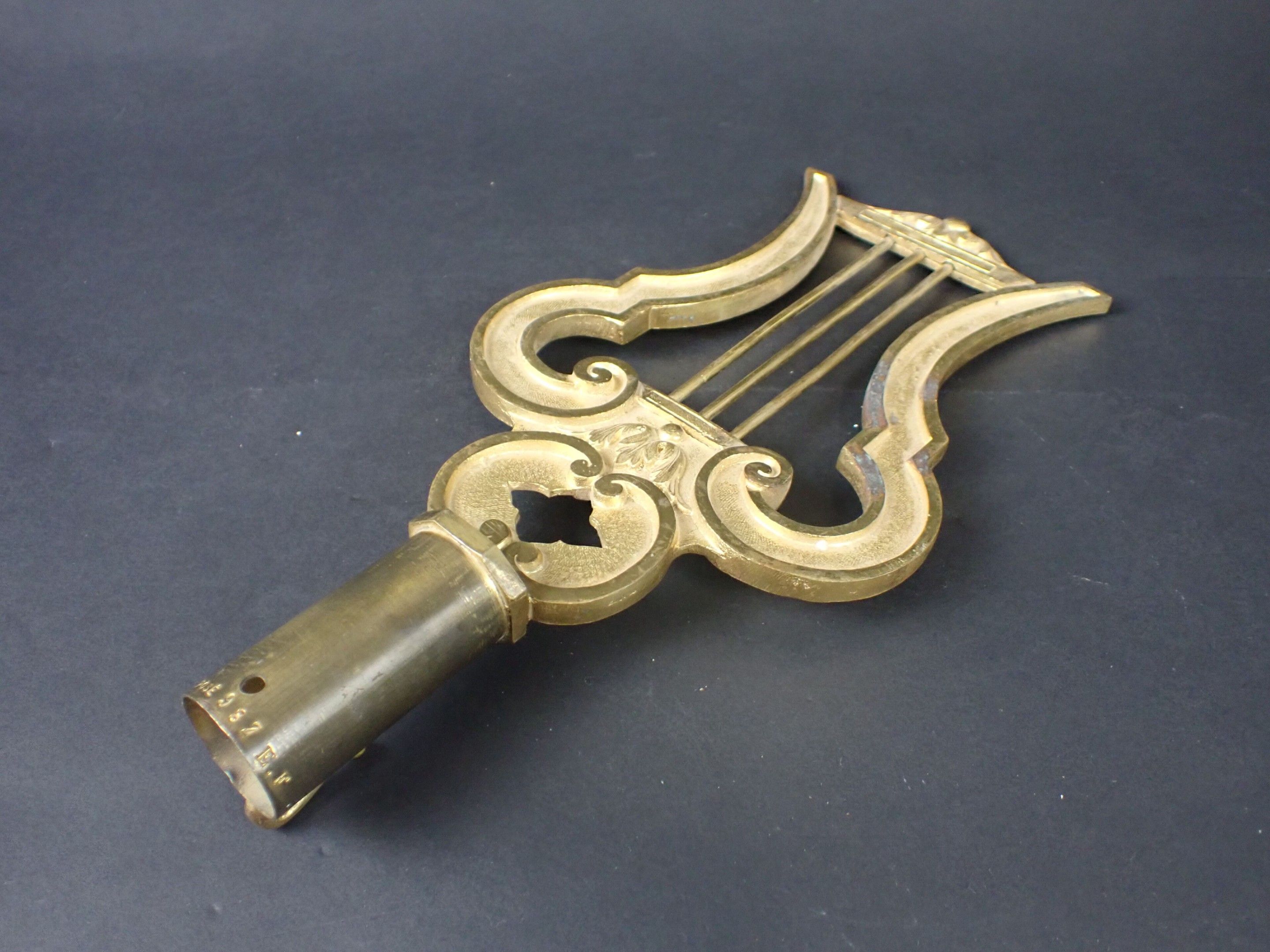 Musician's flagpole in gilt bronze in the form of a lyre, probably of the National Guard. Marked 987 E.F. Late 19th century. Height: 28 cm