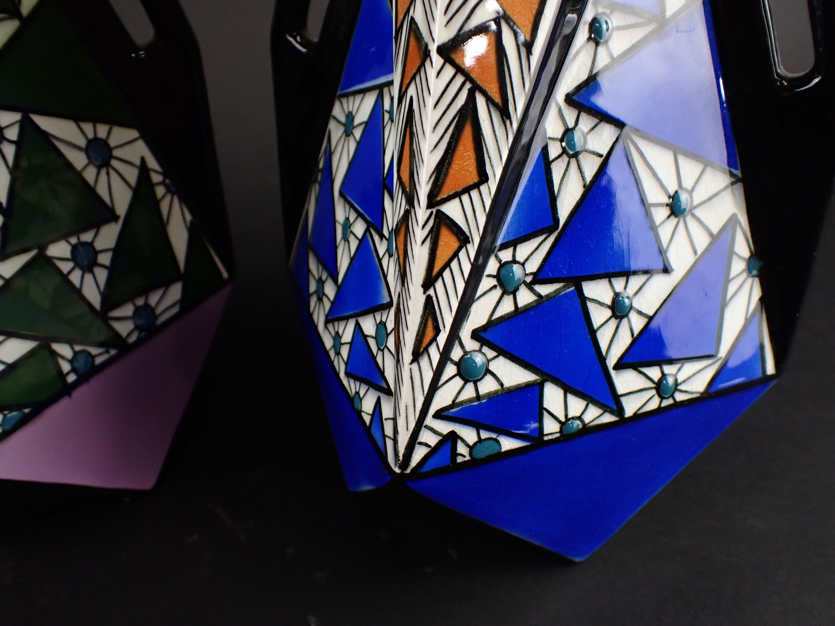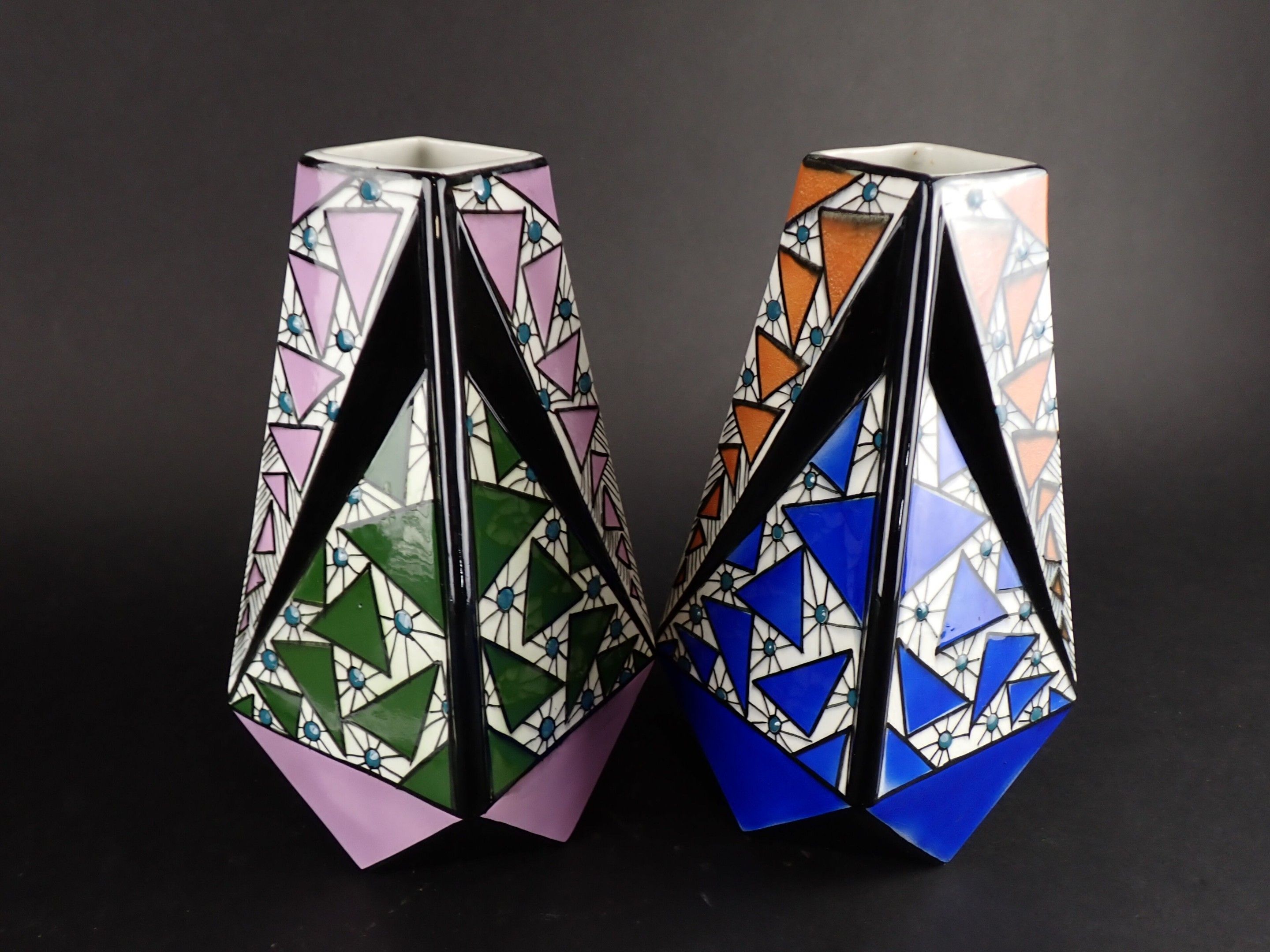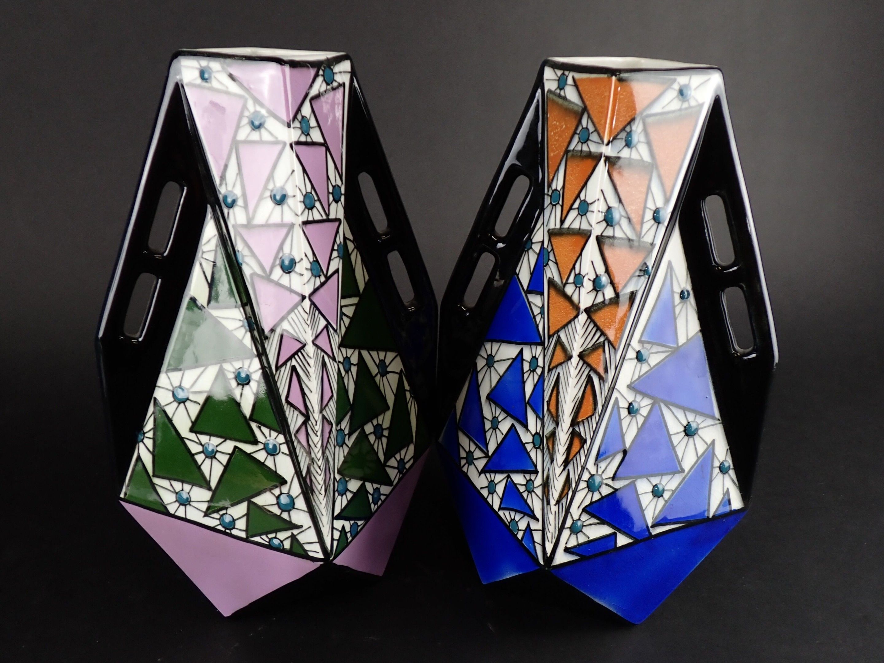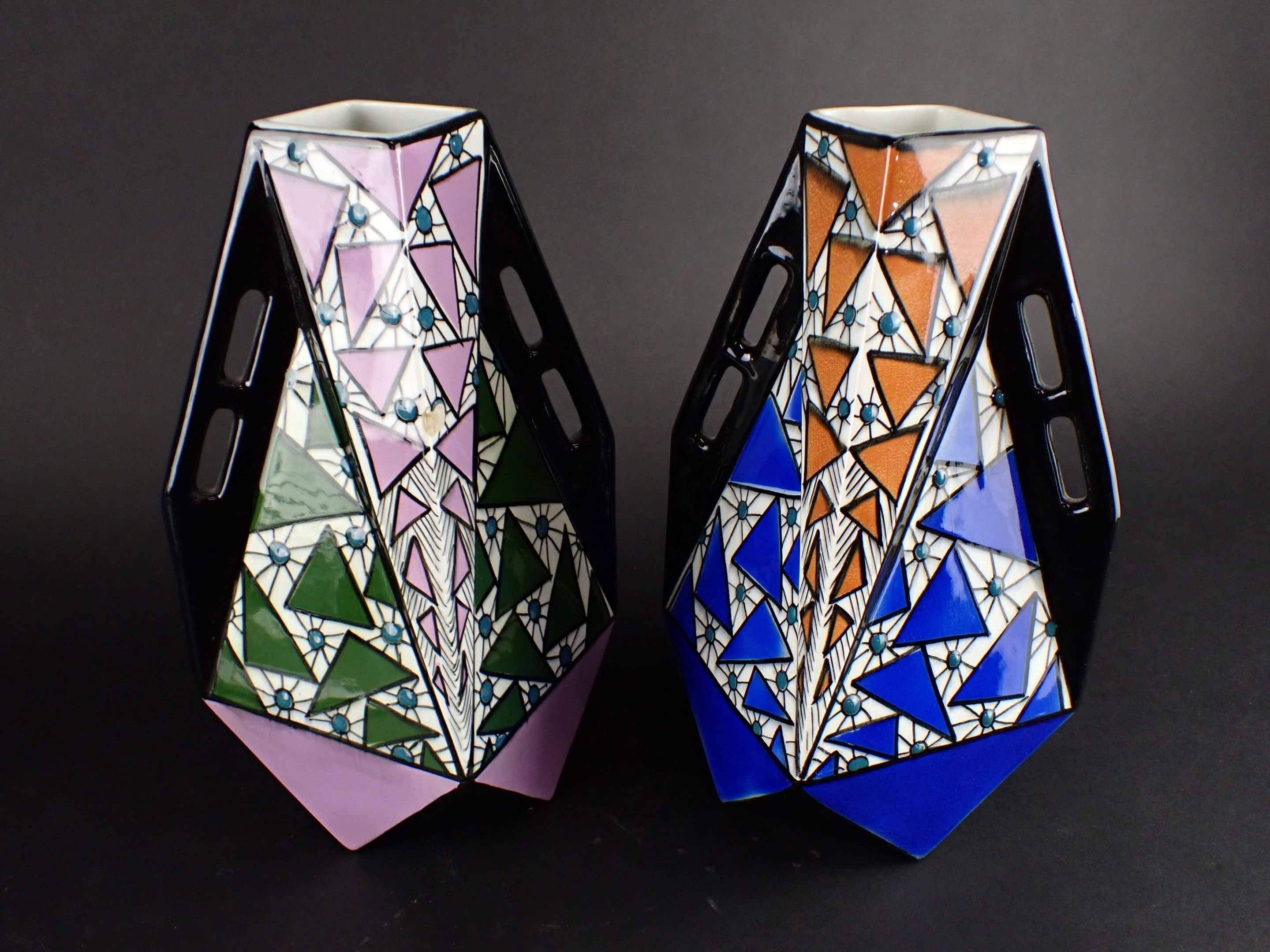 ONNAING FRERES - Pair of Art Deco glazed ceramic vases, geom…