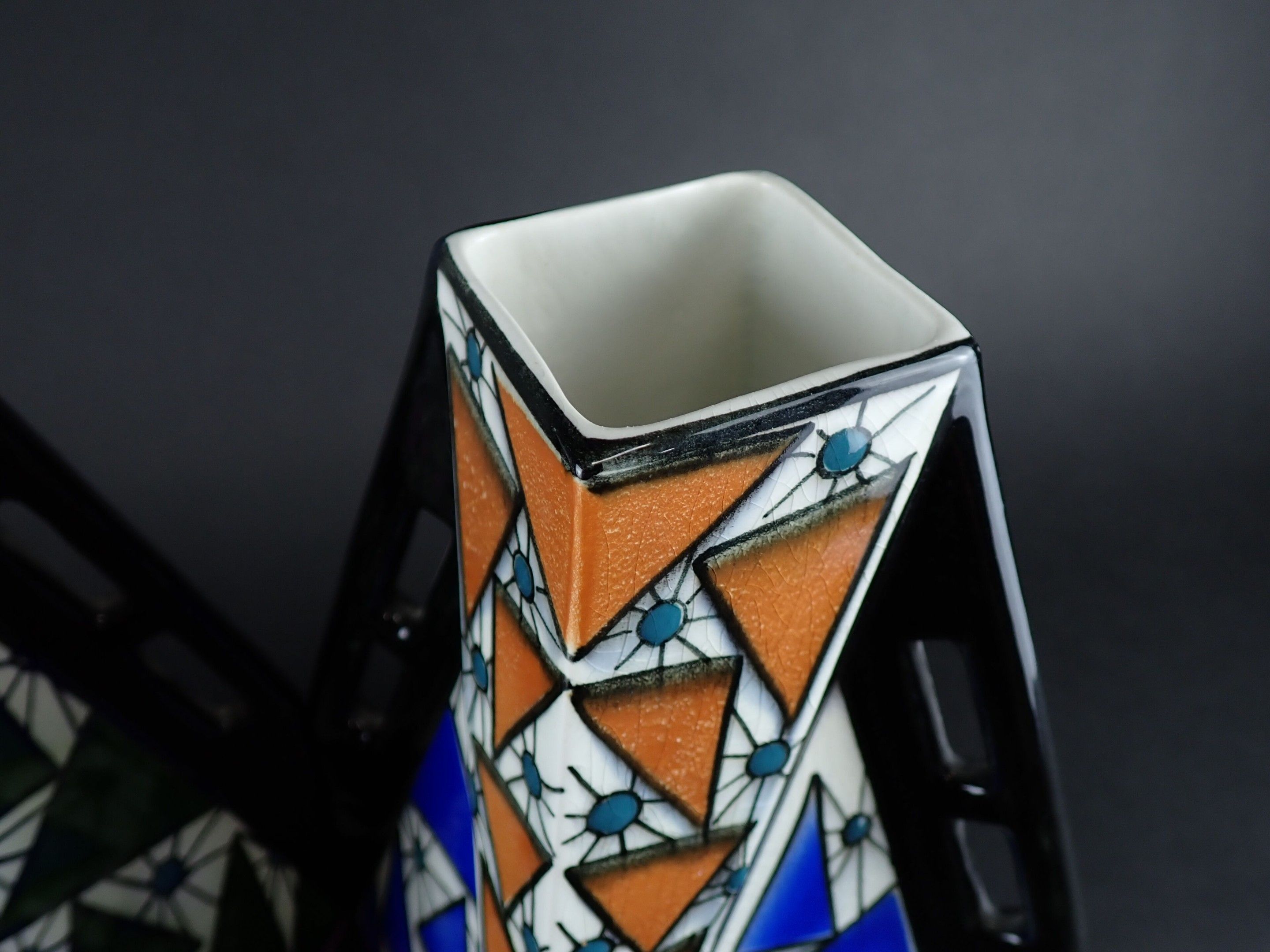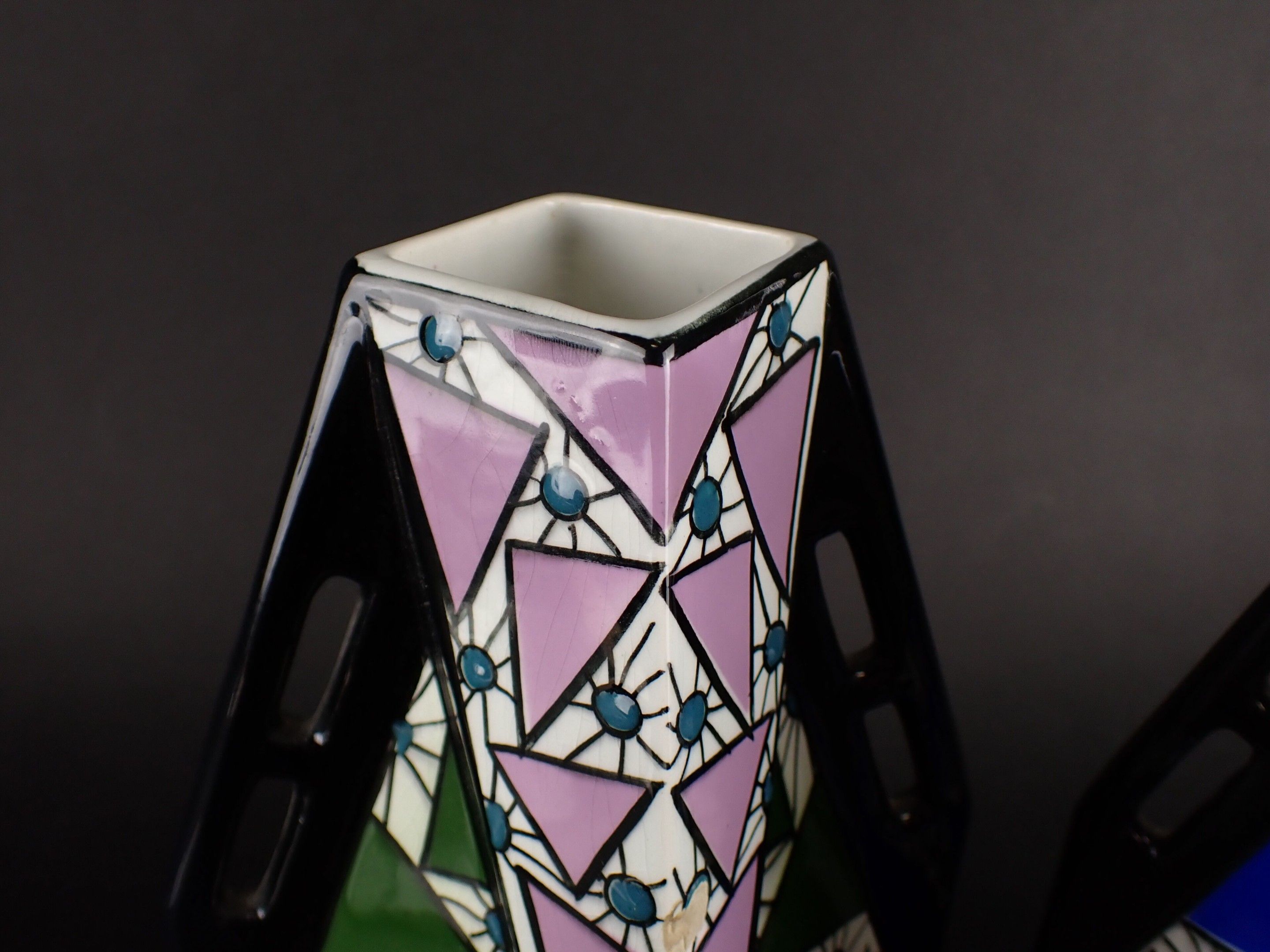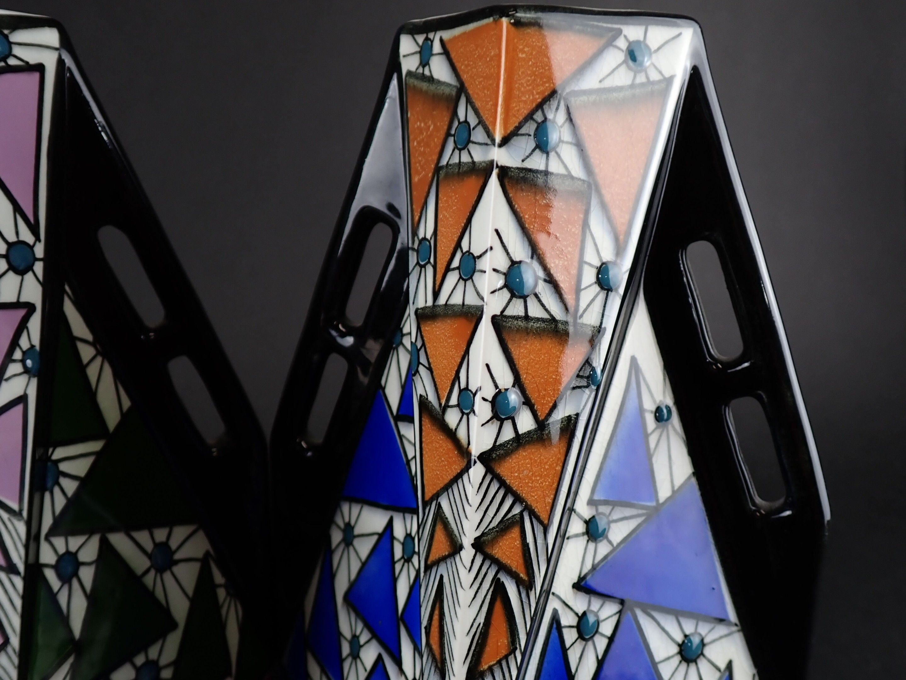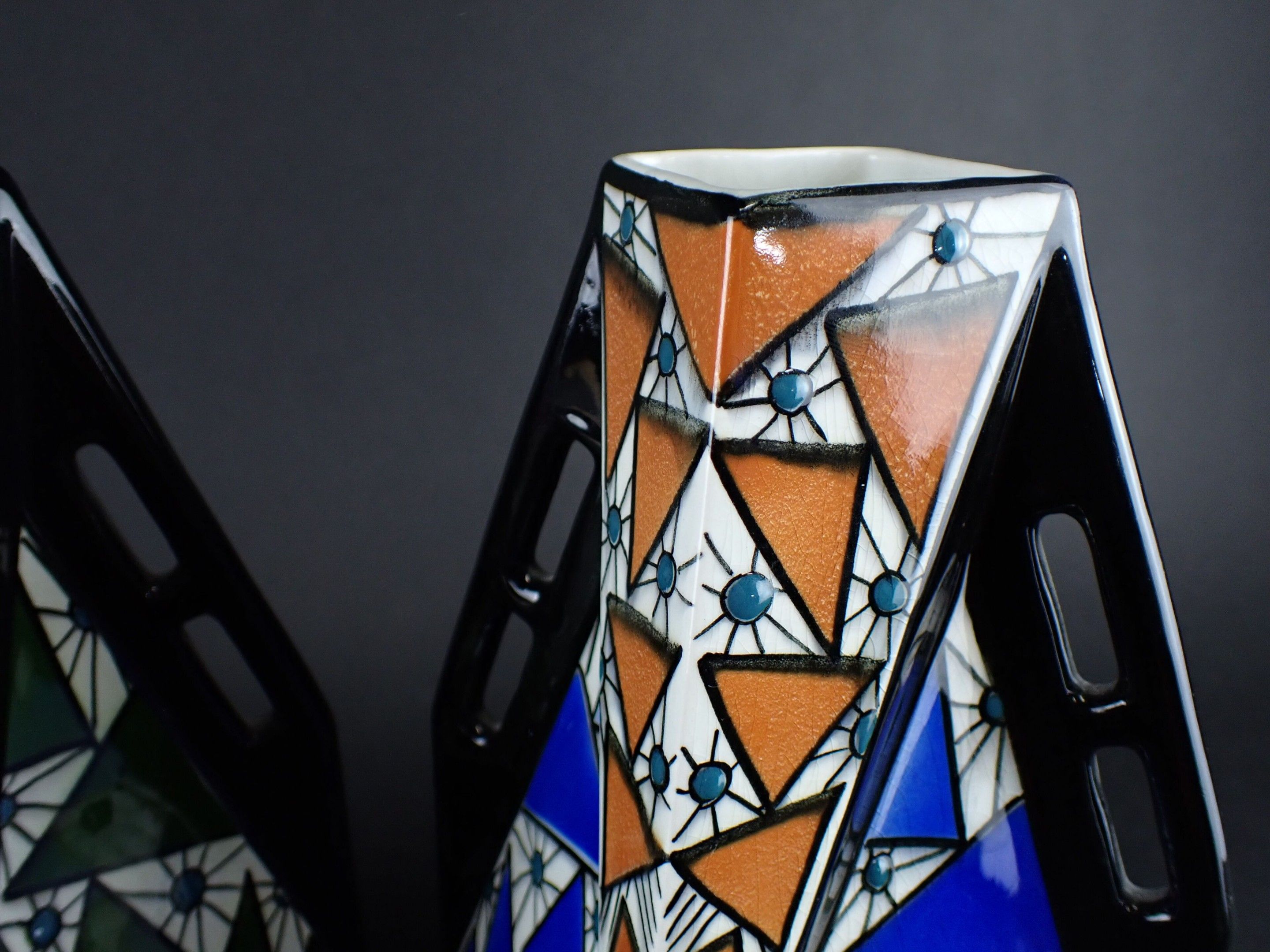ONNAING FRERES - Pair of Art Deco glazed ceramic vases, geom…
