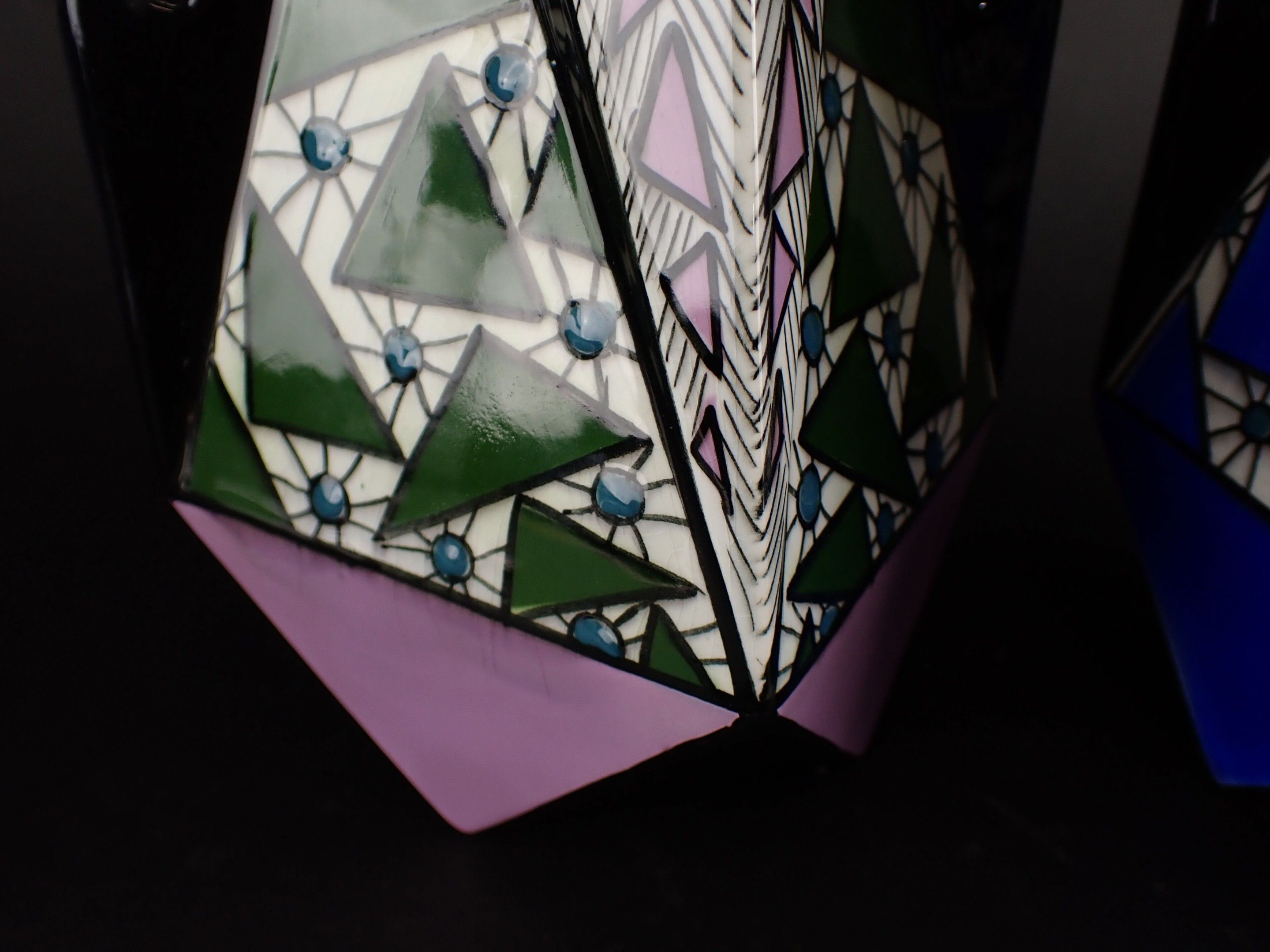 ONNAING FRERES - Pair of Art Deco glazed ceramic vases, geometric shape, signed, marked 860 Made in France. Height : 27 cm