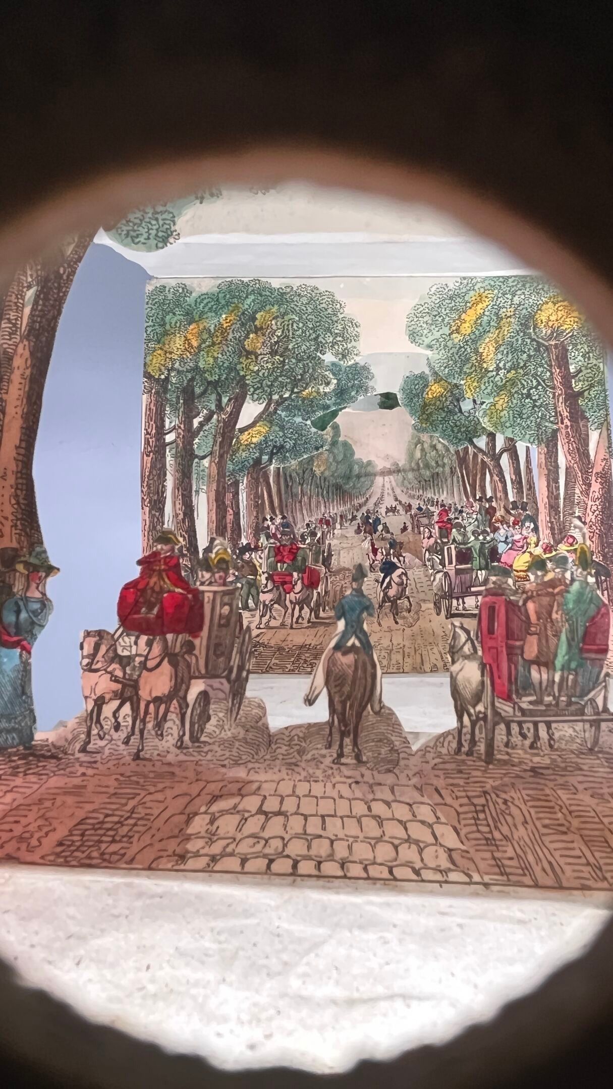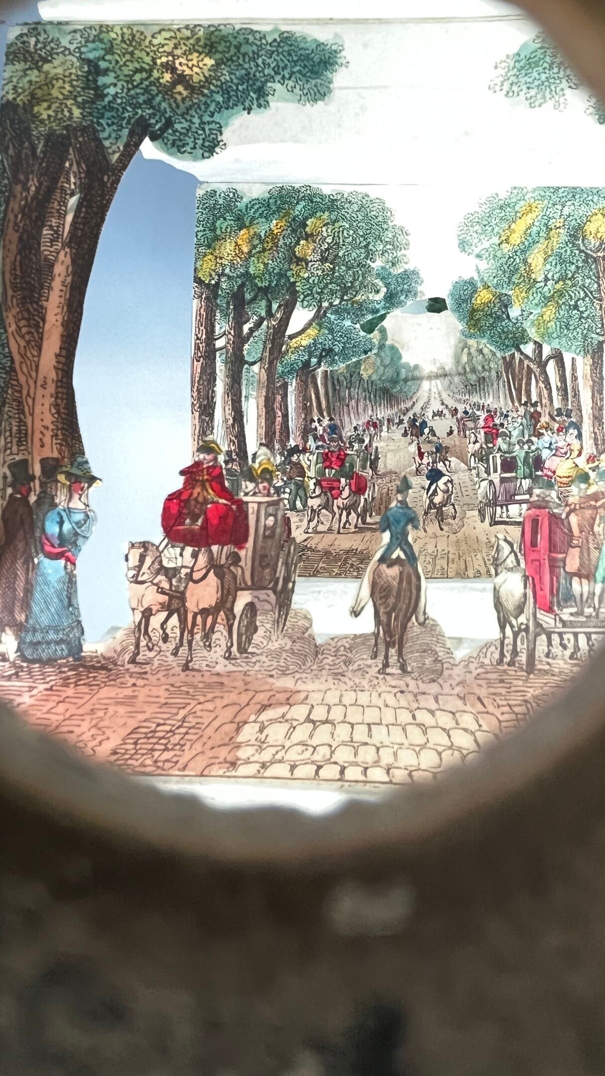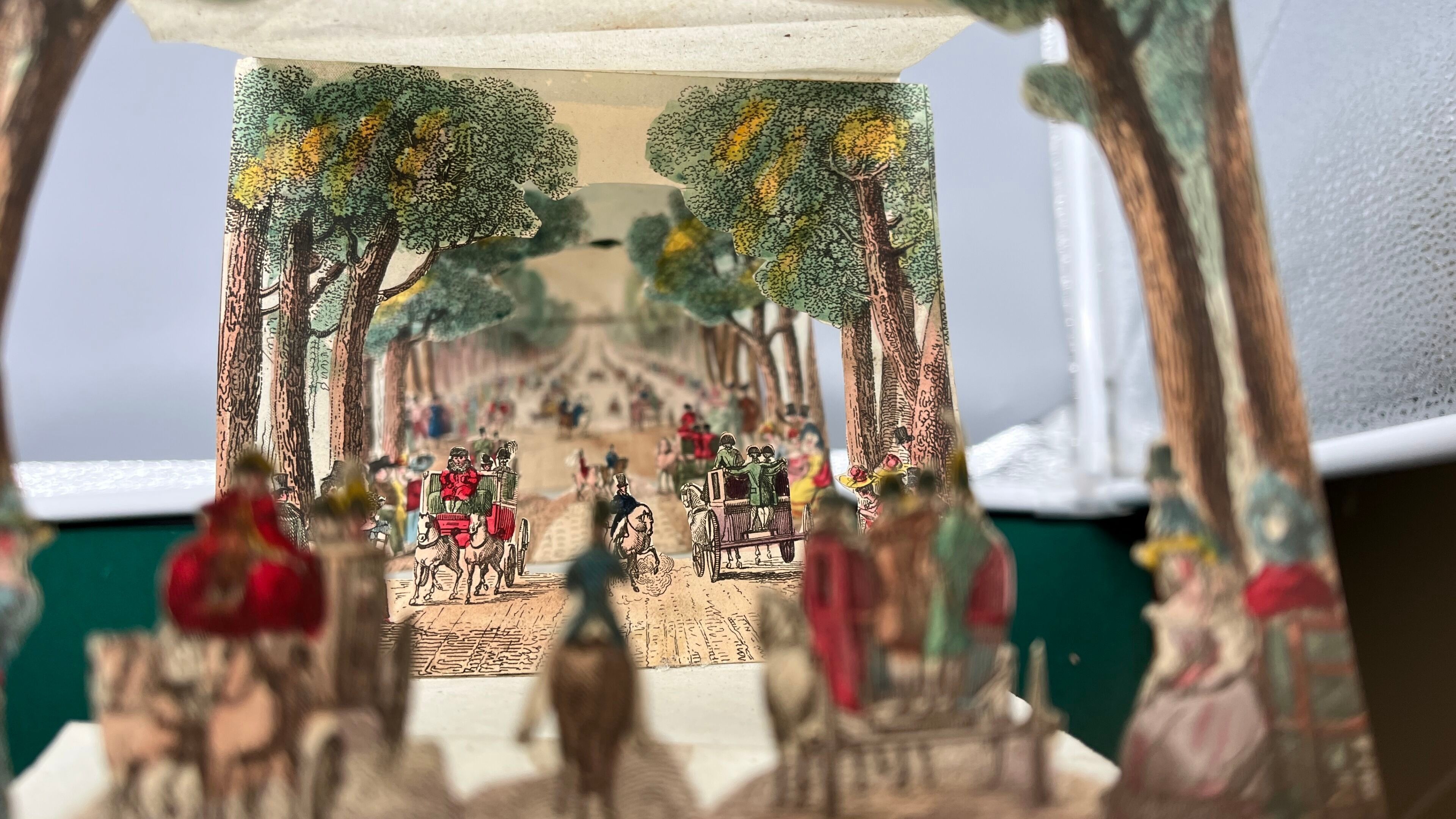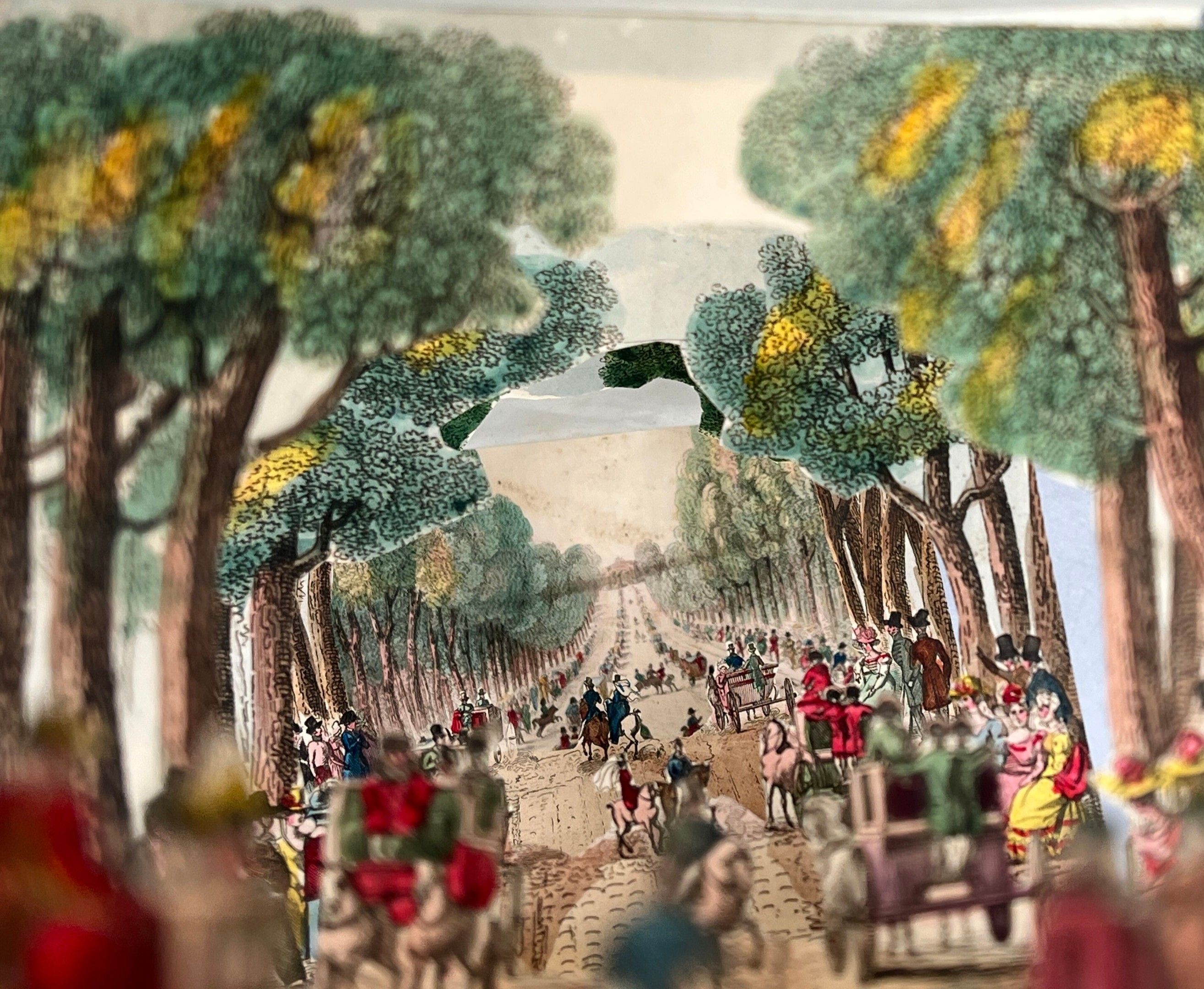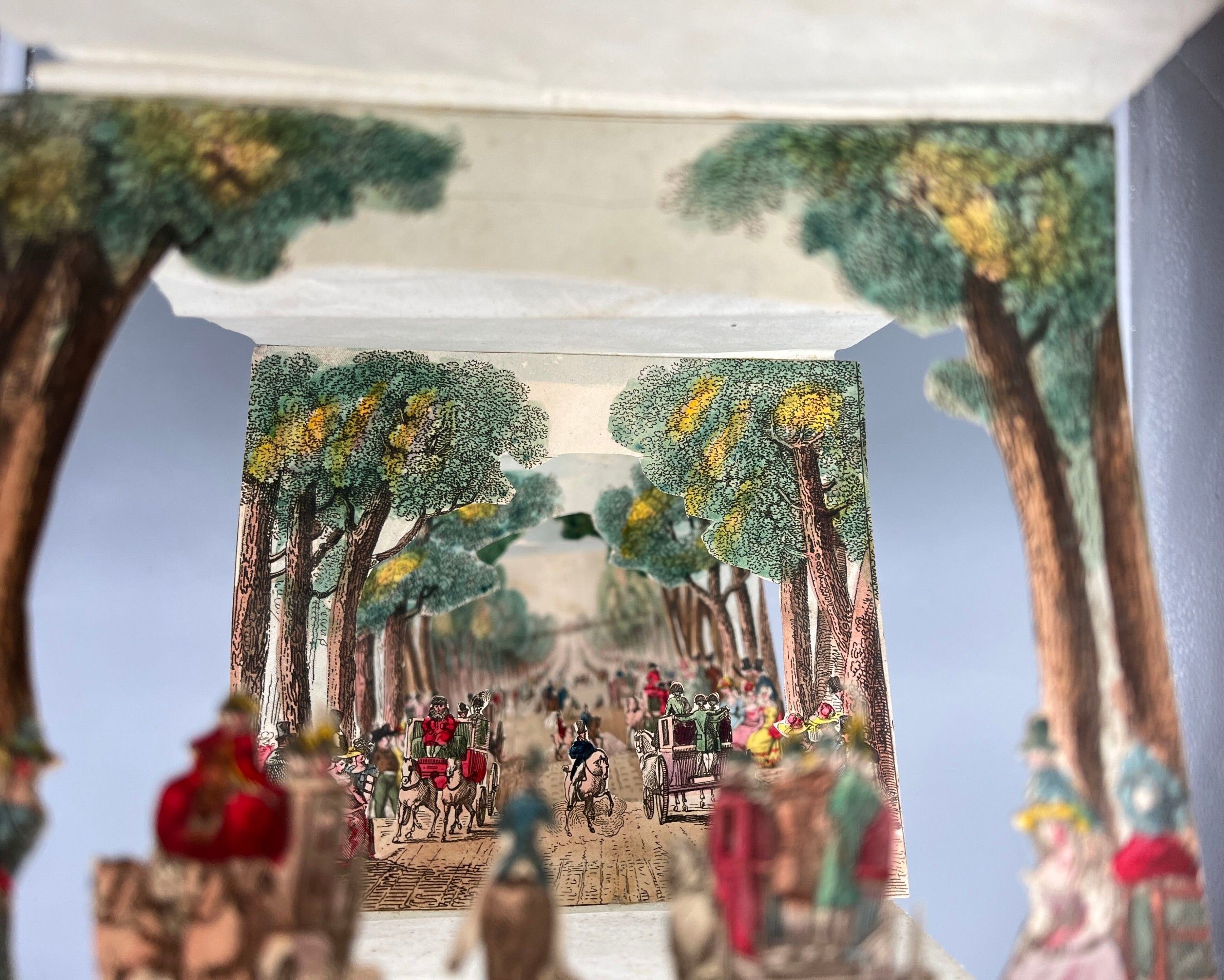 The finely perforated intermediate plates reveal the last one, depicting the Avenue des Champs-Élysées as seen from the Place de la Concorde.