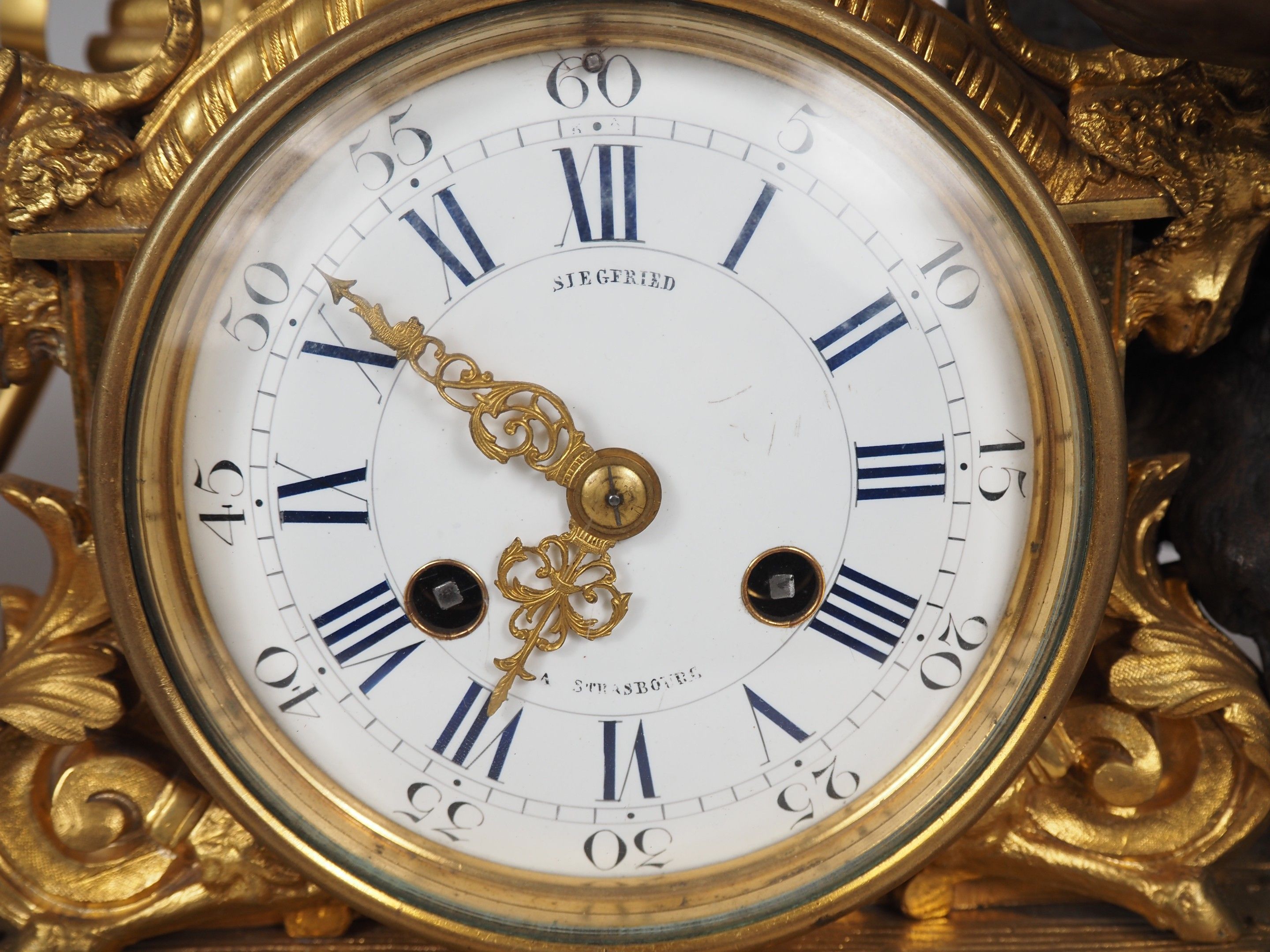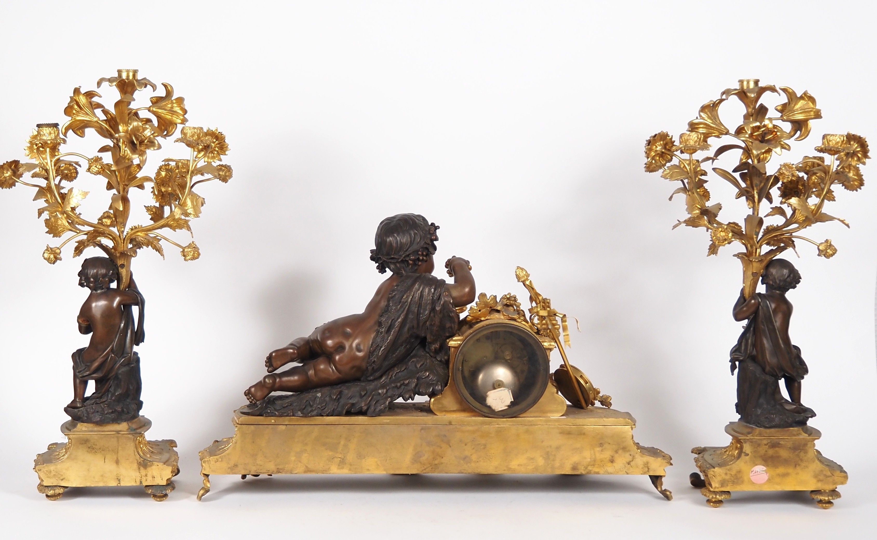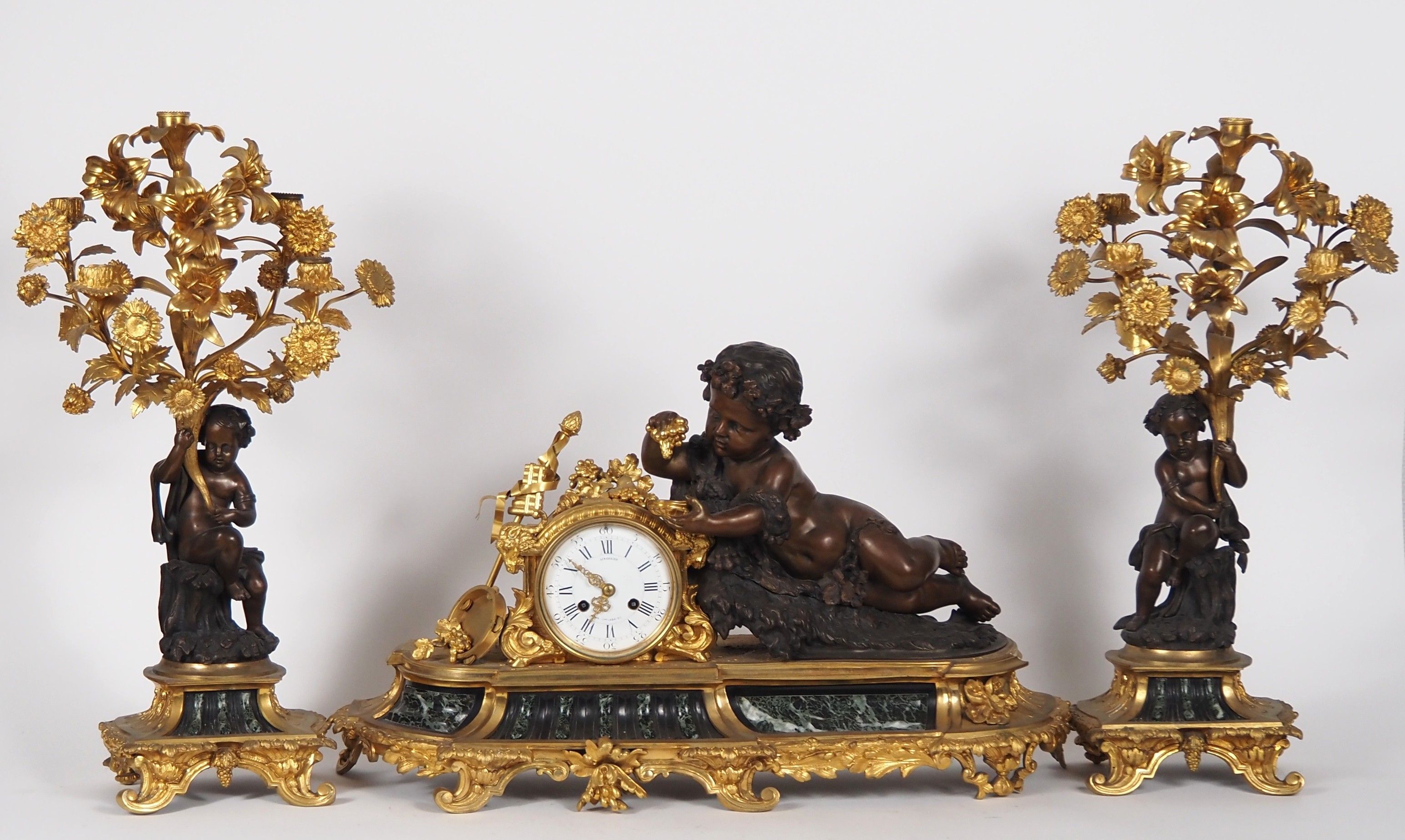 Napoleon III gilded and patinated bronze mantel set with gre…