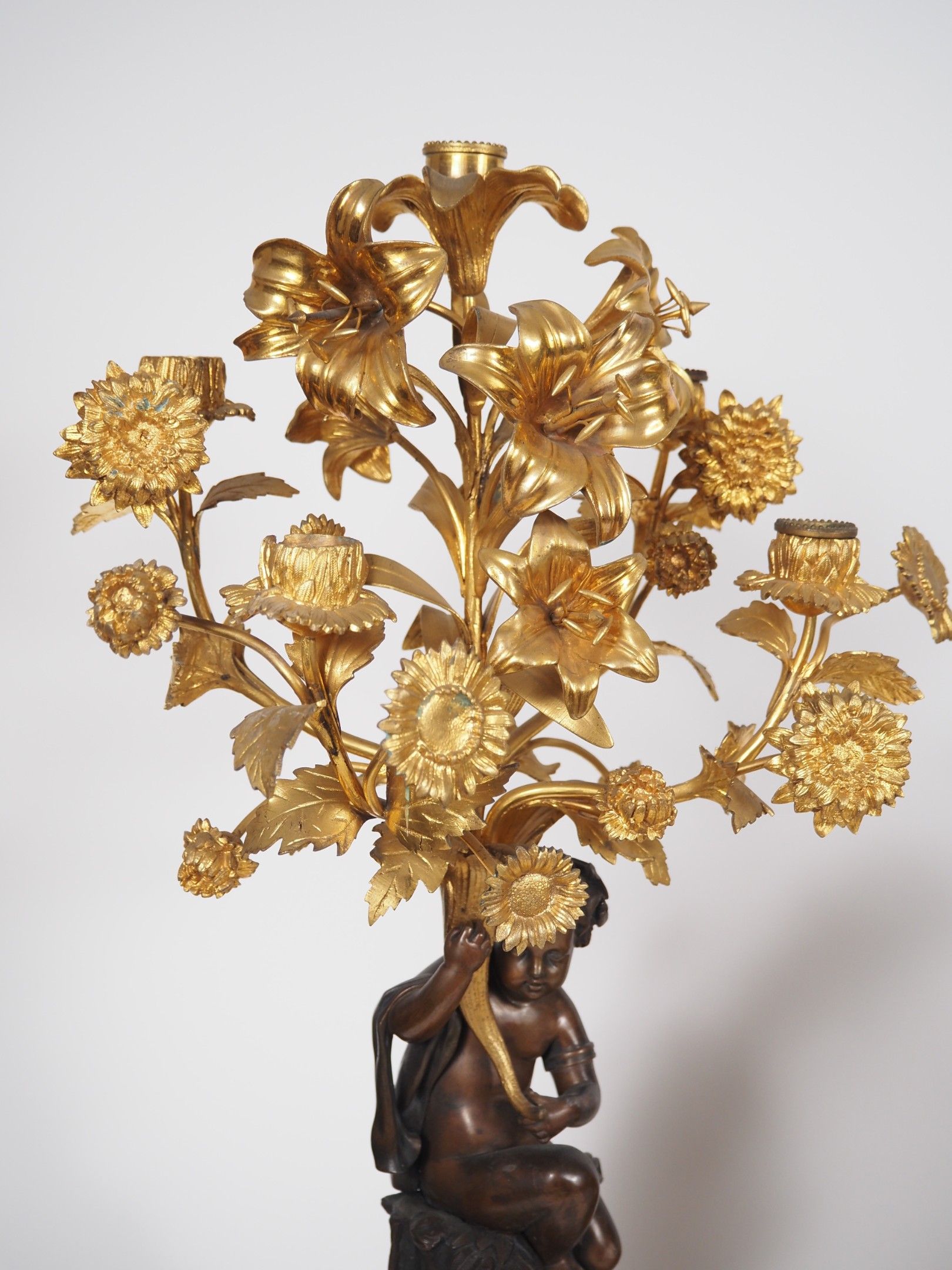 Premium Napoleon III gilded and patinated bronze mantel set with gre…
