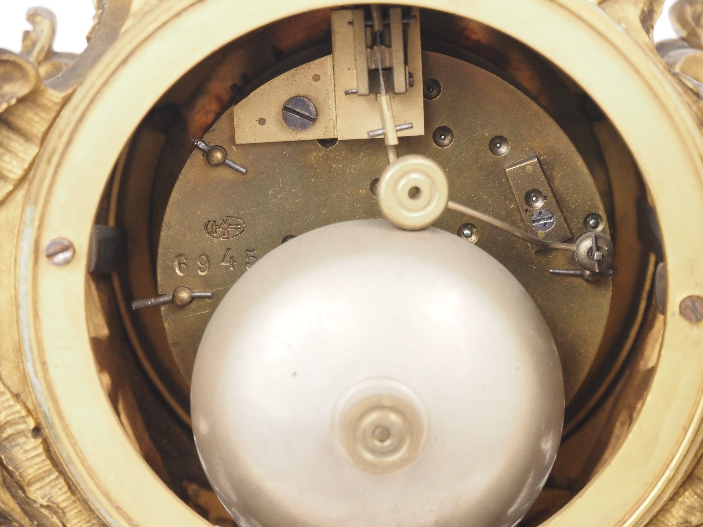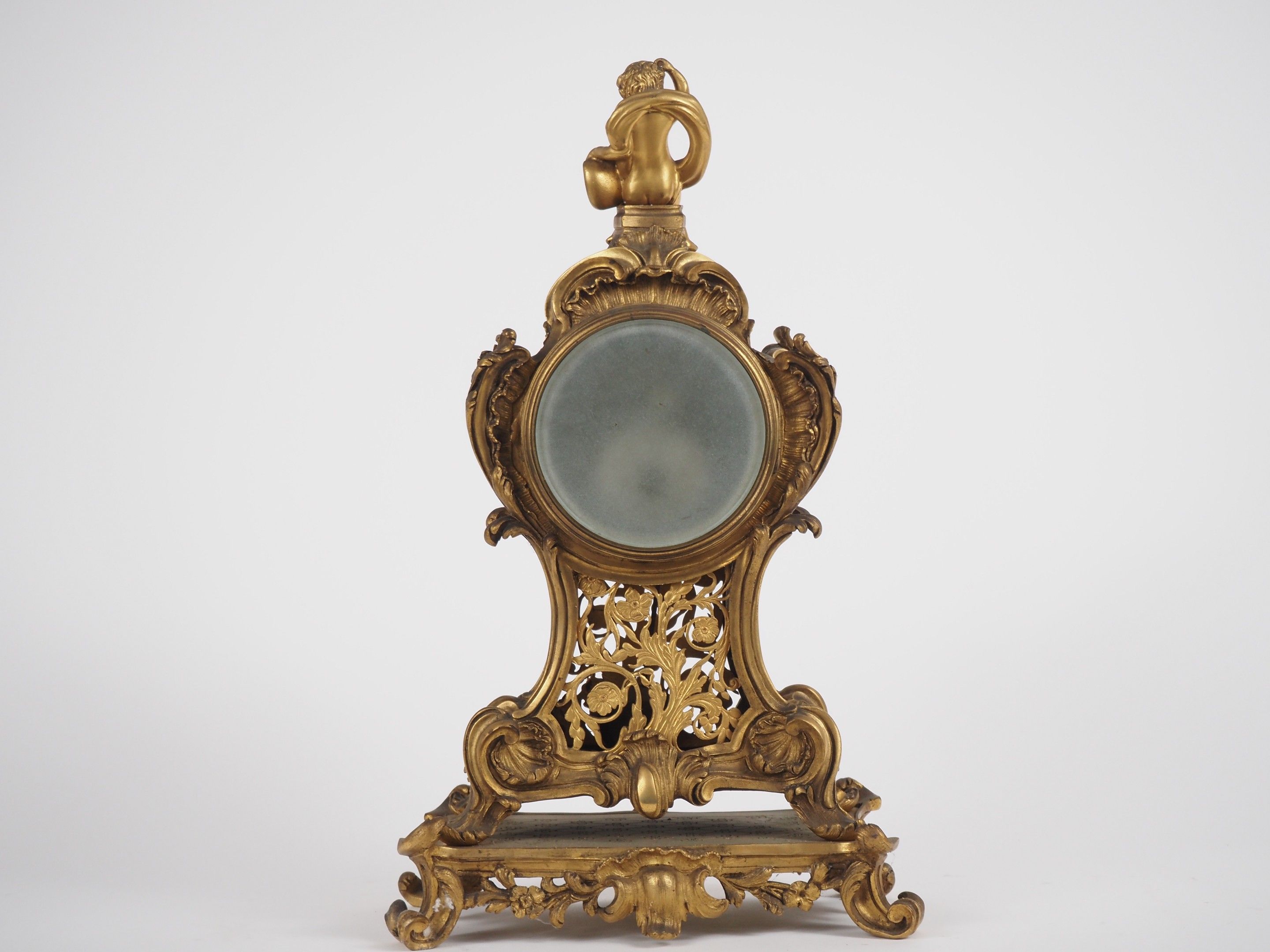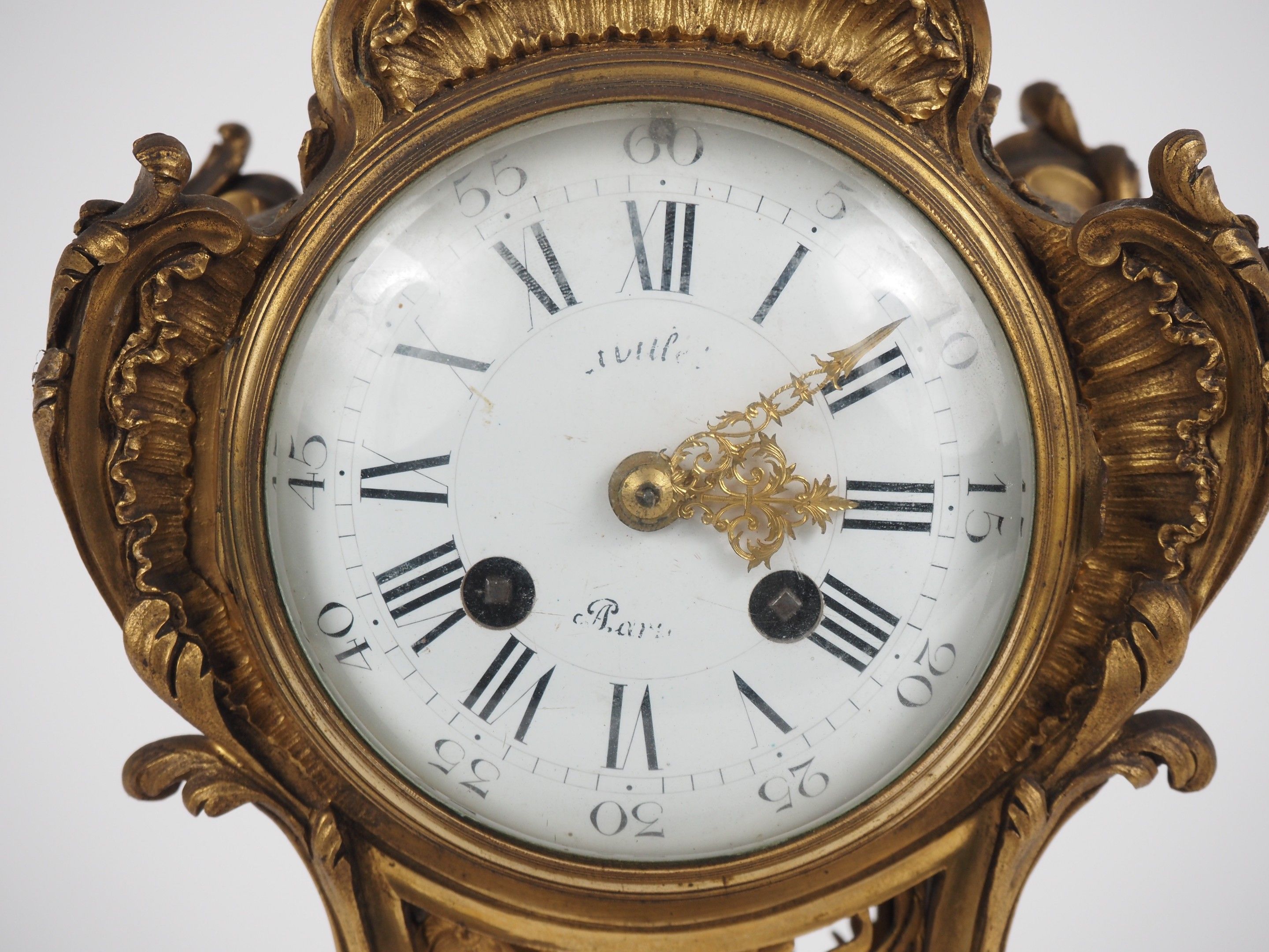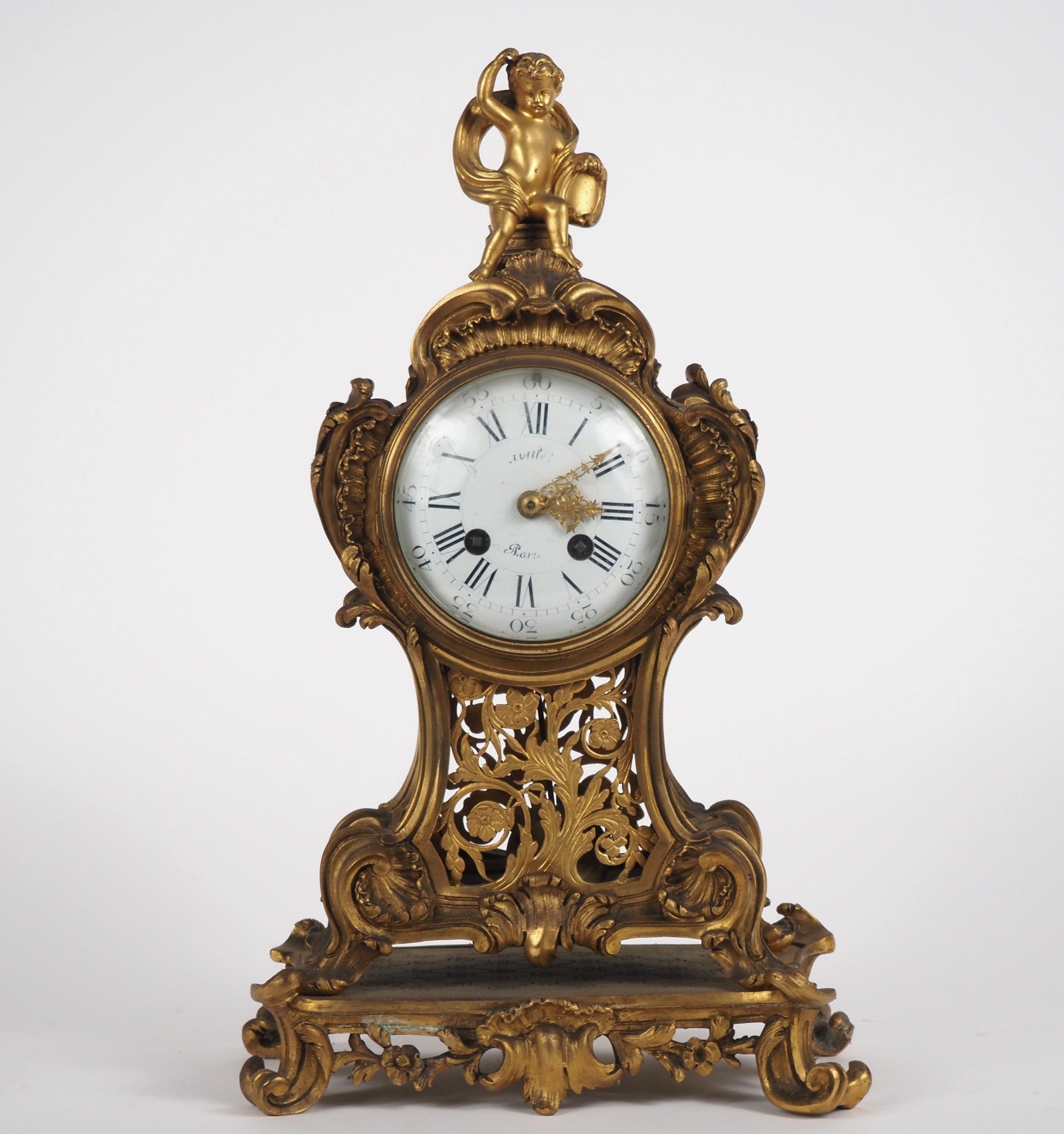 Gilt bronze Rocaille-style cartel, decorated with a love scene in a cartouche, rocaille and flowers, dial signed A. Villet ? in Paris