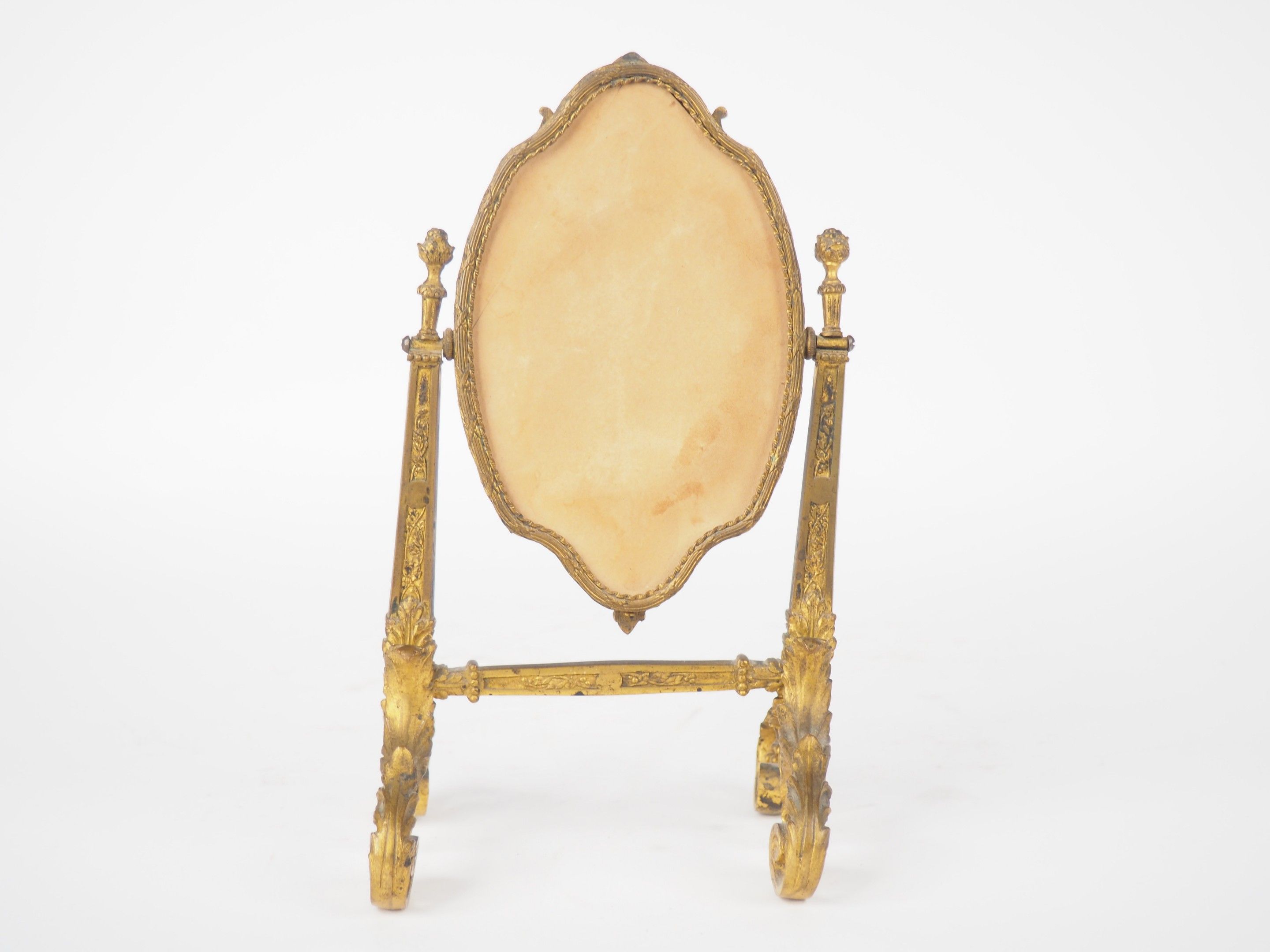Beautiful 1900 enamel depicting a "portrait of a young girl wearing a hat" in a Louis XVI style gilt bronze mounting in the shape of a psyche.