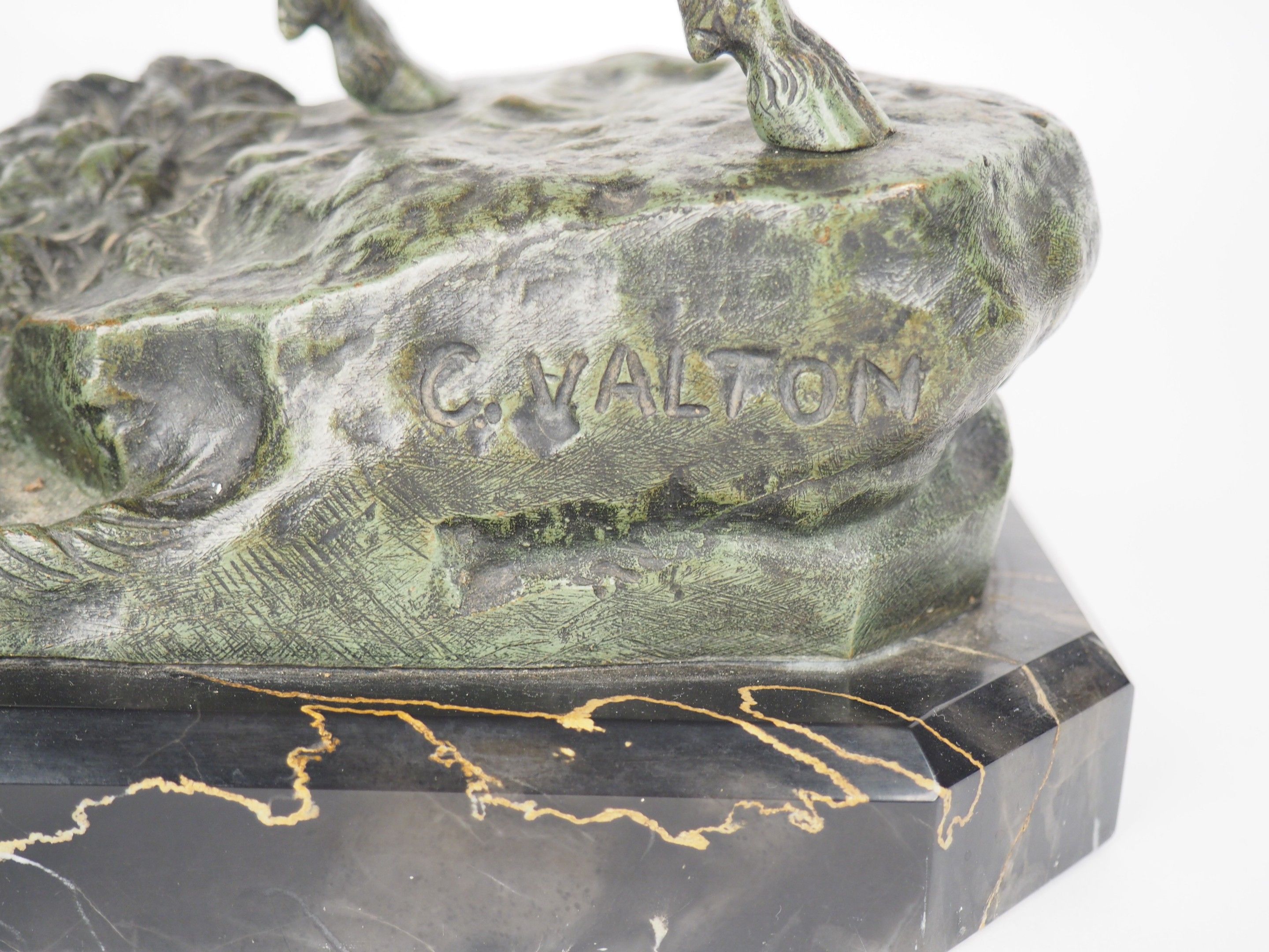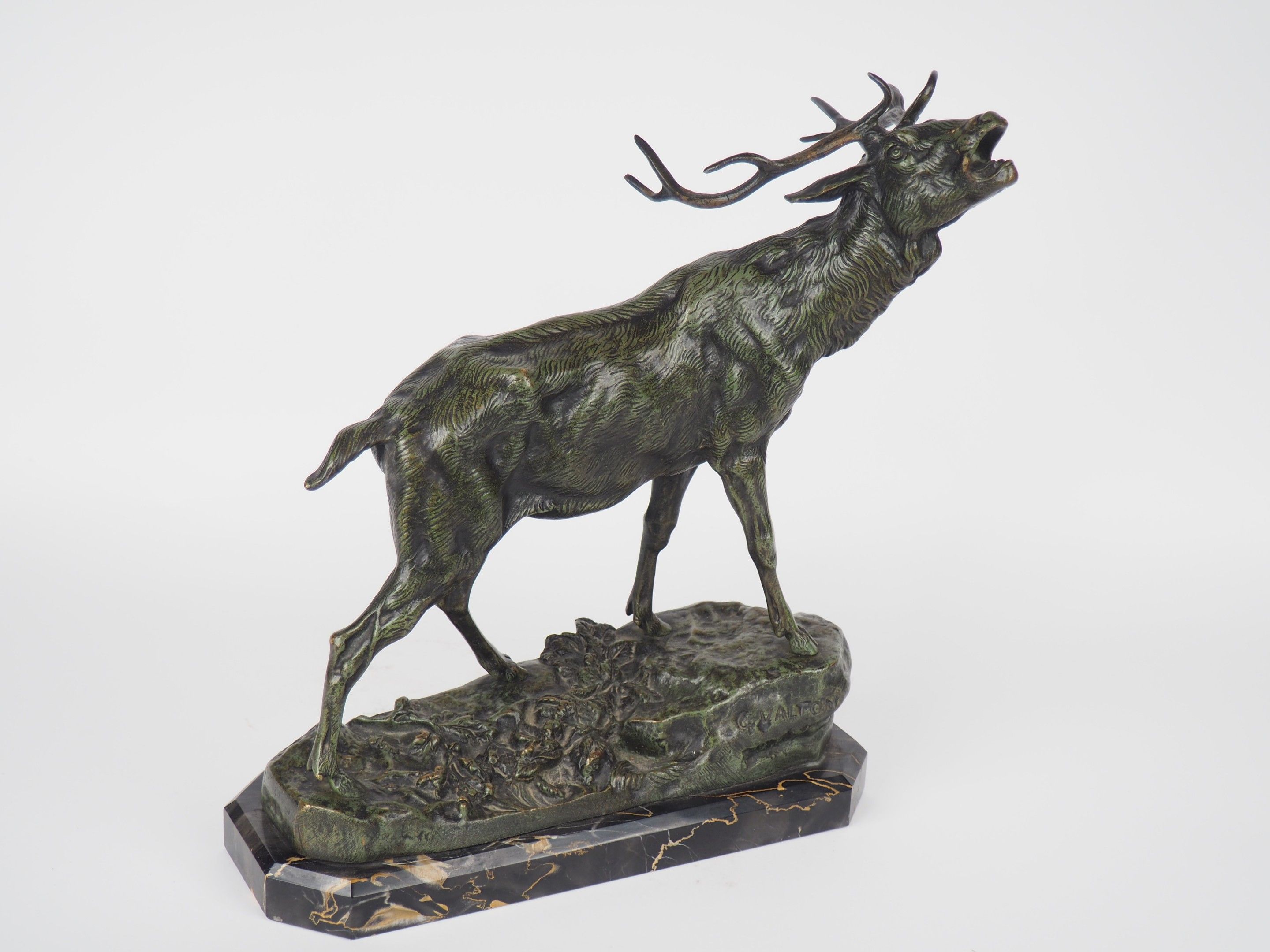 VALTON. "Stag bellowing Green patina bronze sculpture, porto…