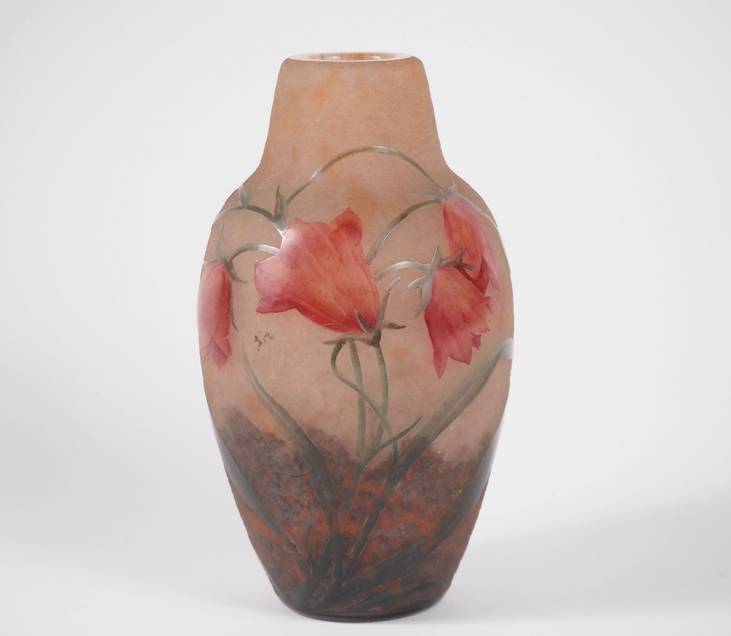 DAUM. Glass vase with enamelled flower design