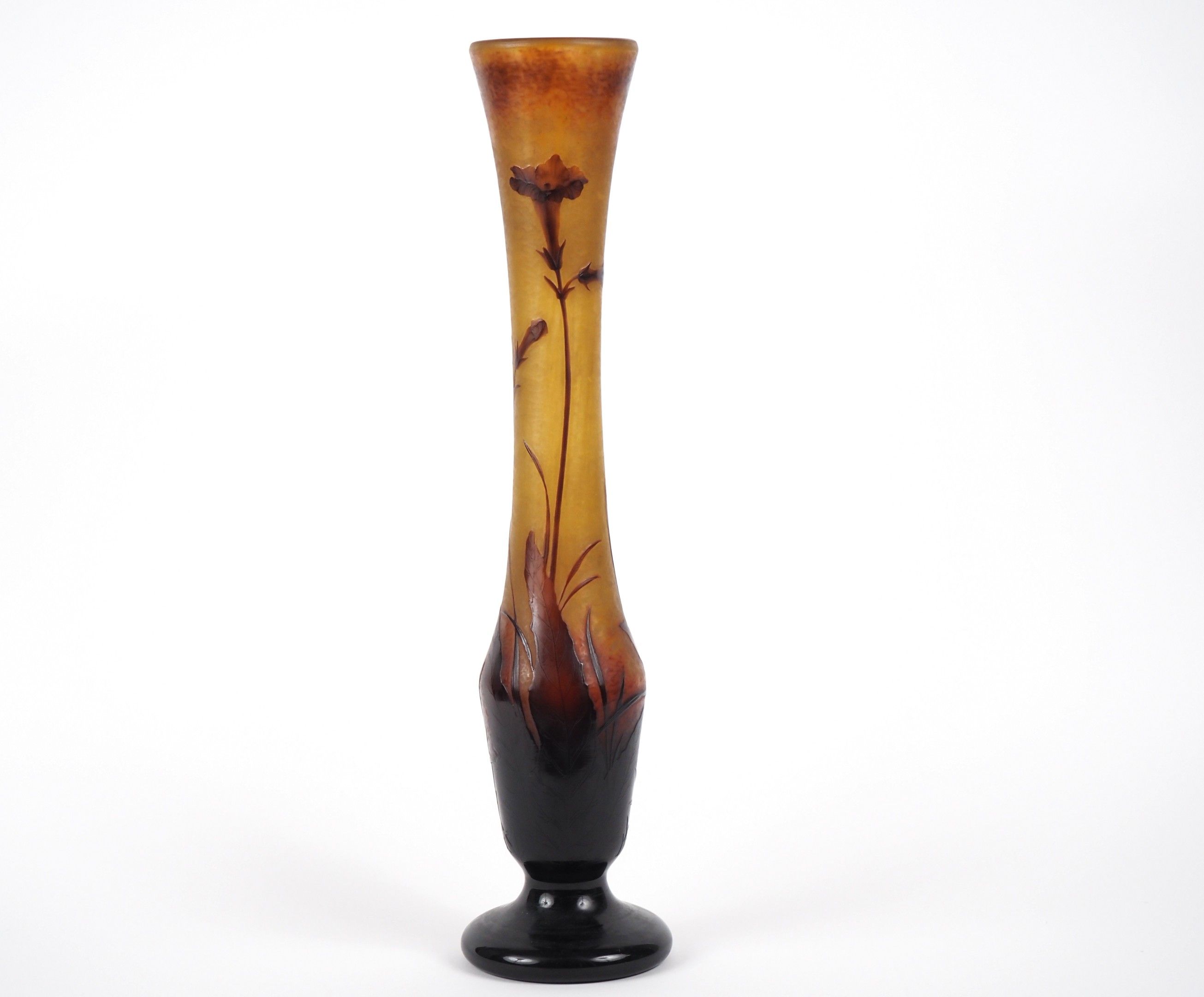 Premium DAUM. Large glass baluster vase with acid-etched cameo decor…