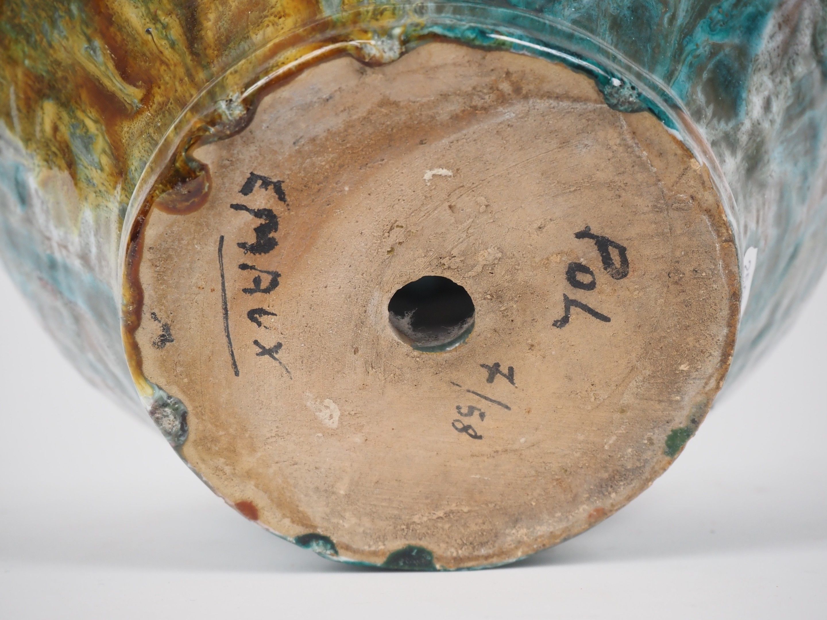 POL. Iridescent ceramic vase with shaded blue, green and gre…