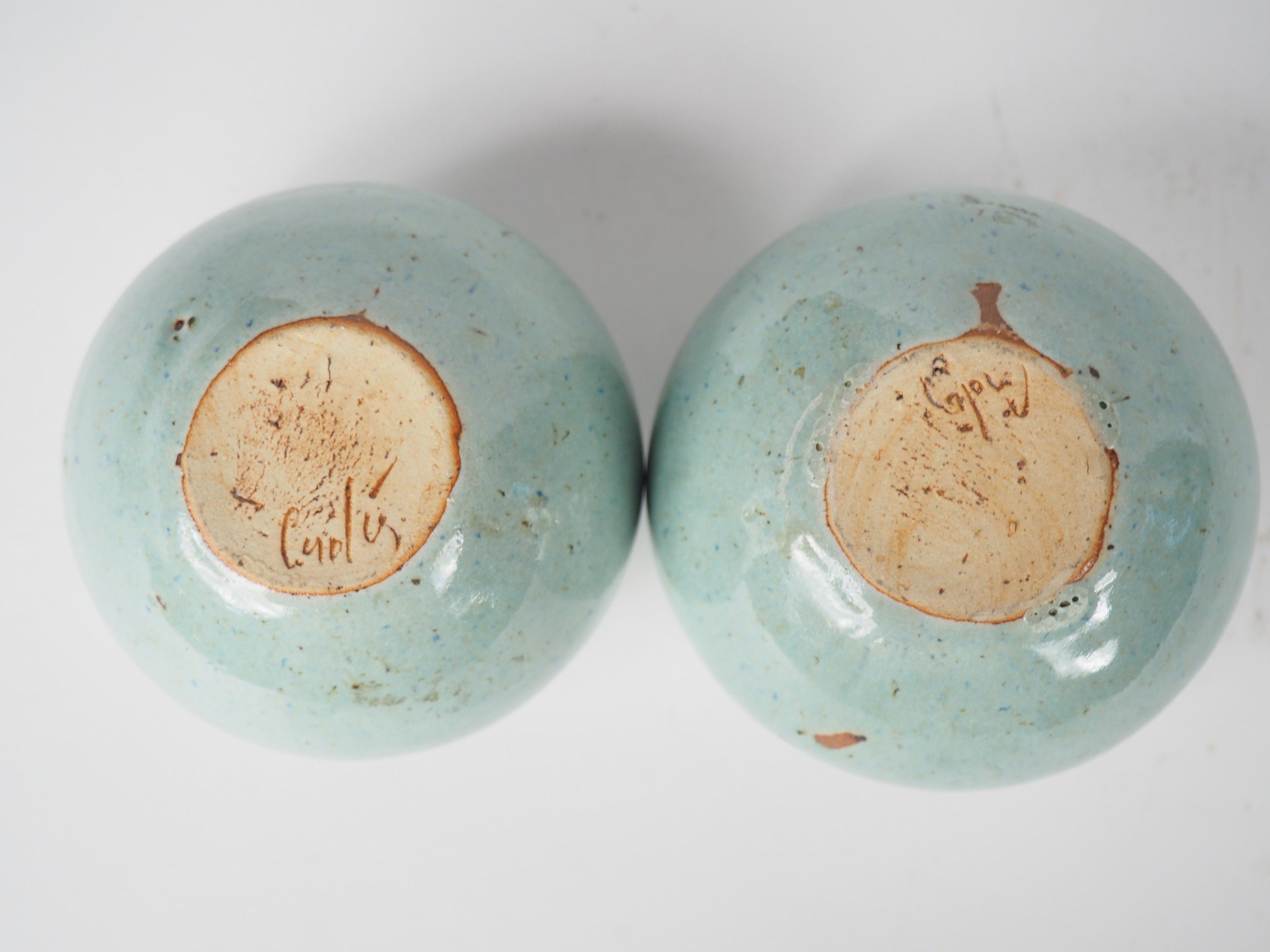 Pair of ball-shaped soliflores in sky-blue speckled stonewar…