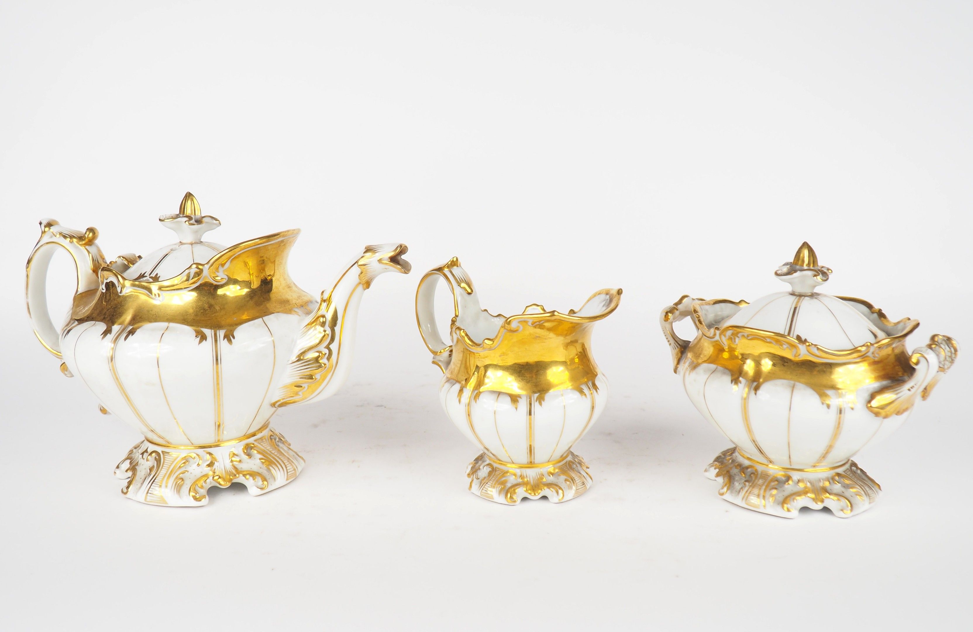 Napoleon III white and gold Paris porcelain teapot, sugar bowl and milk jug
