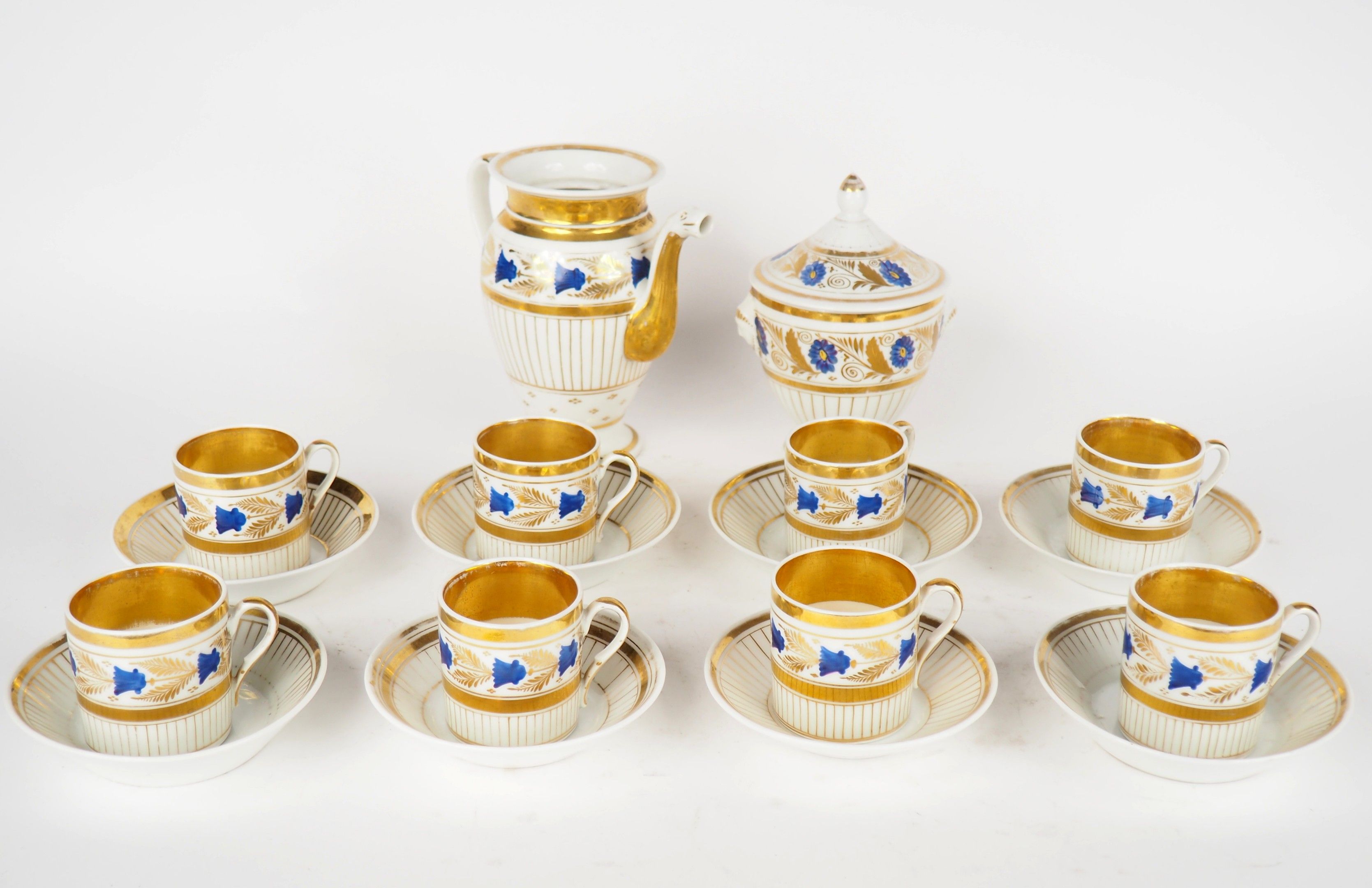 Part of a 19th century tea service in polychrome and gilded Paris porcelain with flower decoration, comprising :