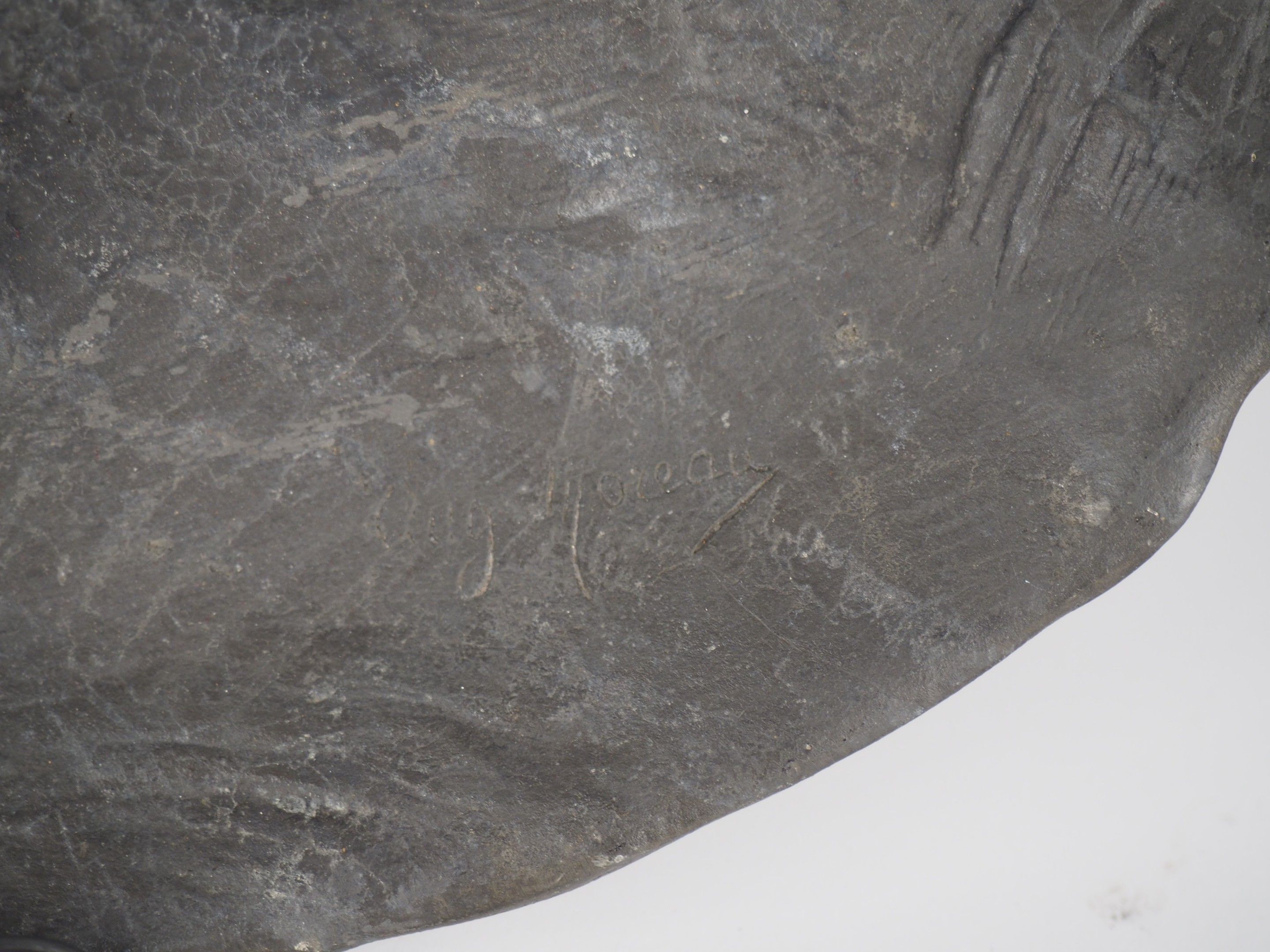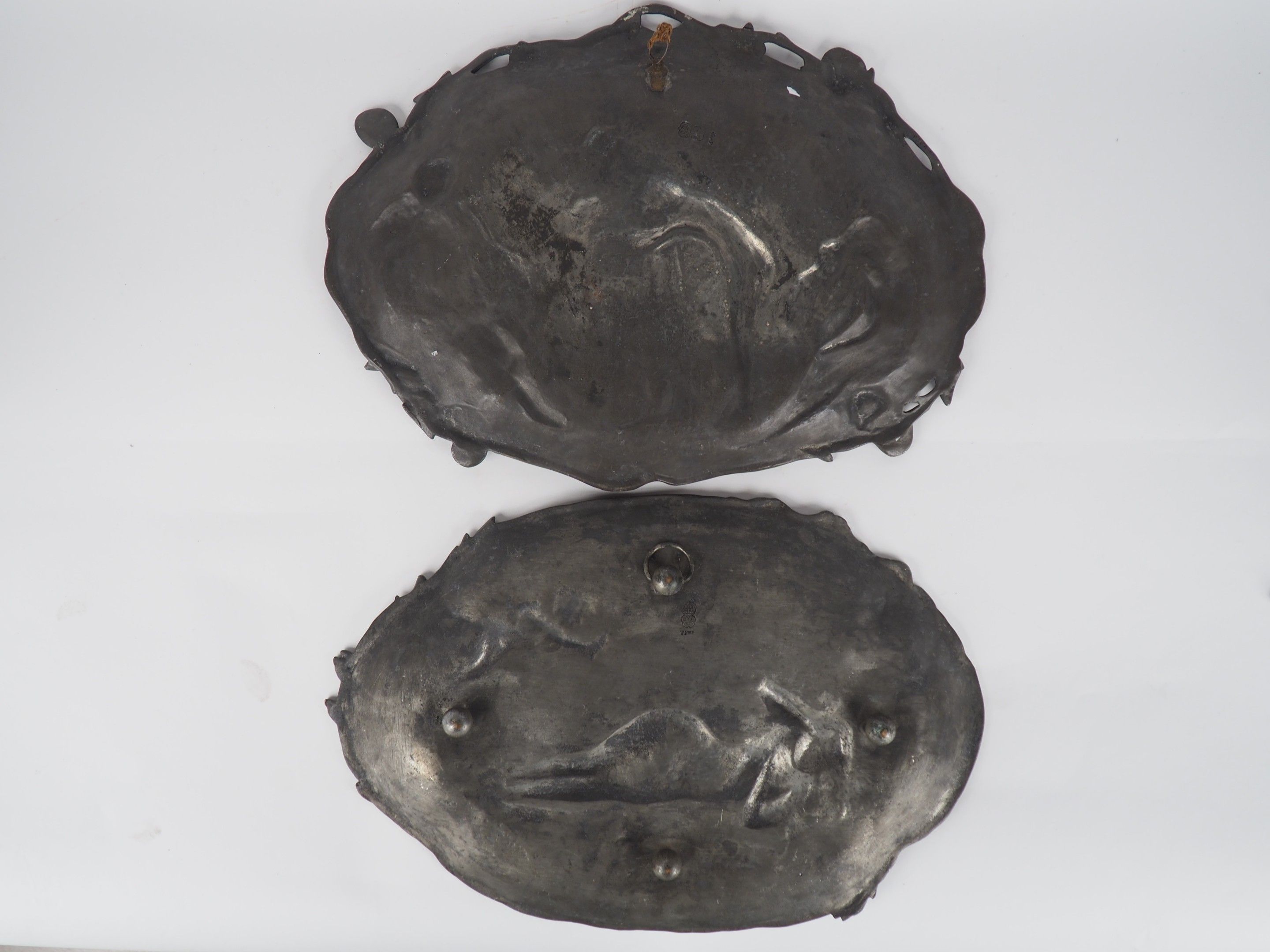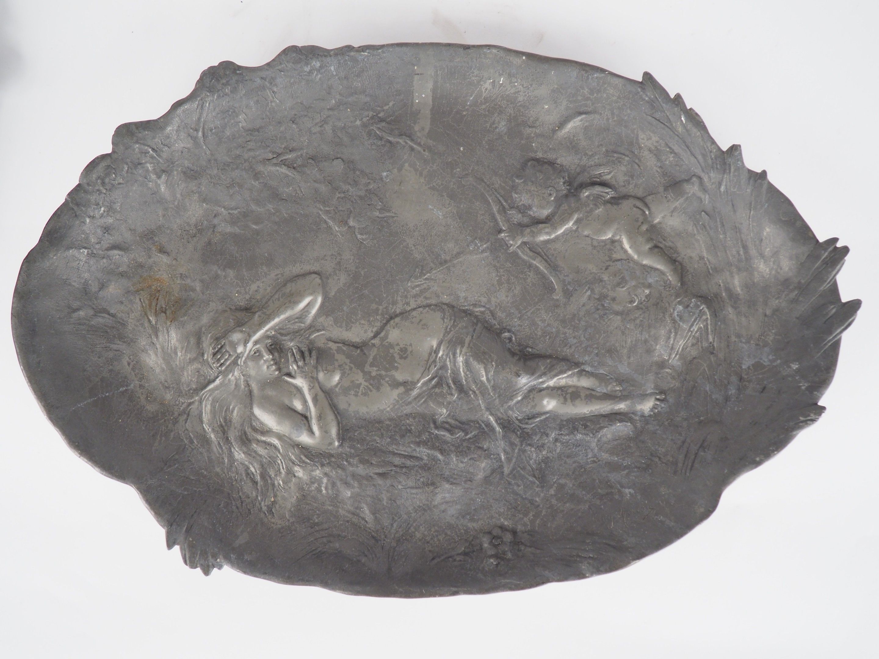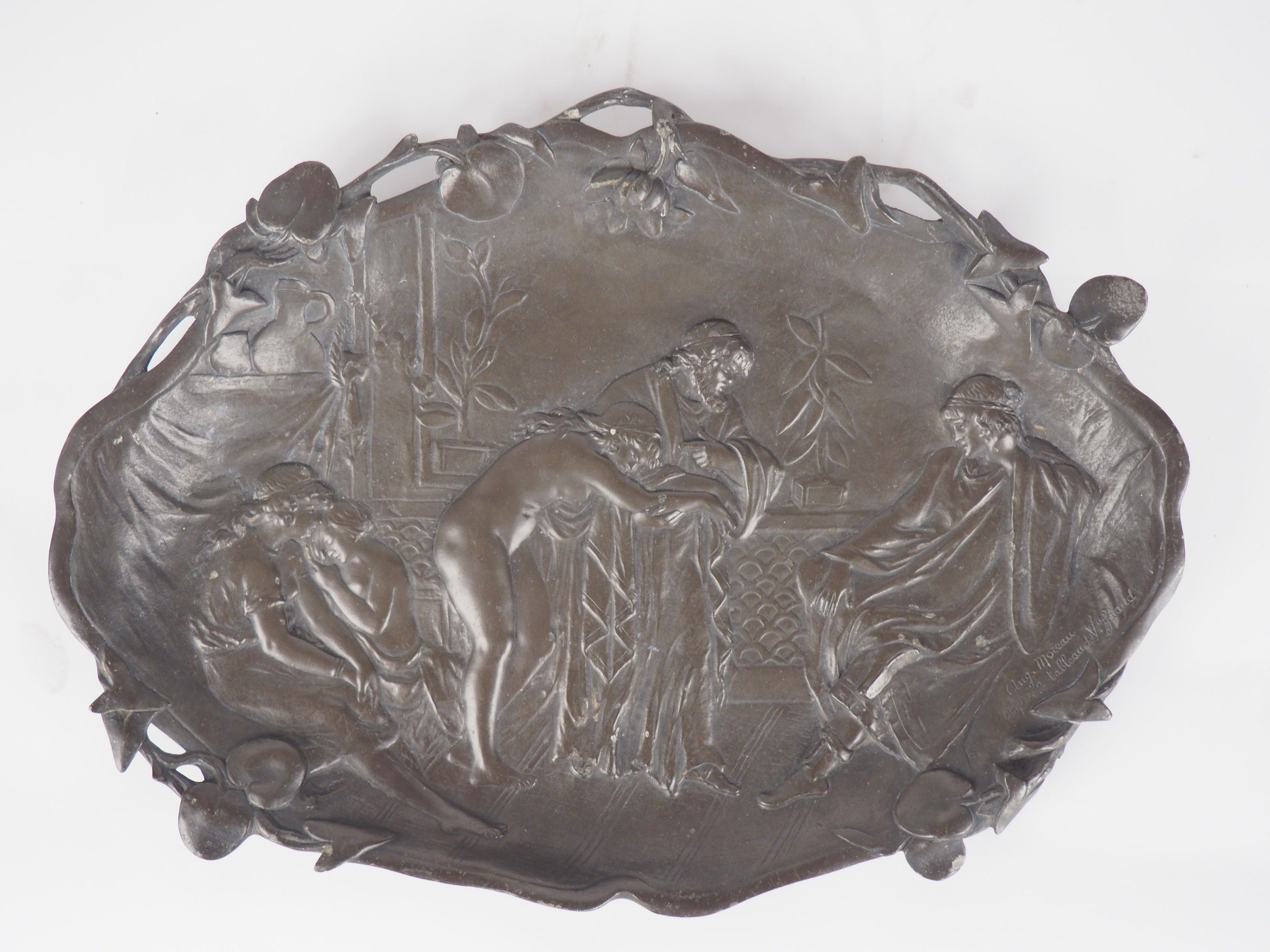 Auguste MOREAU (After). Two different pewter dishes.