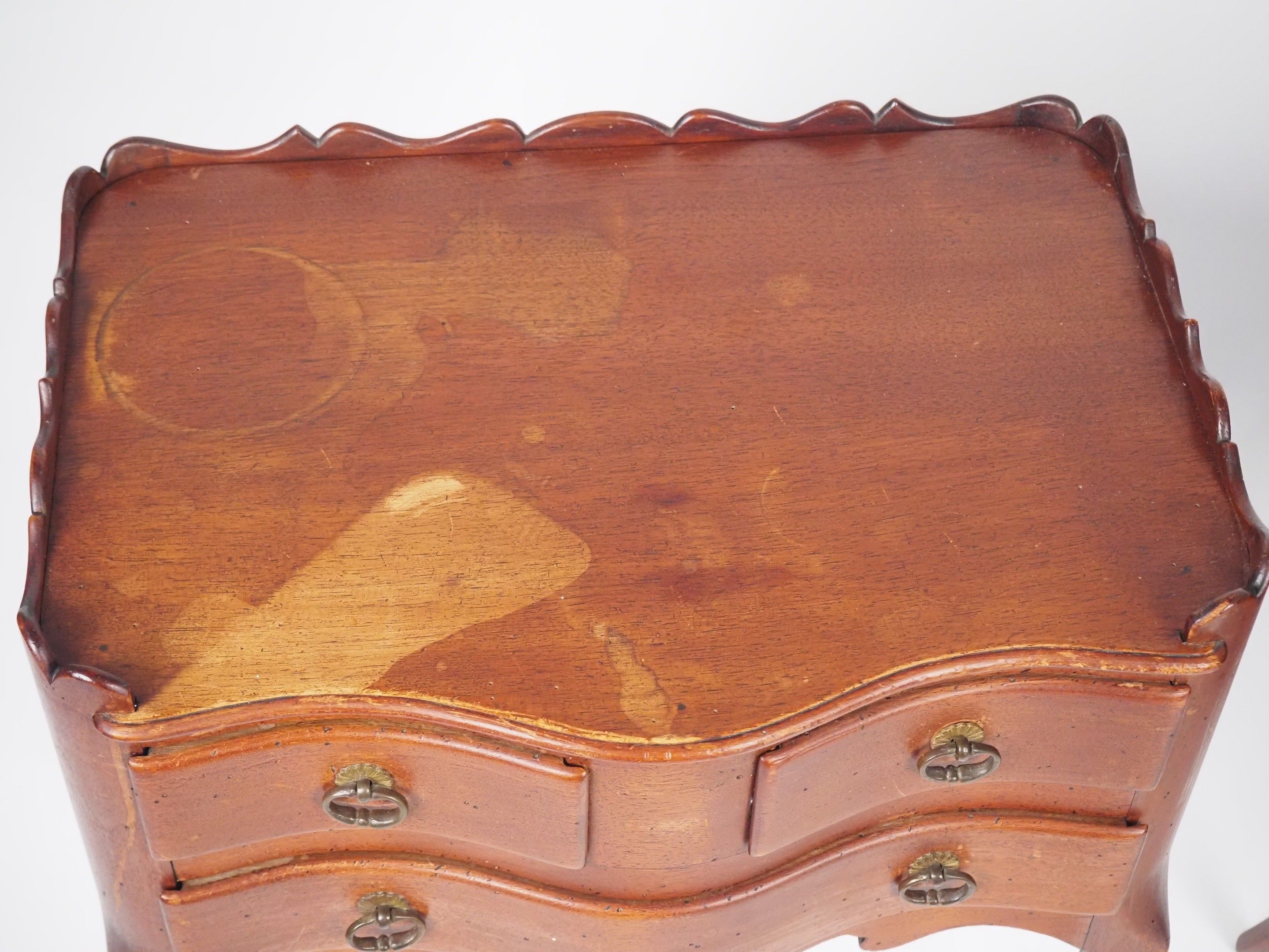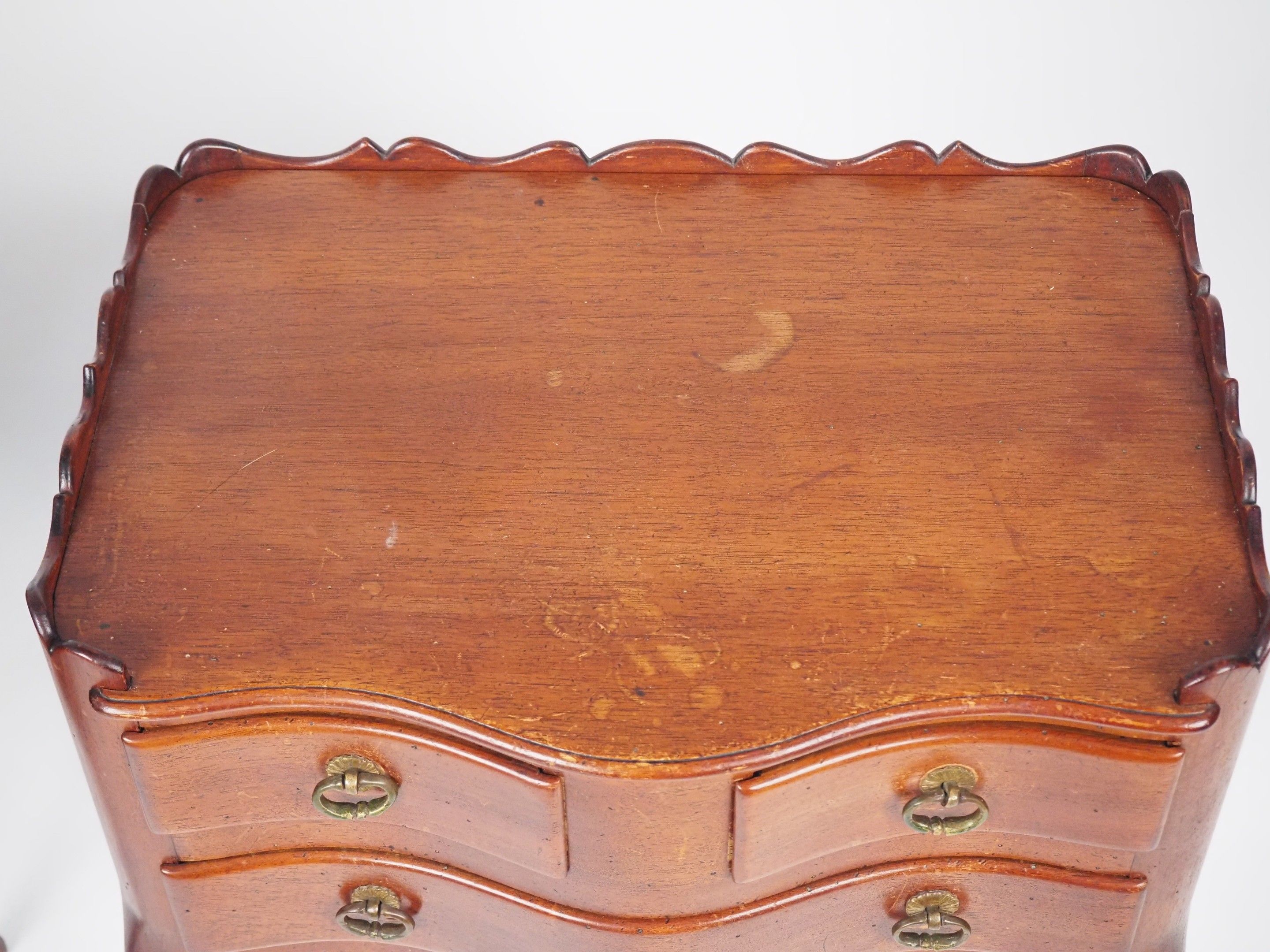 Pair of Louis XV style bedside tables in natural wood, opening to three drawers, curved legs.