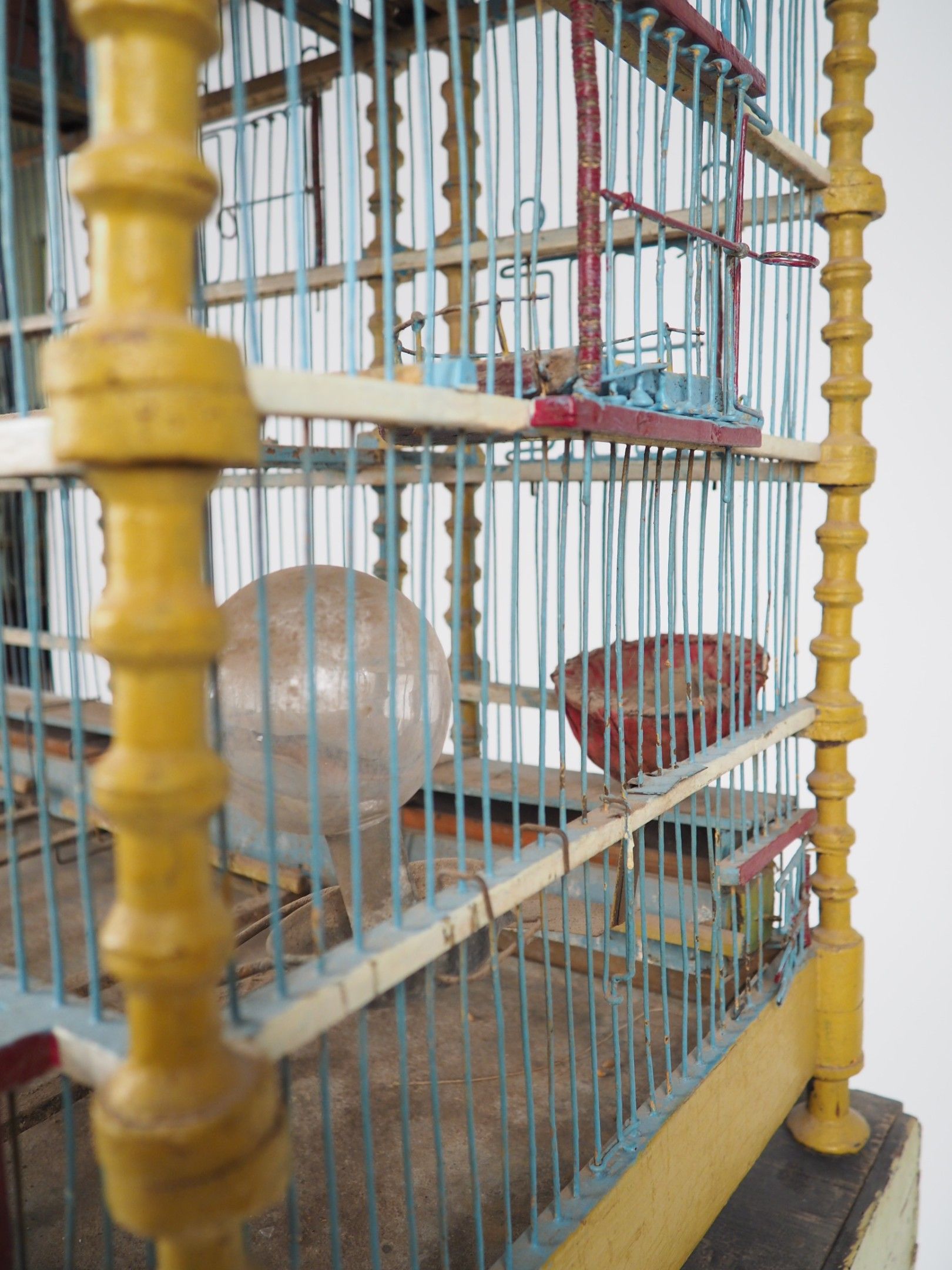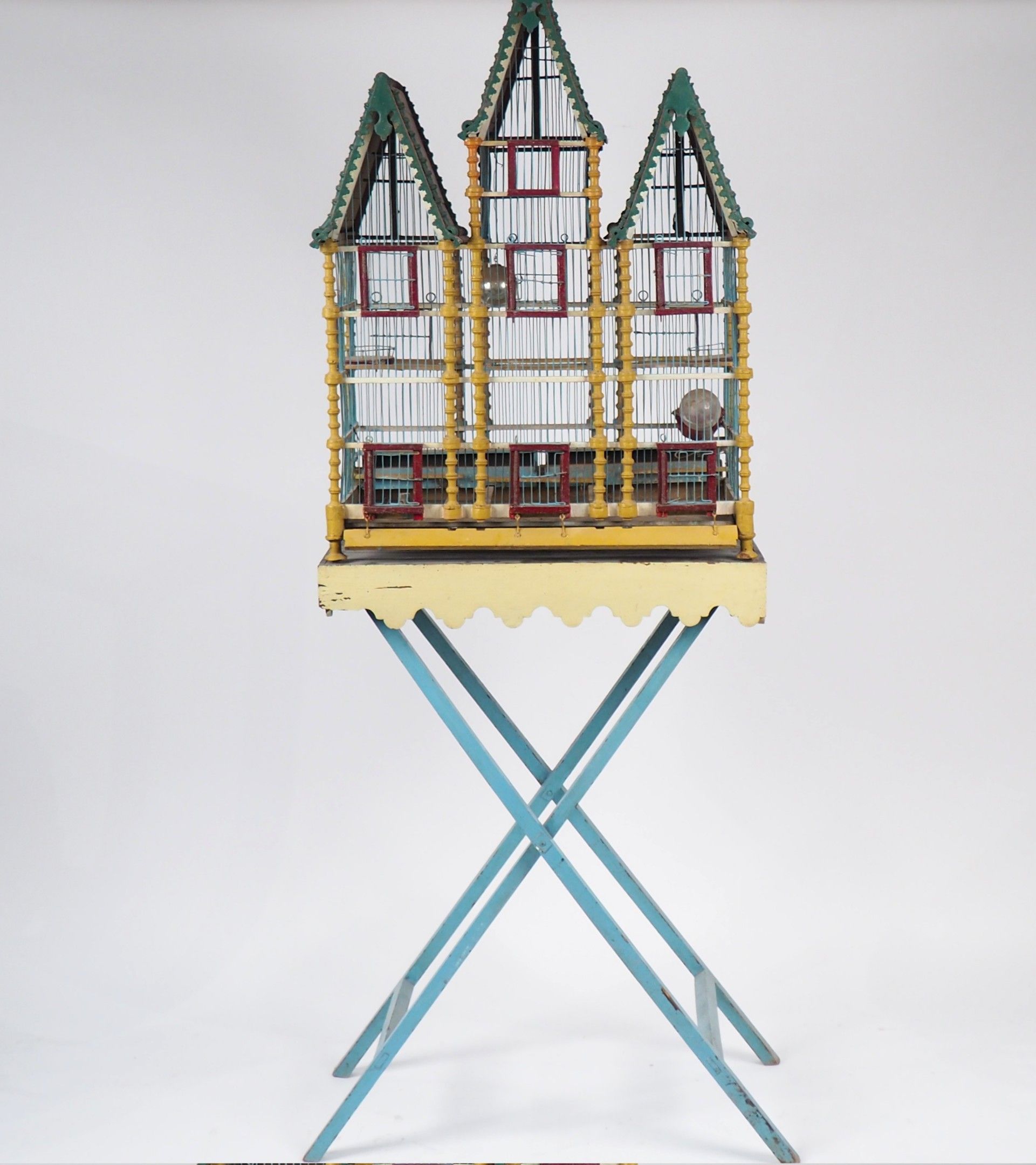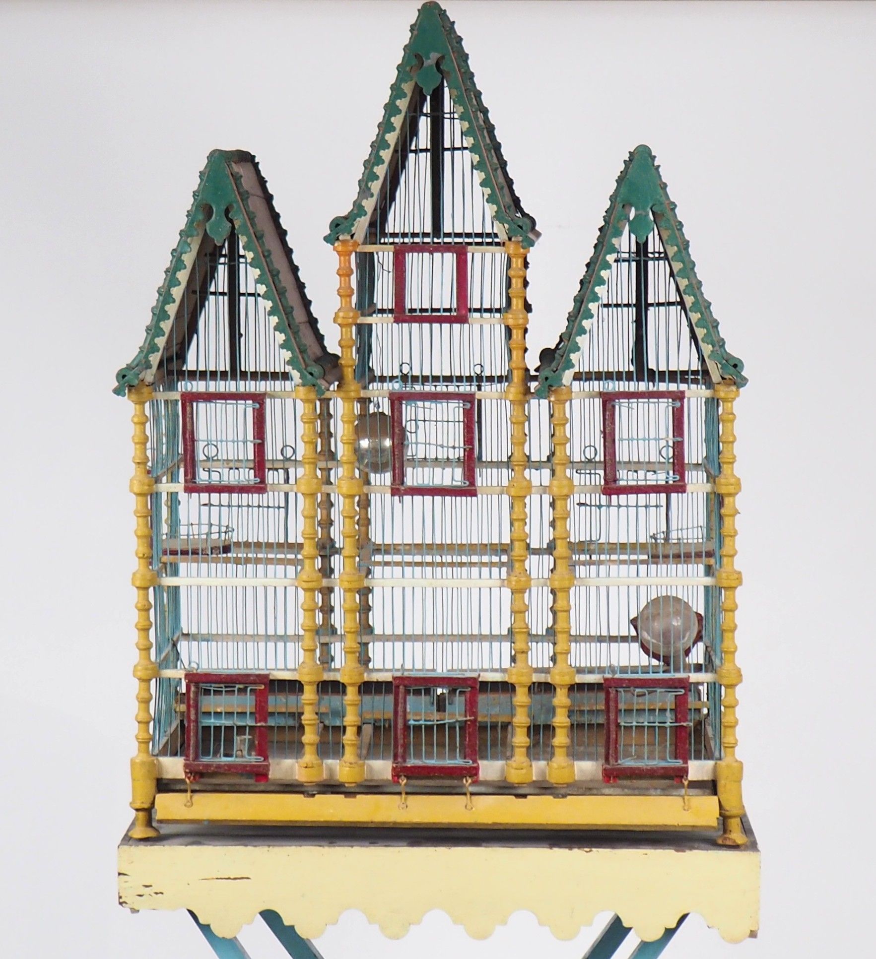 Premium 19th century wooden and polychrome iron birdcage on tripod s…