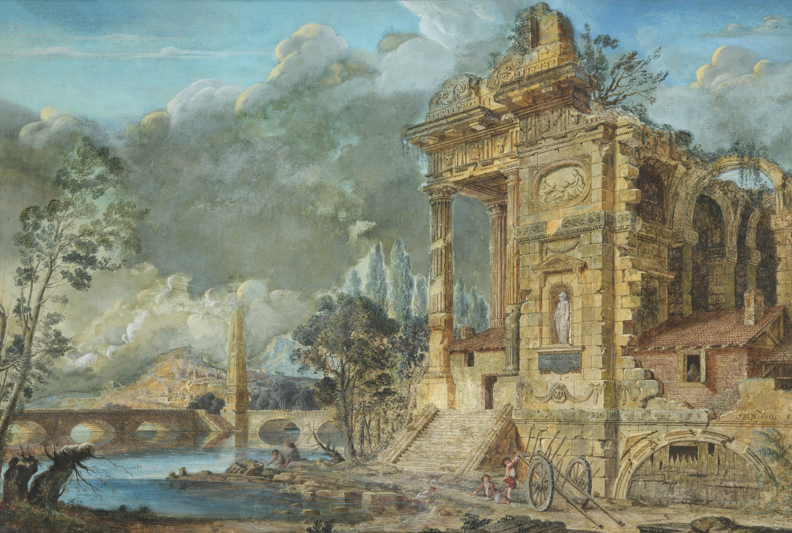 Antoine GONZALES (1741-1801) Animated ruins.