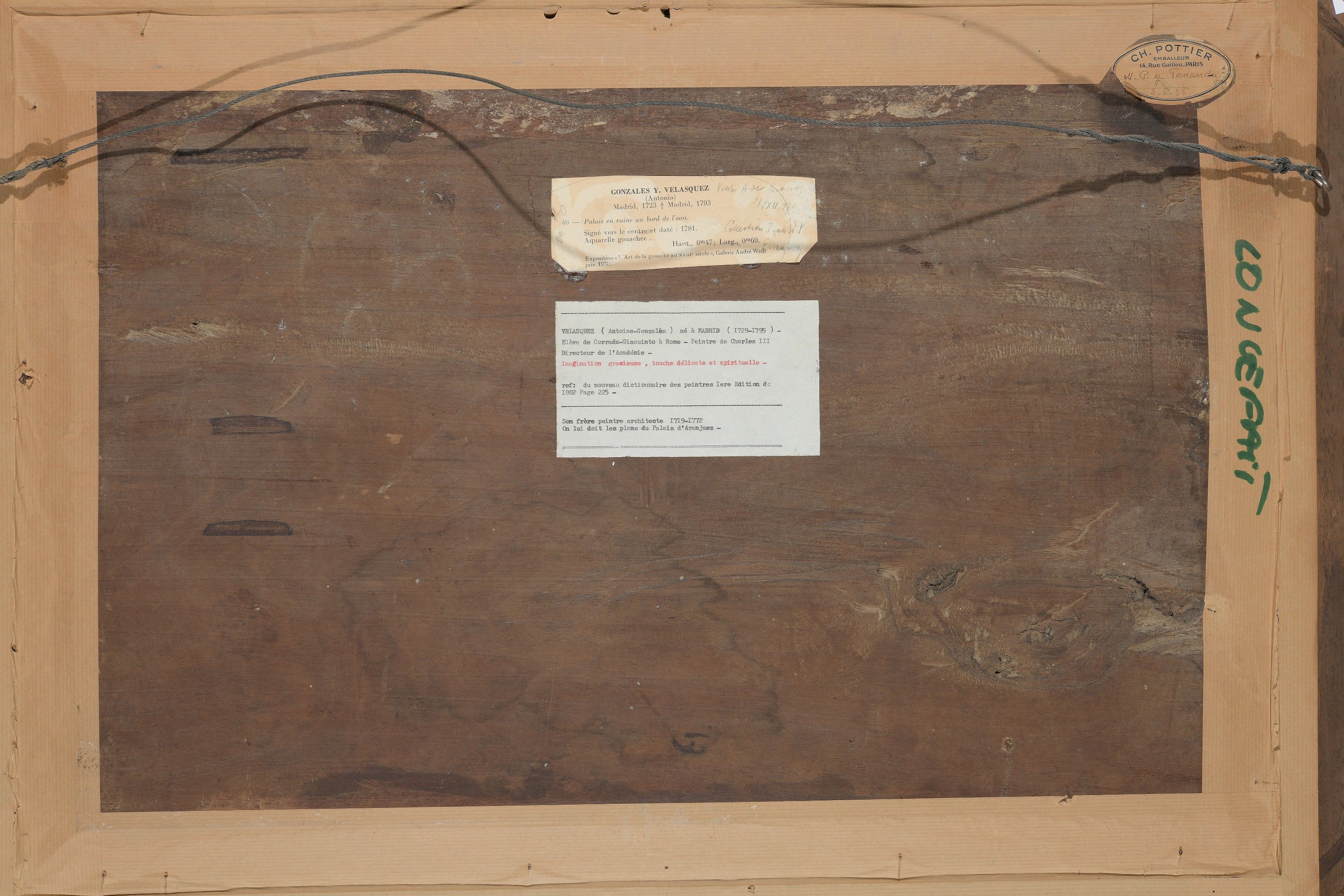 On the reverse a label from the exhibition "L'art de la gouache au XVIIIème siècle" at A. WEIL, 1936, n°46.