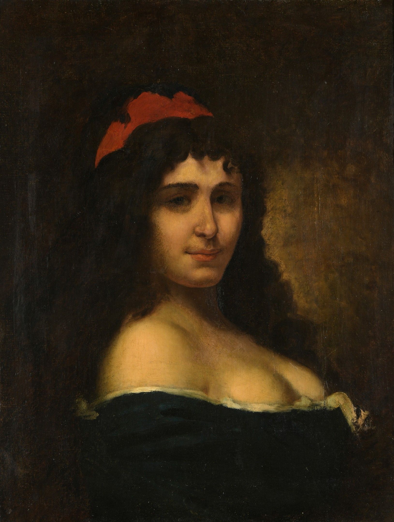 19th CENTURY FRENCH SCHOOL Young girl with red bonnet and cl…