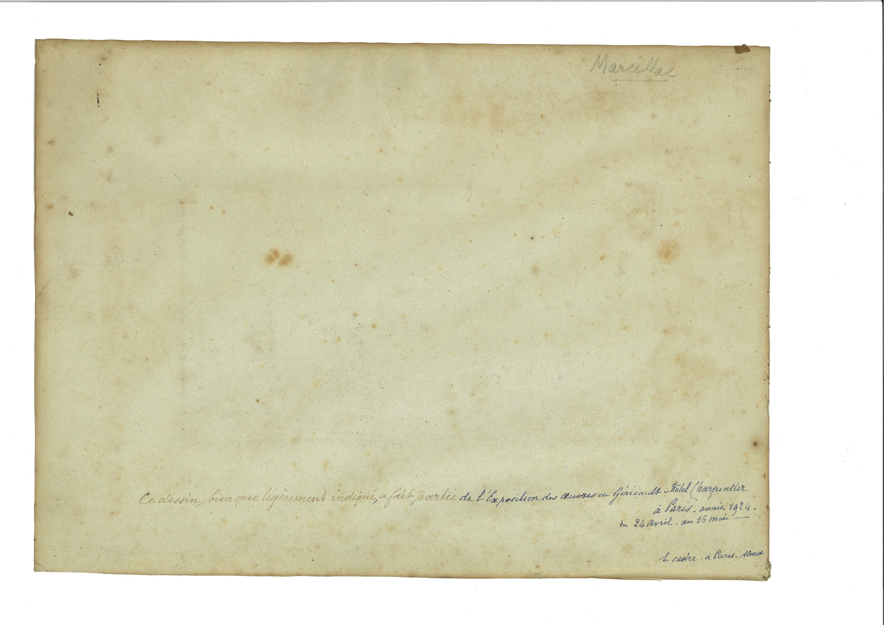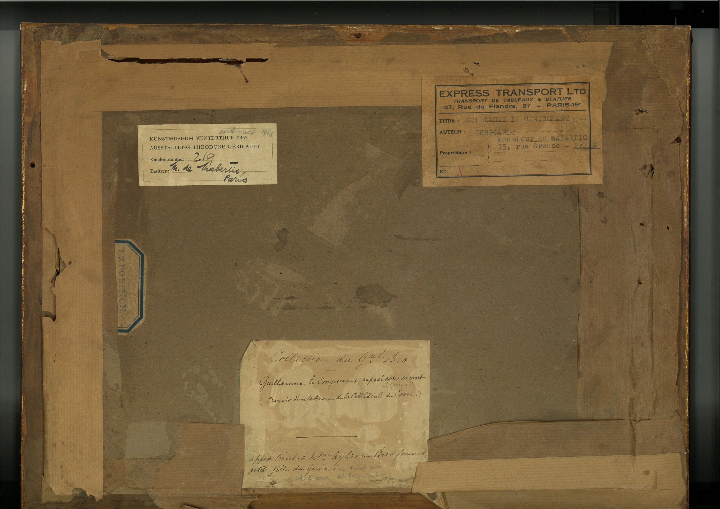 Exhibition of works by Géricault in aid of the Sauvegarde de l'art français, Paris, Hôtel Jean Charpentier, 24 April-16 May 1924, no. 286. Théodore Géricault, Winterhur (Switzerland), Kunstmuseum, 30 August- 8 November 1953 n°219