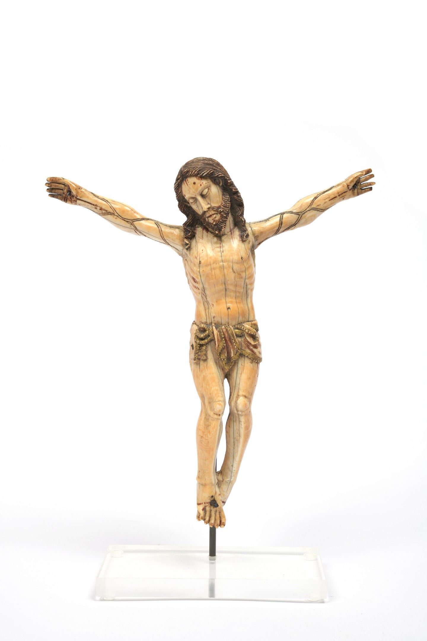 CHRIST IN CARVED IVORY With polychrome and gilding highlight…