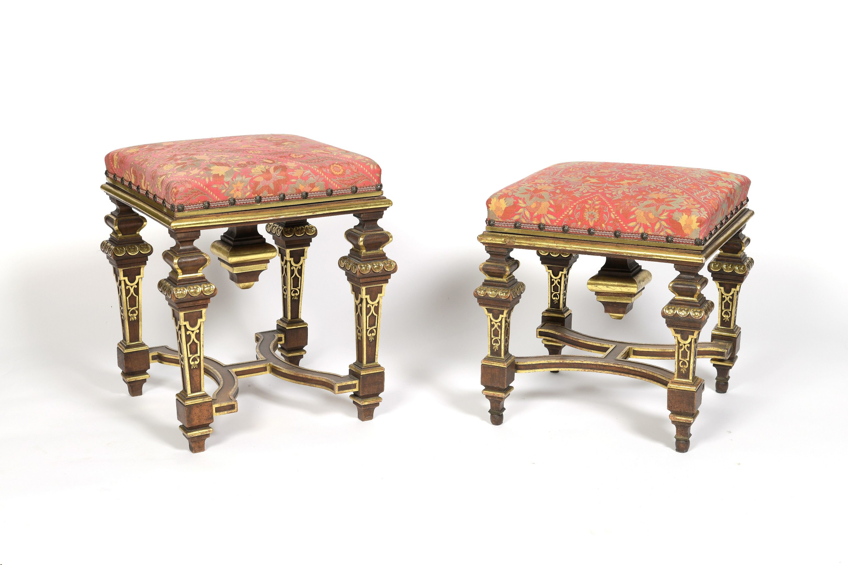 Premium PAIR OF CARVED AND GILDED WOODEN STOOLS