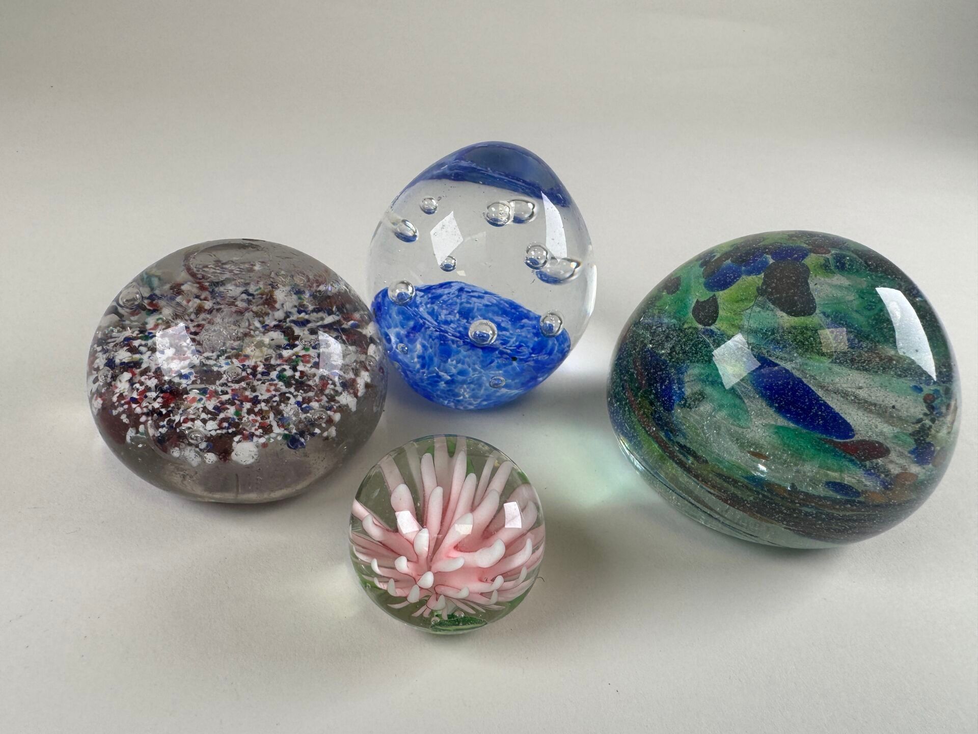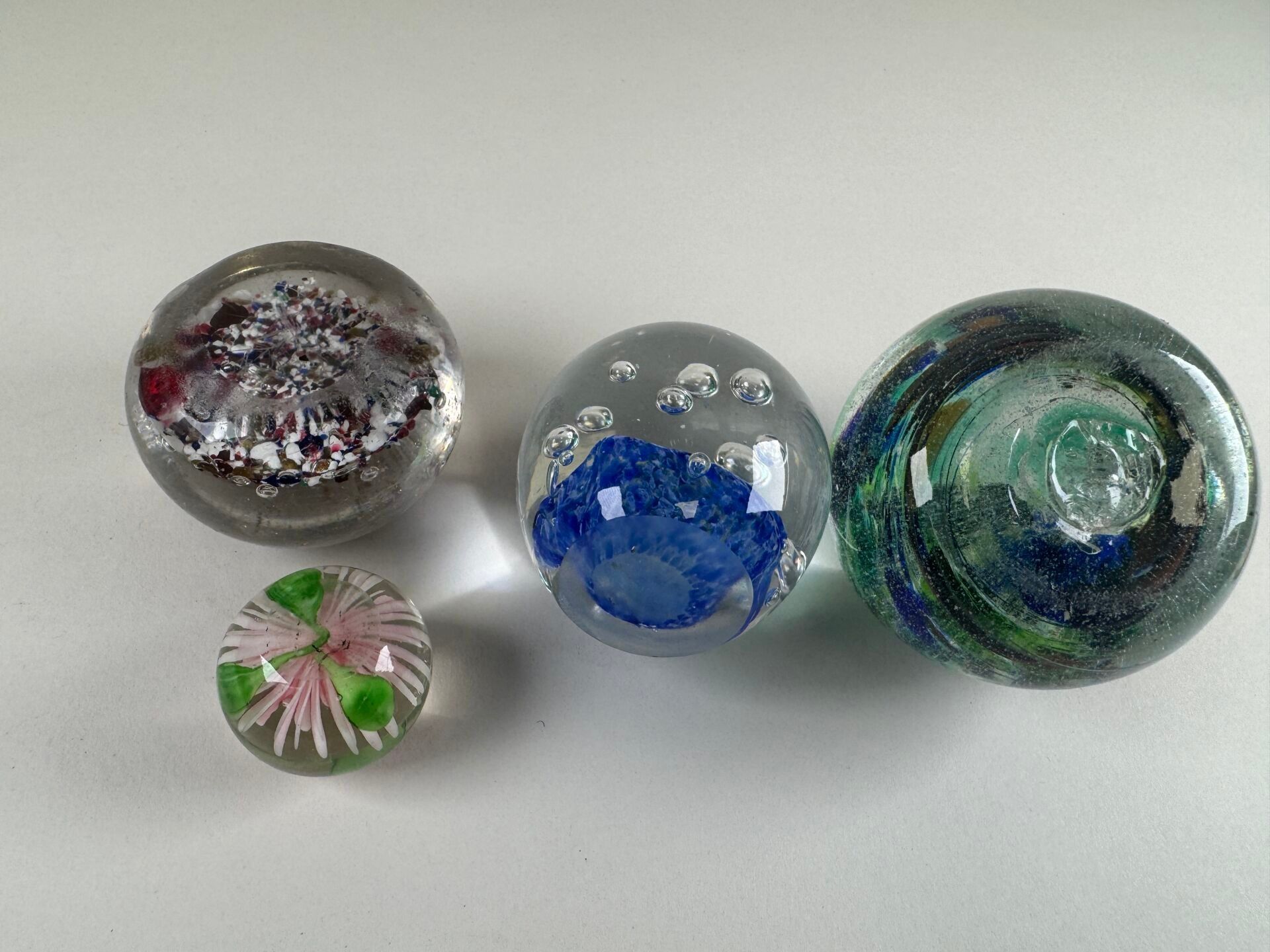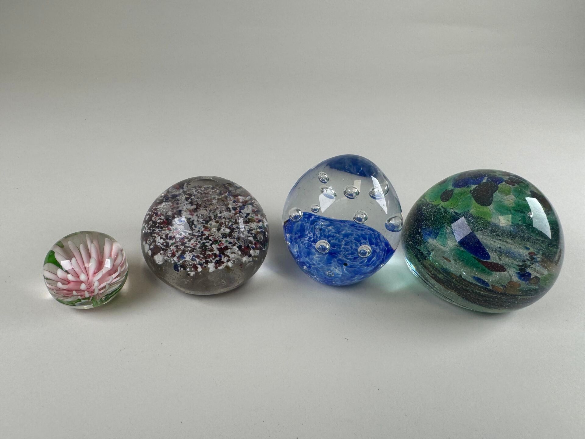 Four coloured glass paperweight sulphur balls decorated with…