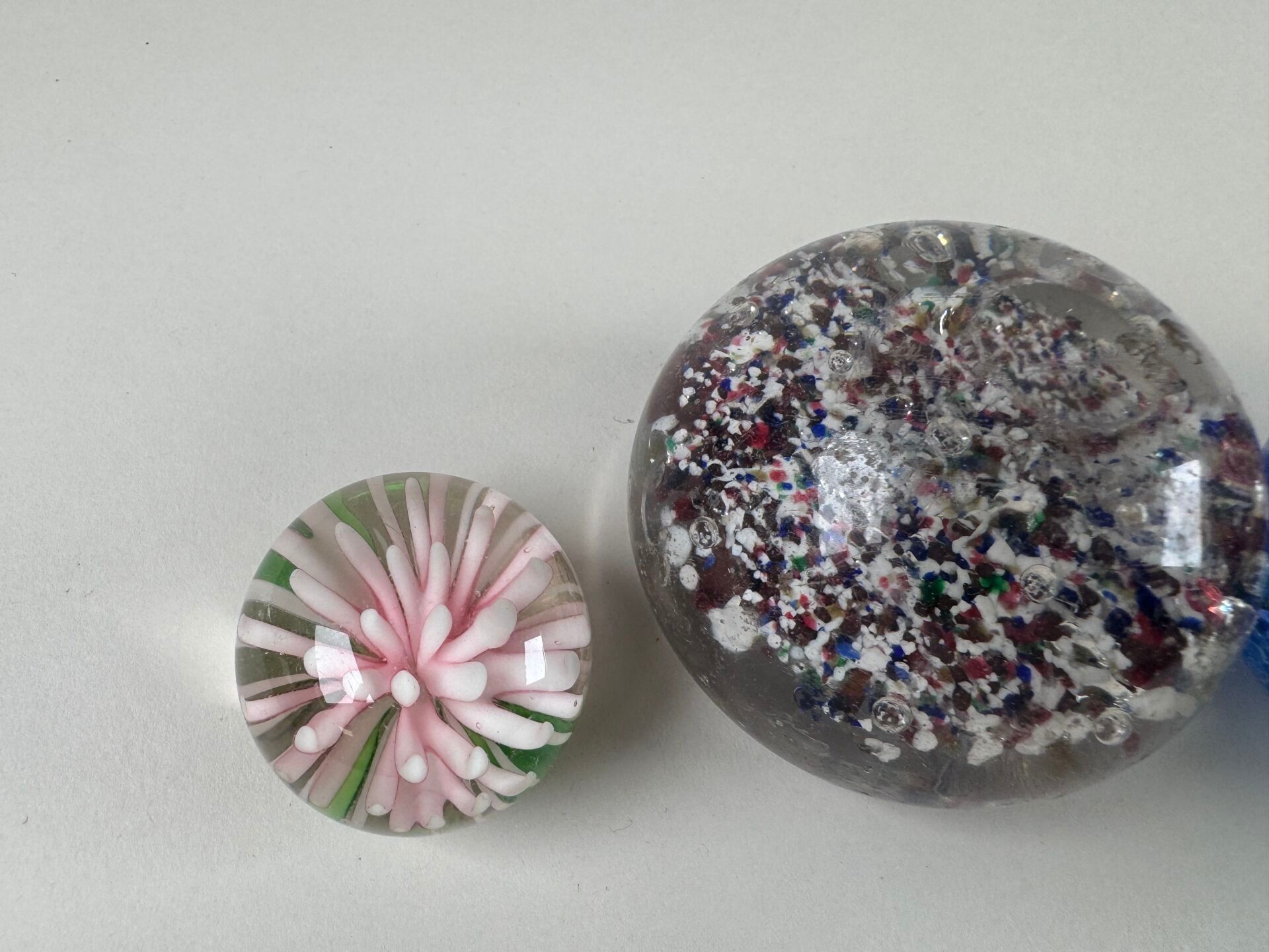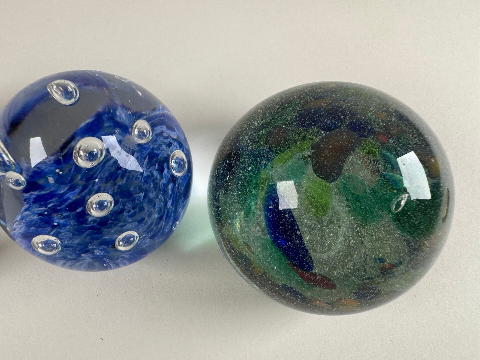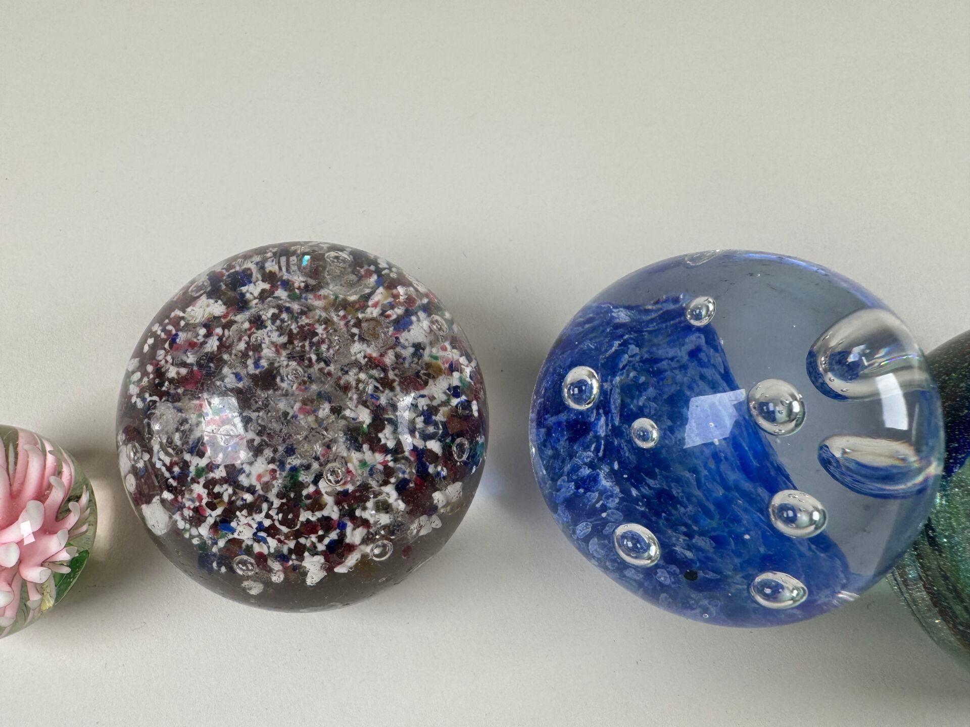 Four coloured glass paperweight sulphur balls decorated with…
