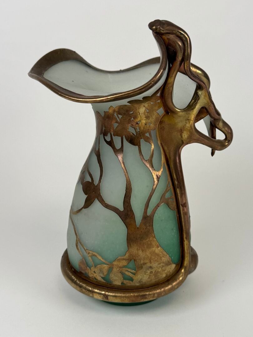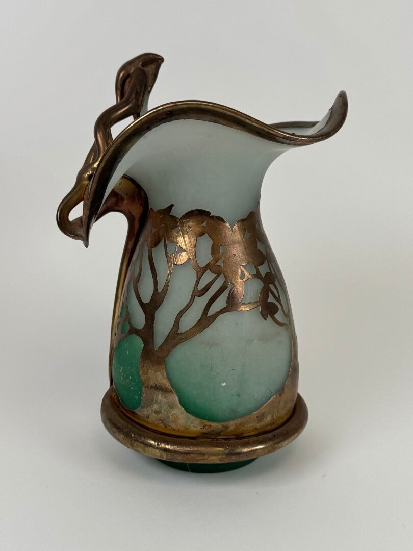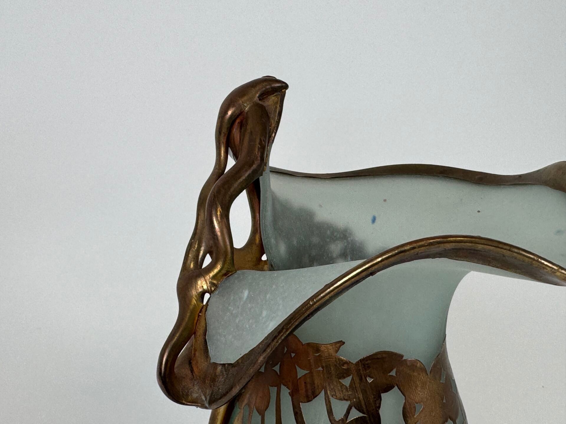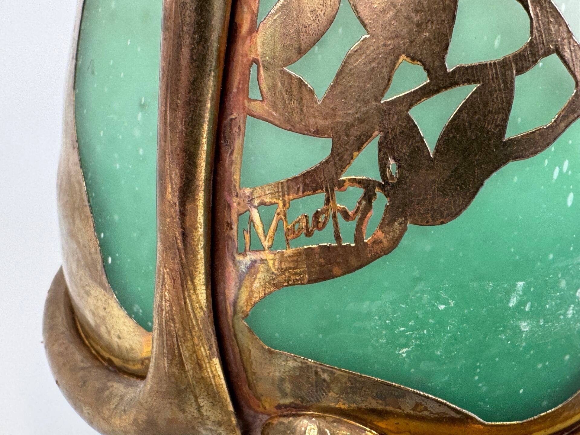 MADY, 20th century. Vase in marbled glass and brass leaf wit…