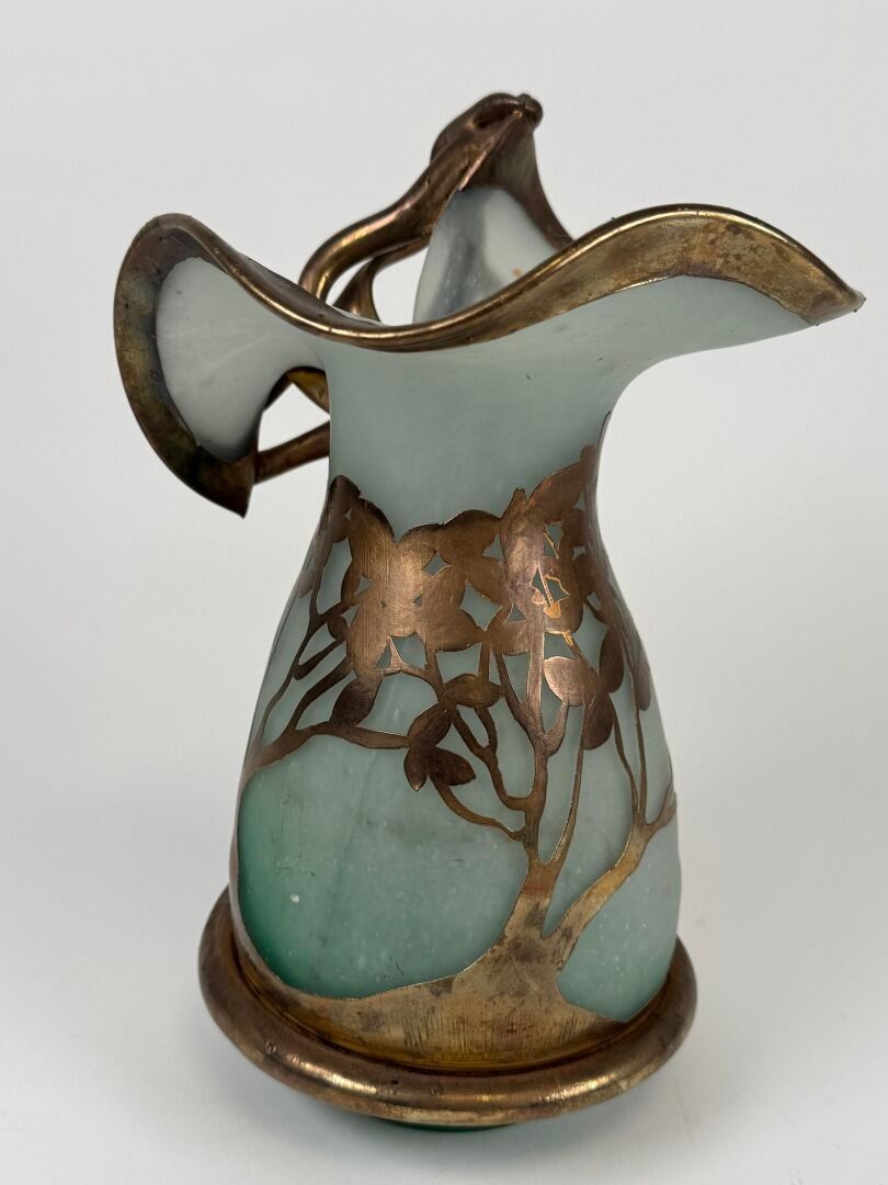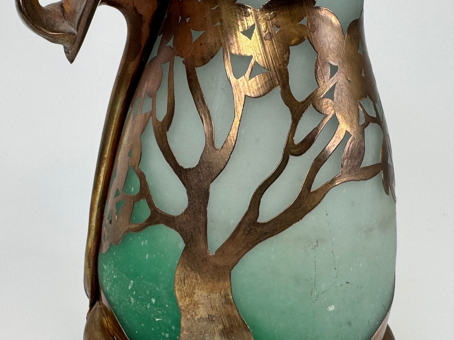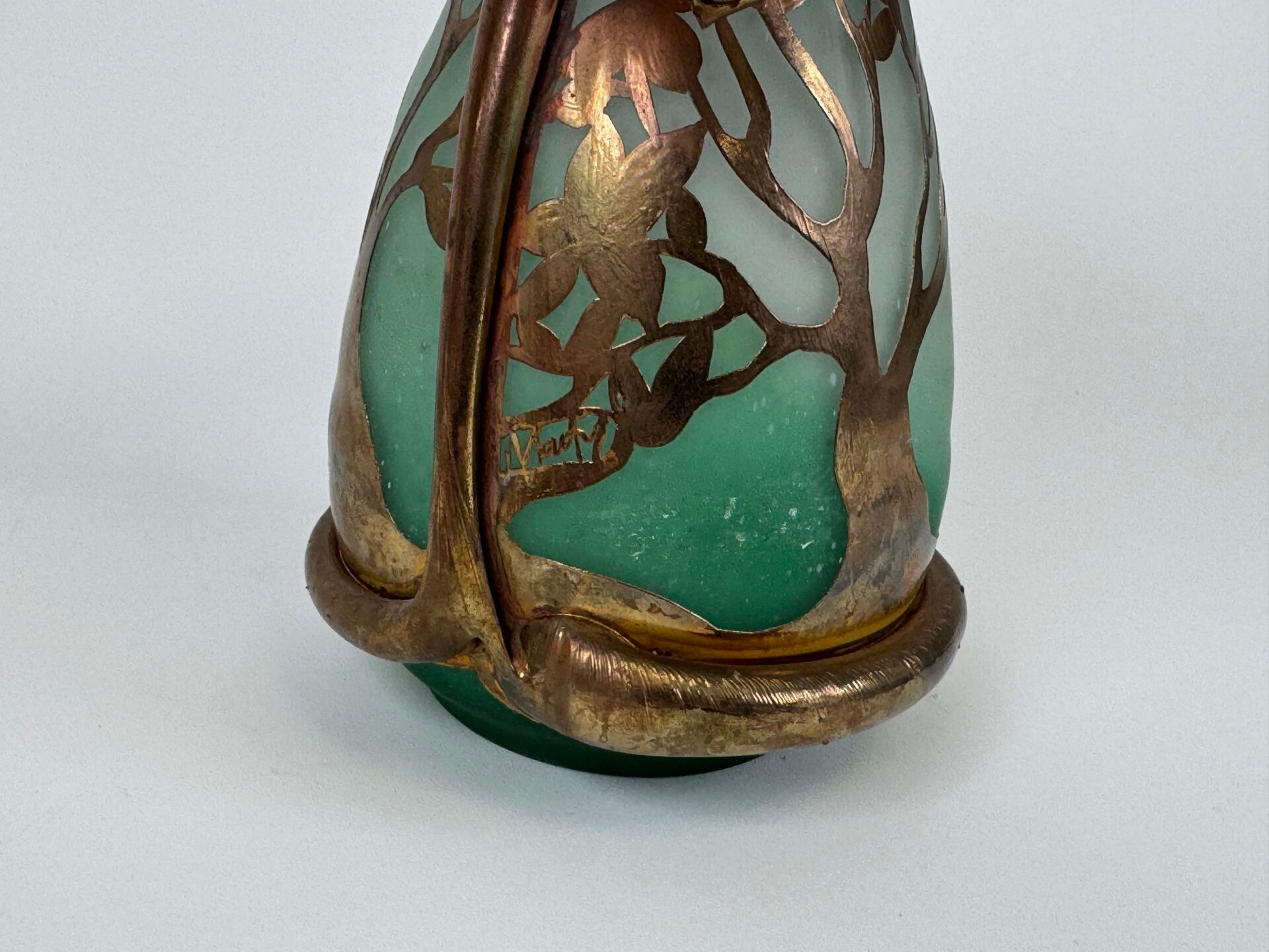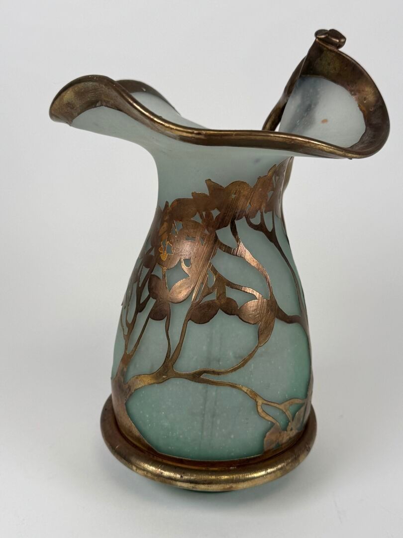 MADY, 20th century. Vase in marbled glass and brass leaf wit…