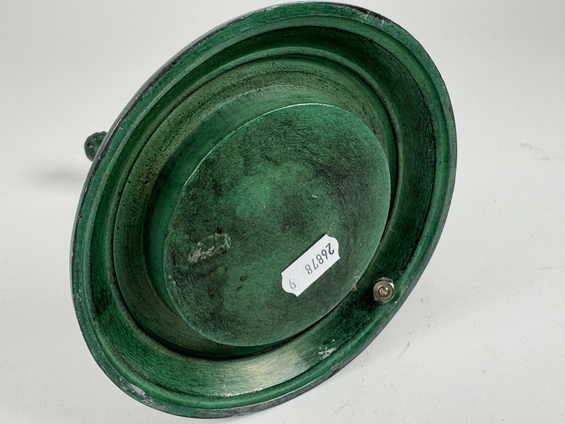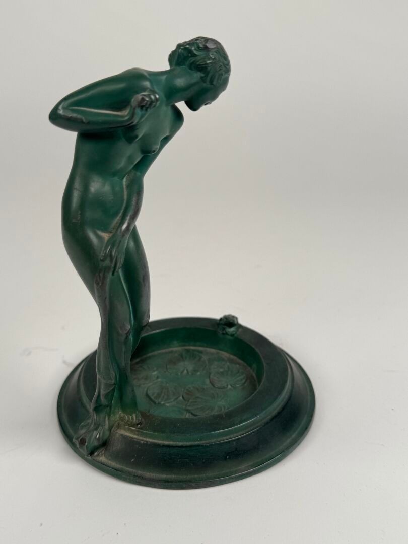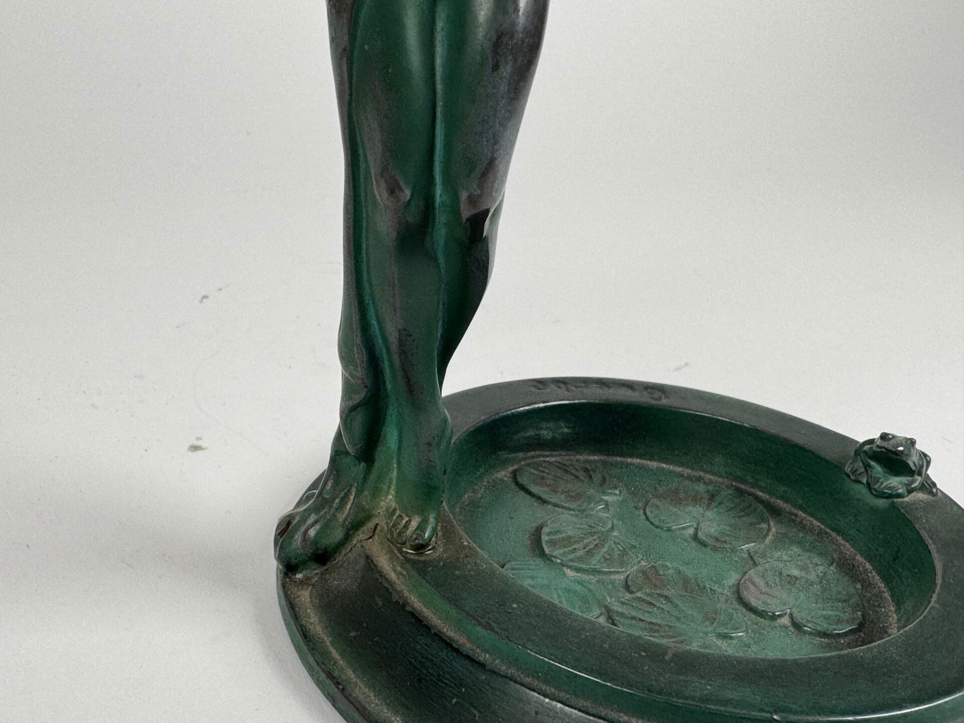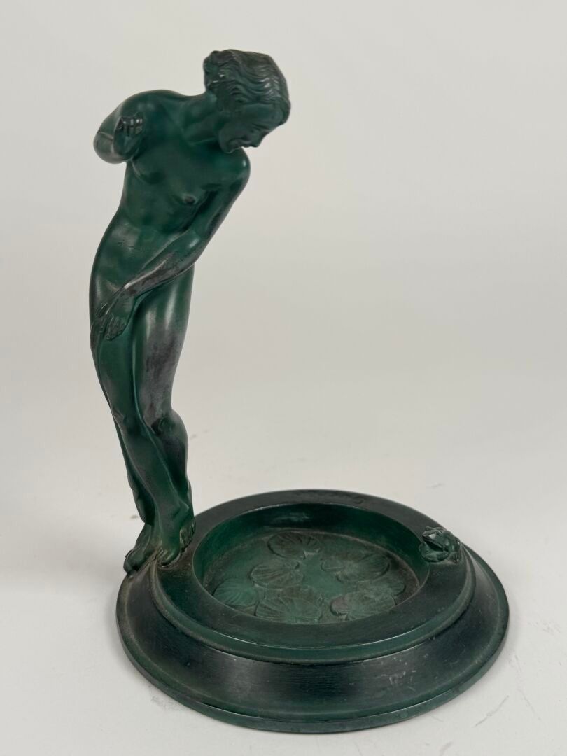 Subject in green patina bronze.