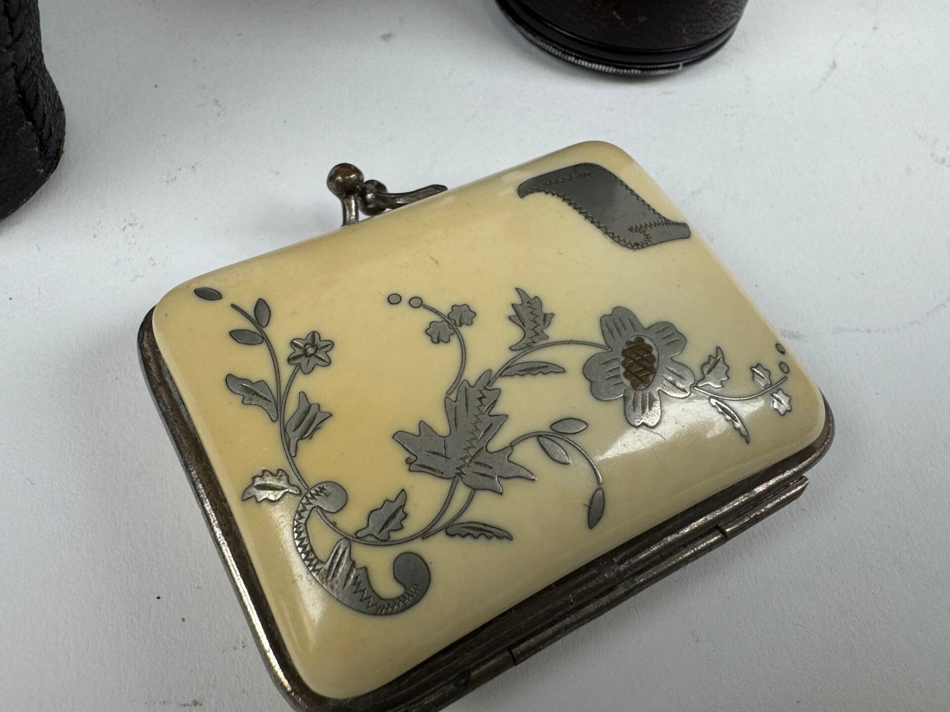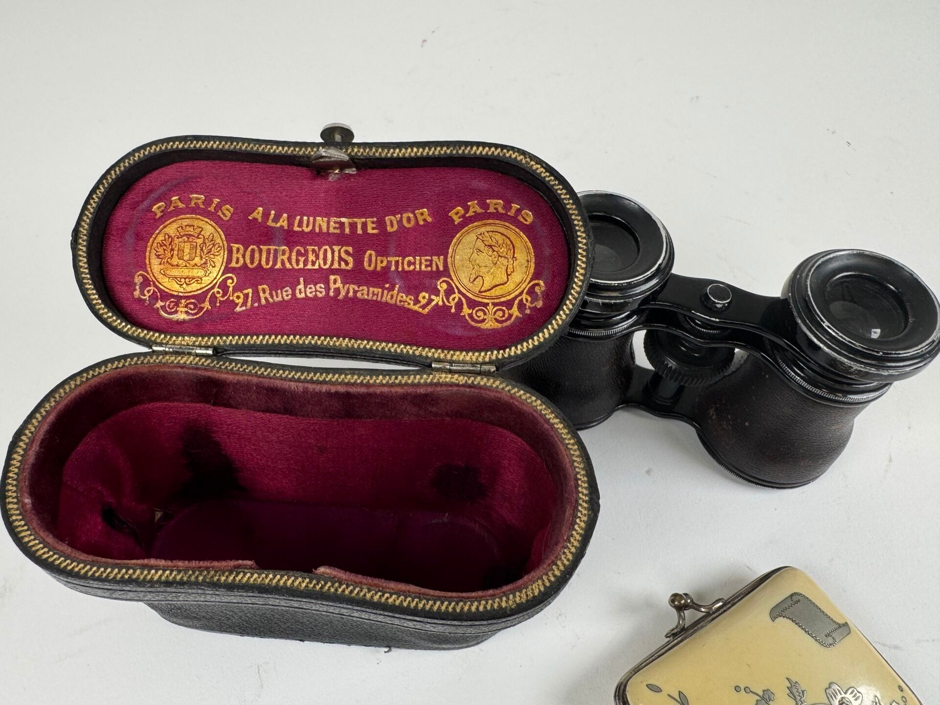 Lot including: - BOURGEOIS Optician in Paris. Pair of theatre binoculars. 6.5 x 10 x 4 cm. - small purse