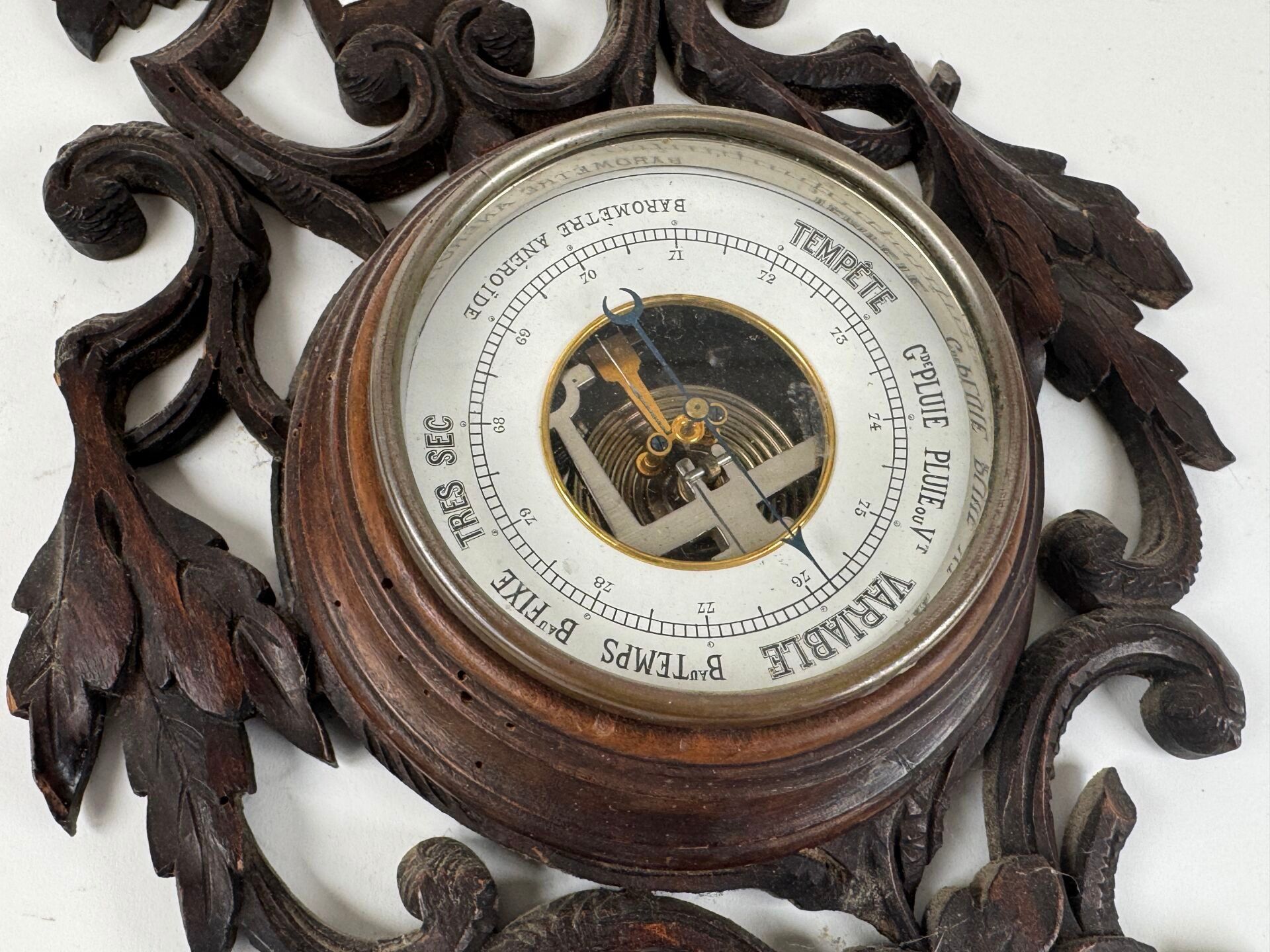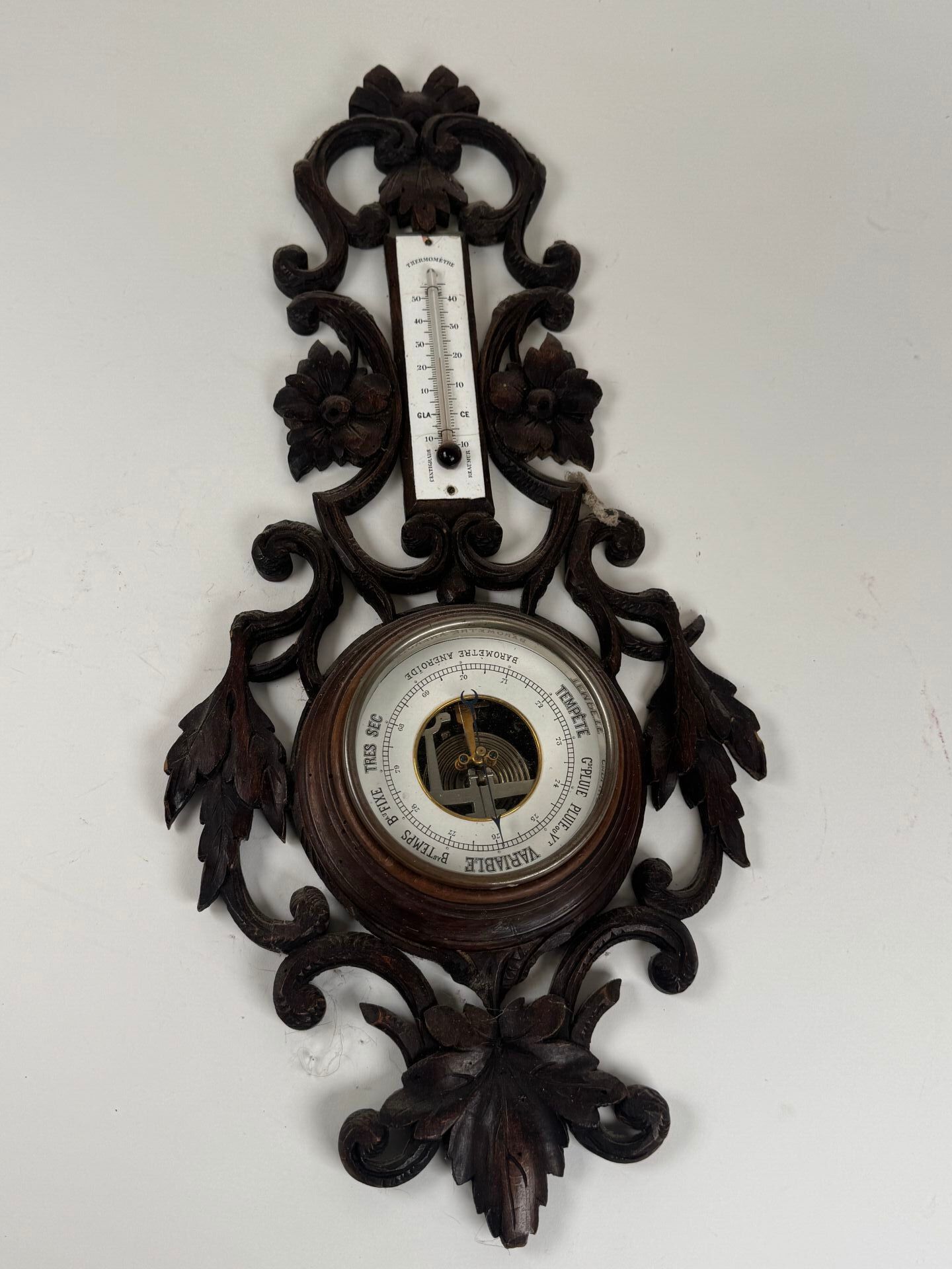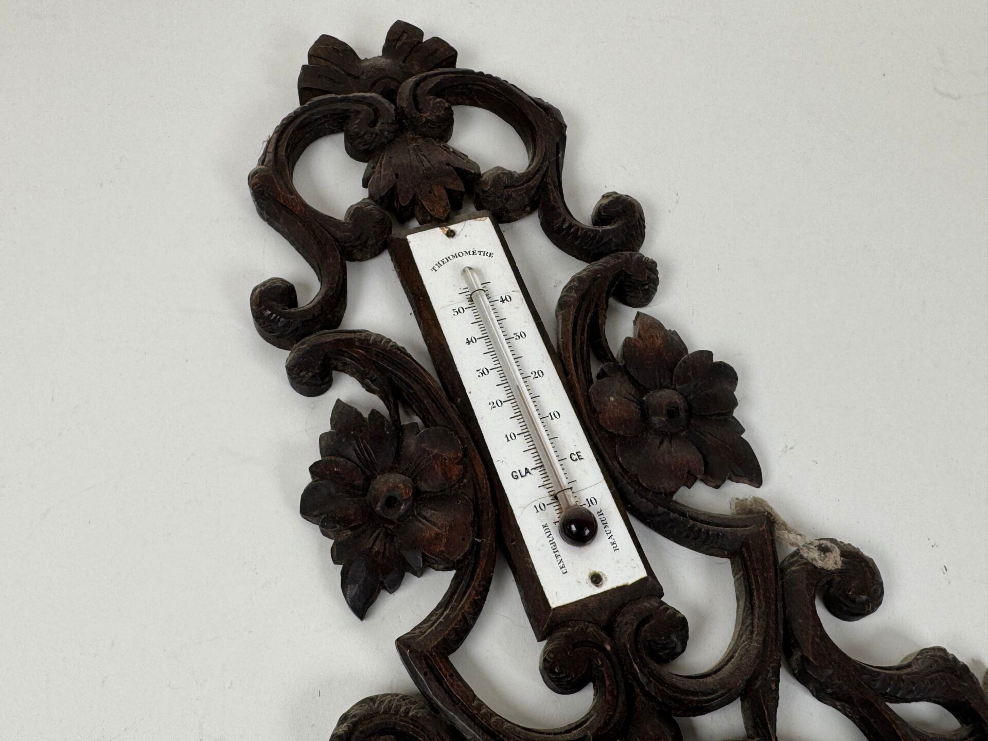 Barometer-thermometer in carved, openwork and enamelled wood…