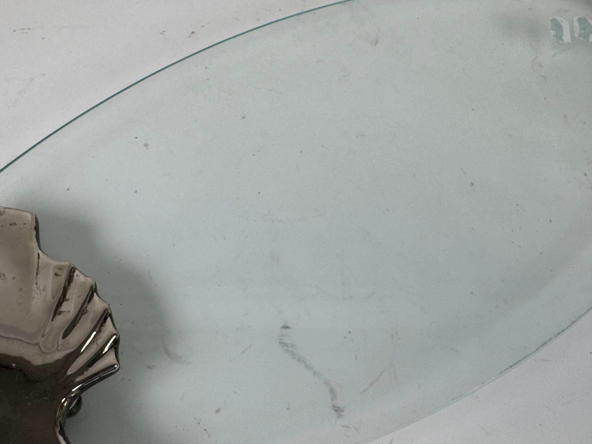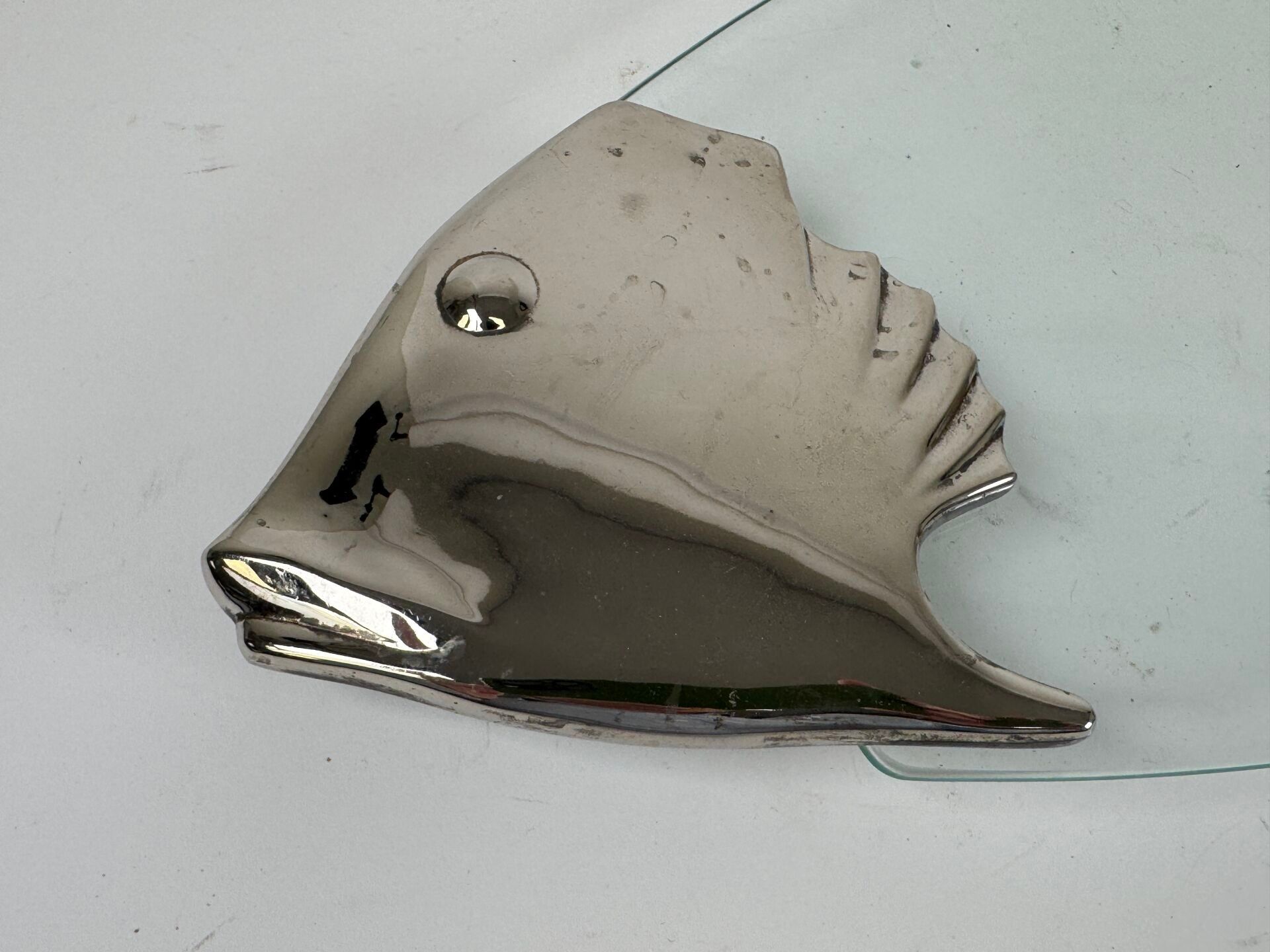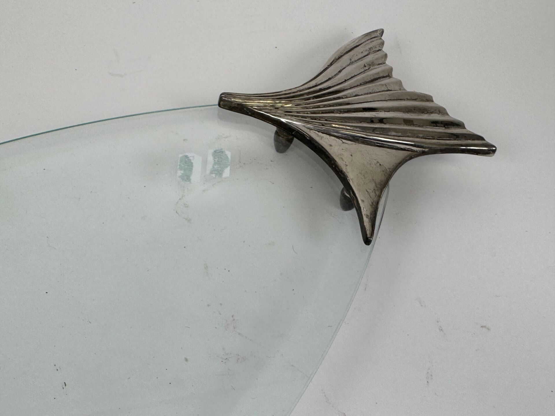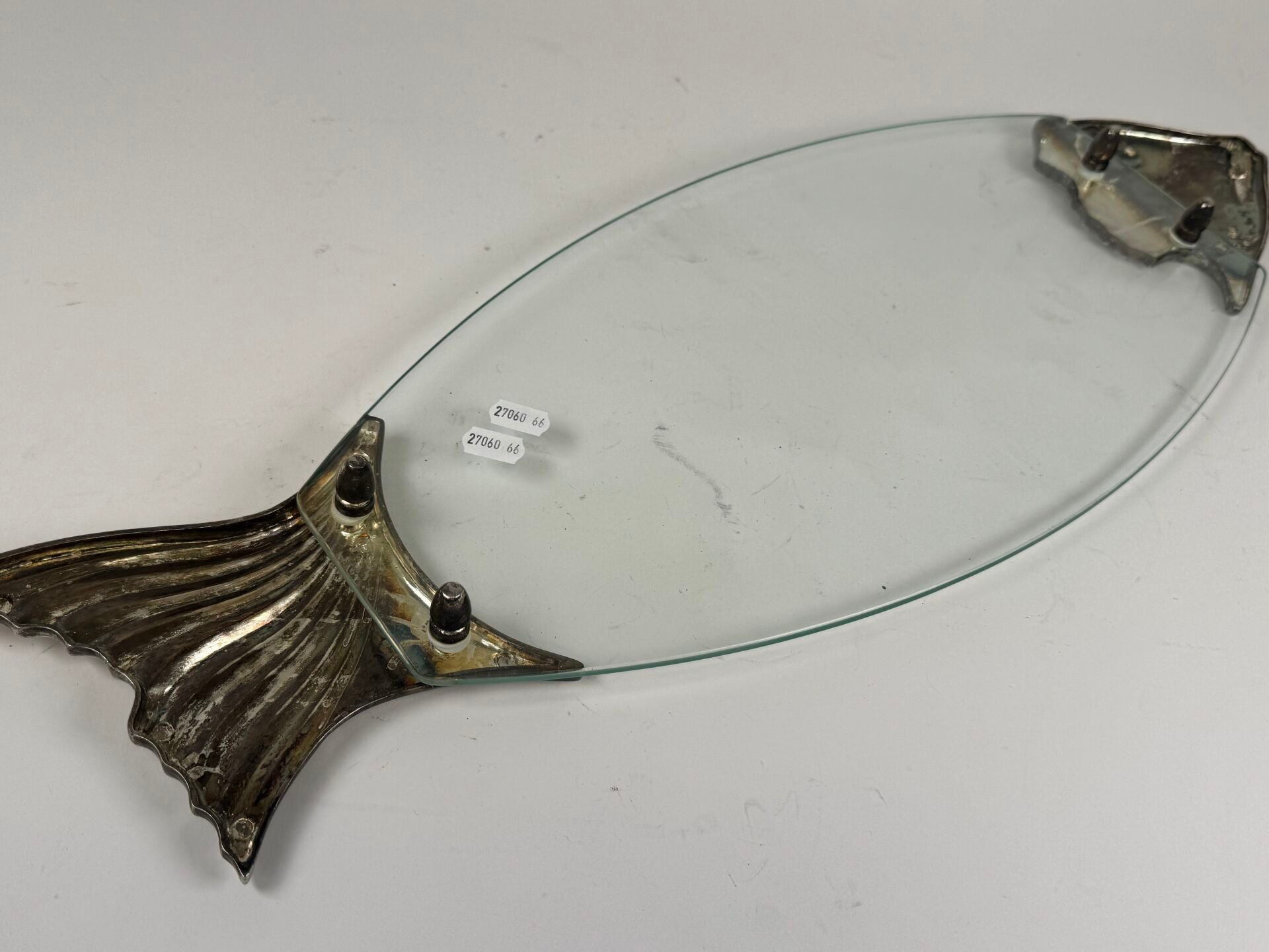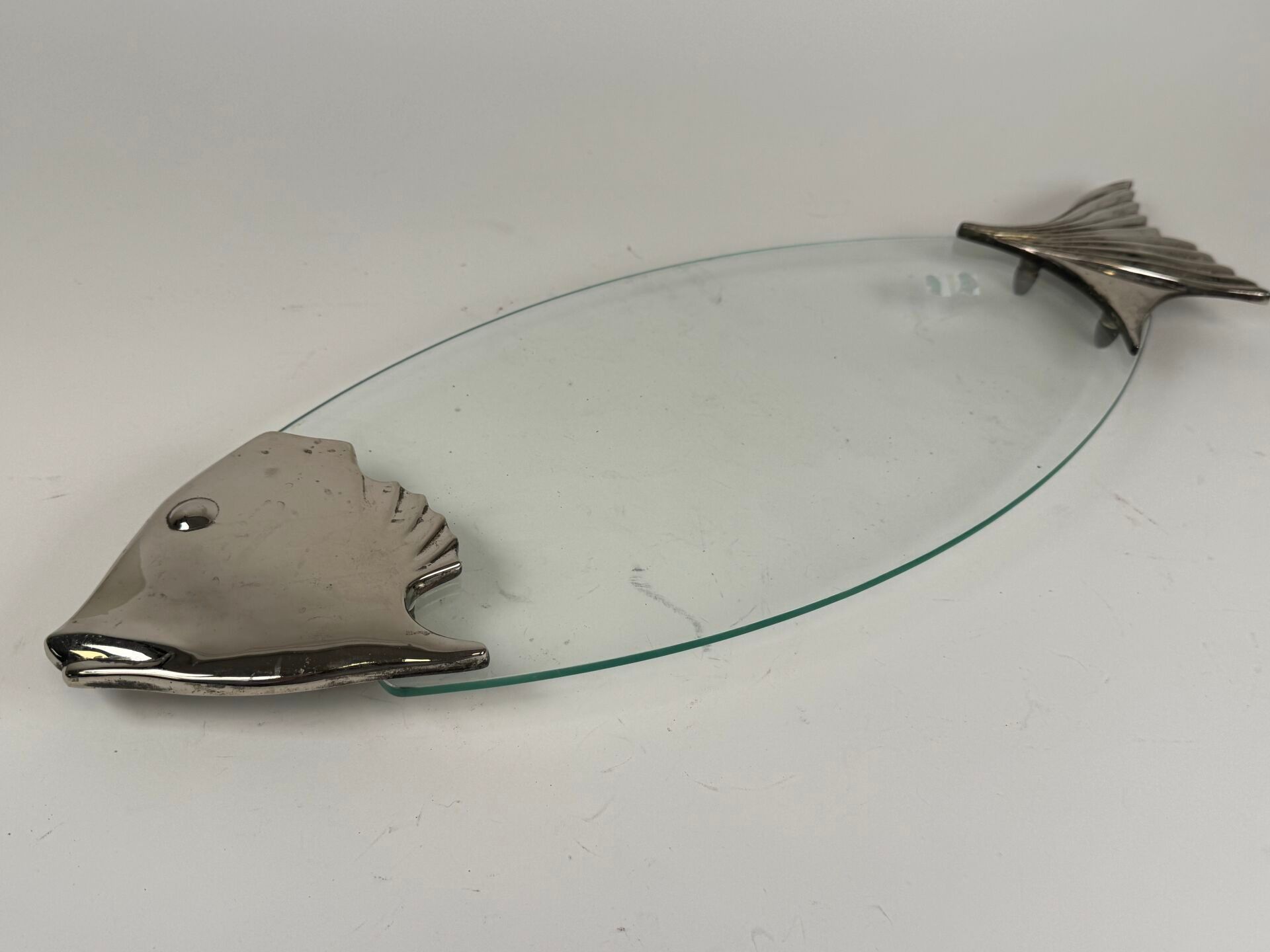 Large glass and silver-plated metal fish serving dish.