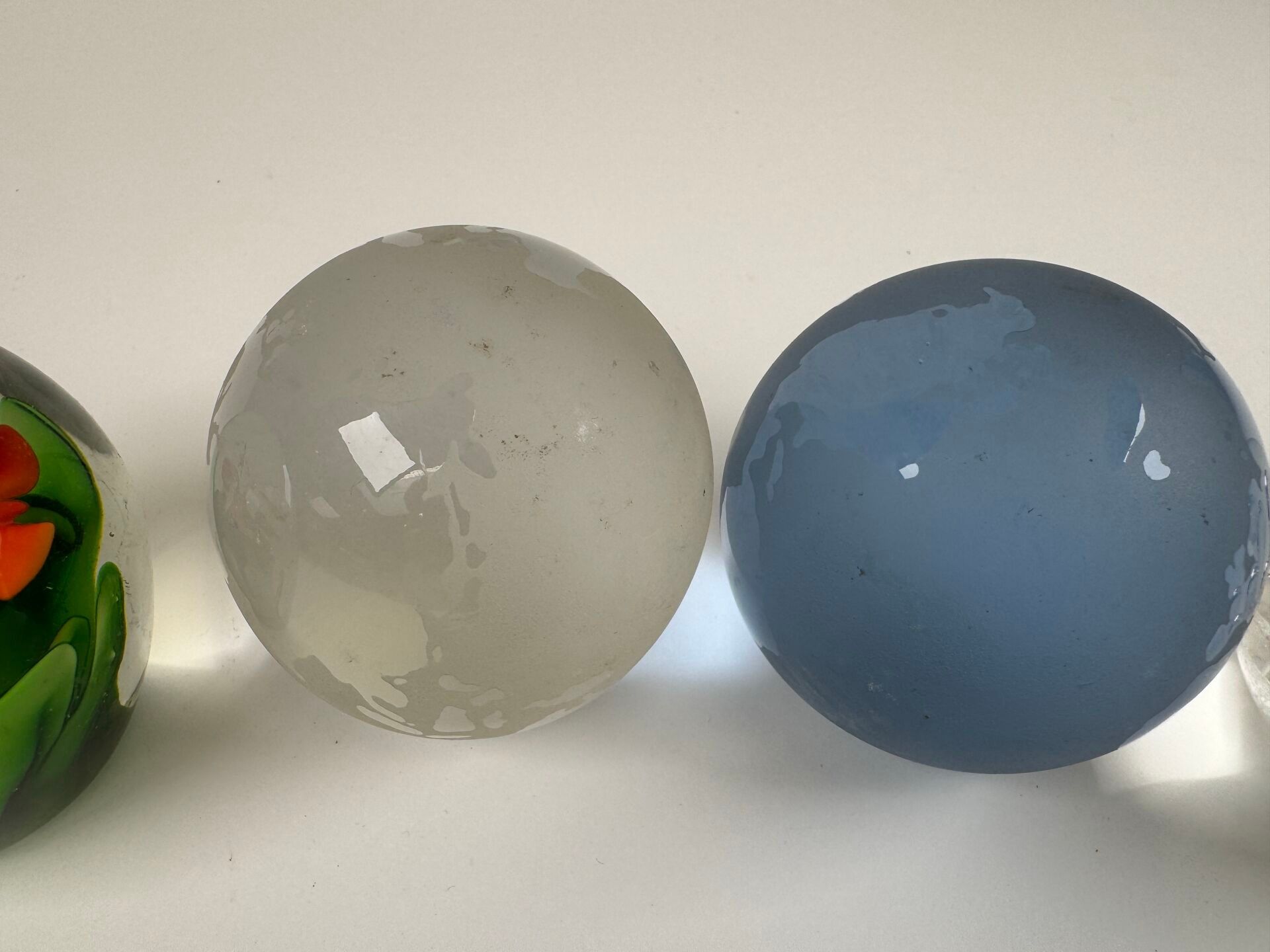 Collection of 4 coloured glass sulphur balls or paperweights…
