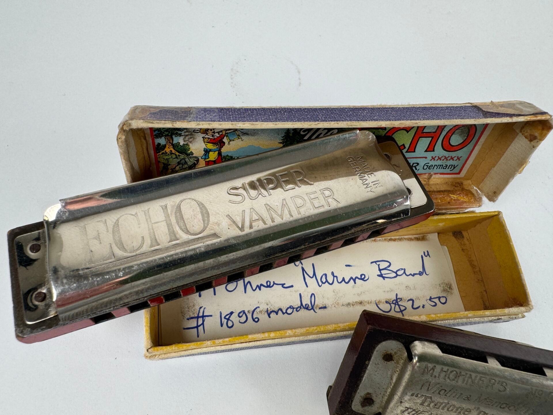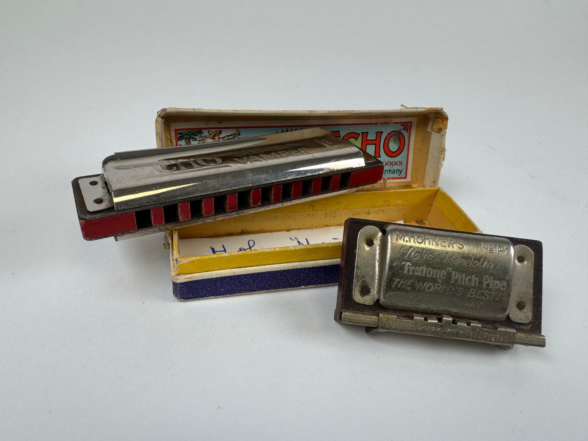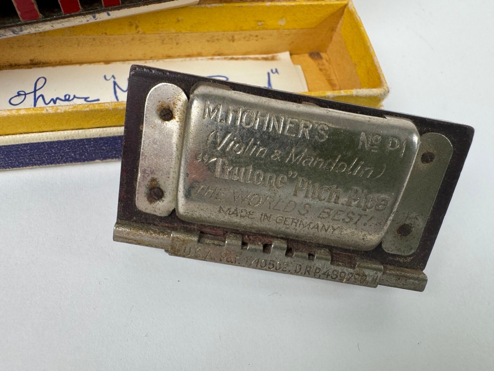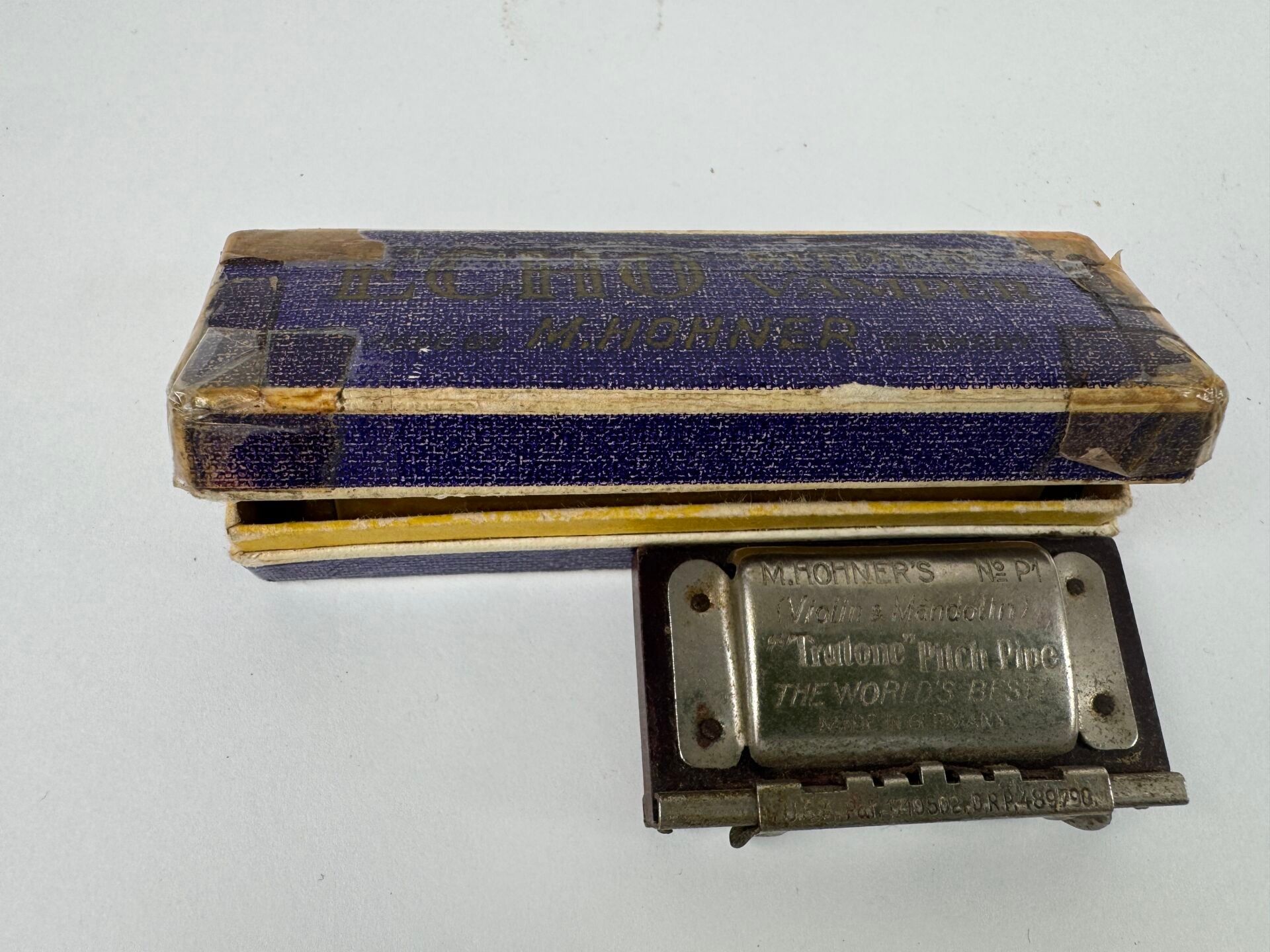 HOHNER. Two harmonicas, one in original case (traces of tape…