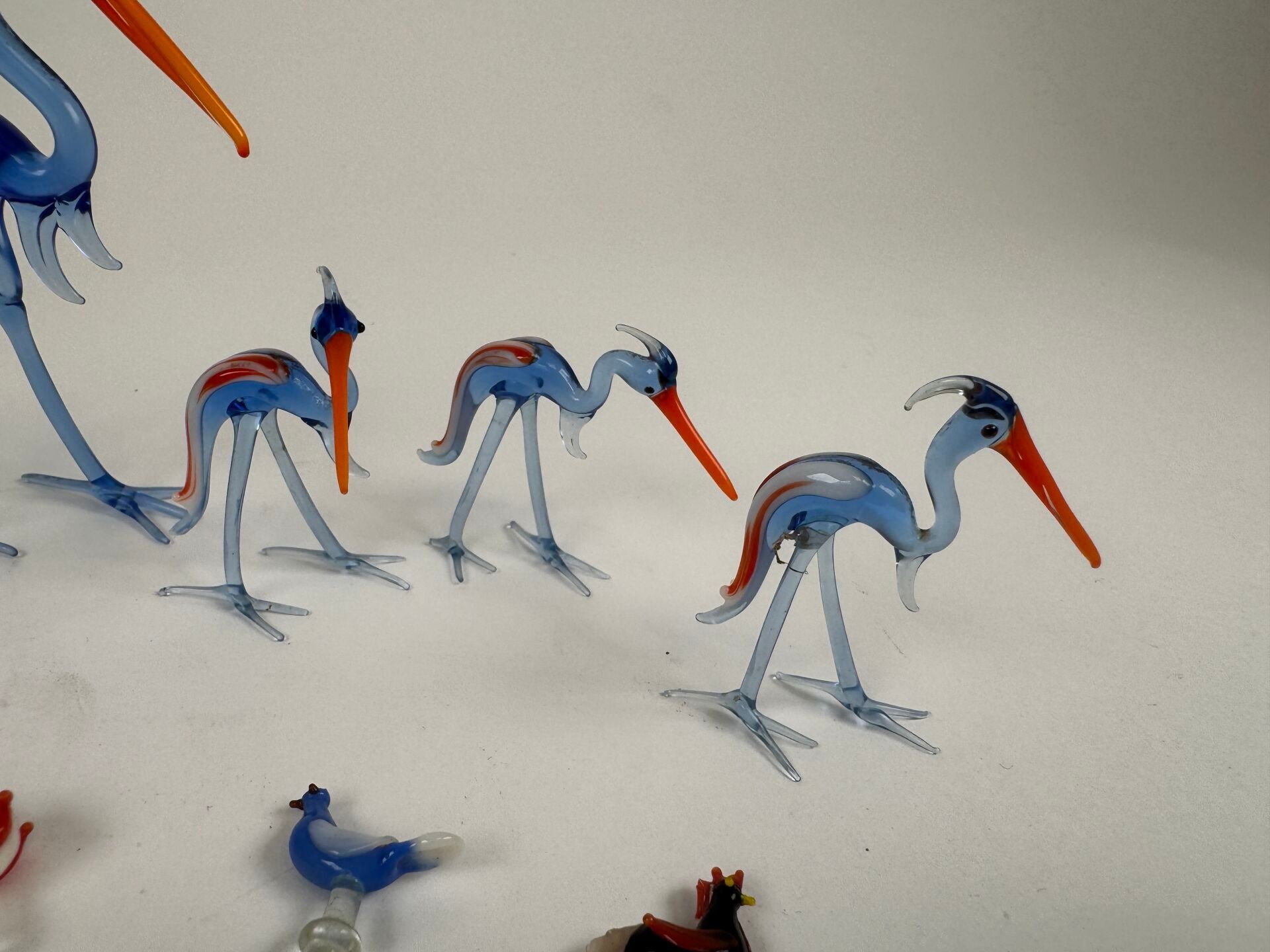 Spun glass lot including waders, 8 small swirls and small fr…