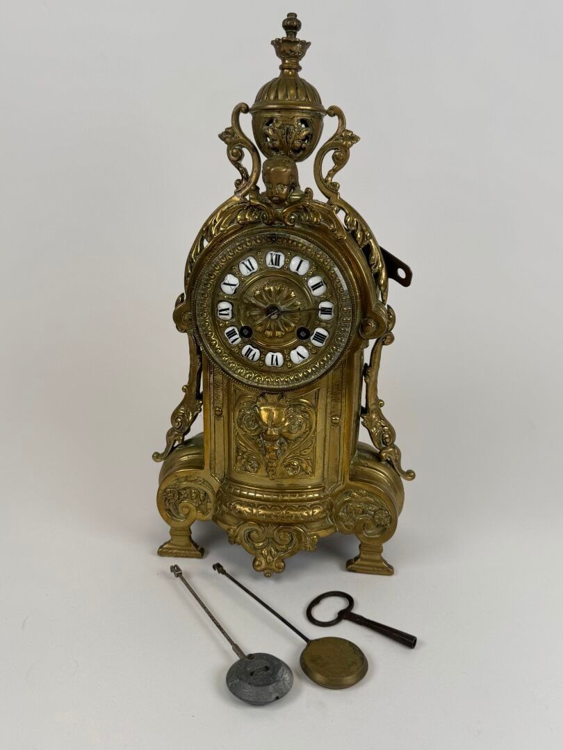 An ormolu and chased clock decorated with cherubs, satyrs an…