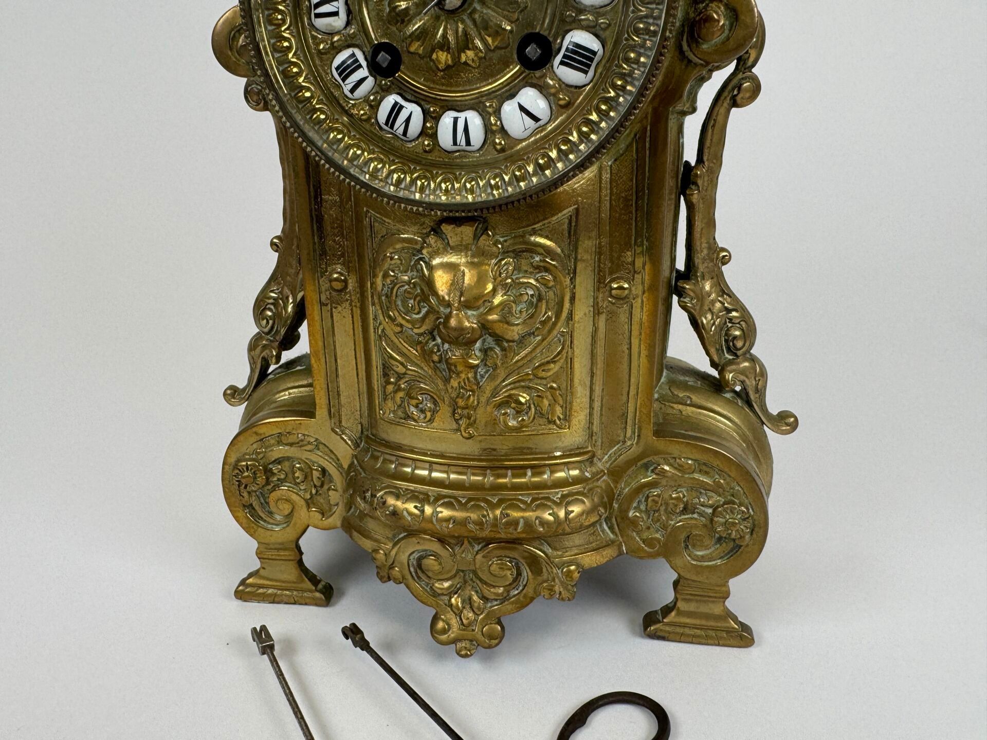 An ormolu and chased clock decorated with cherubs, satyrs and foliage.