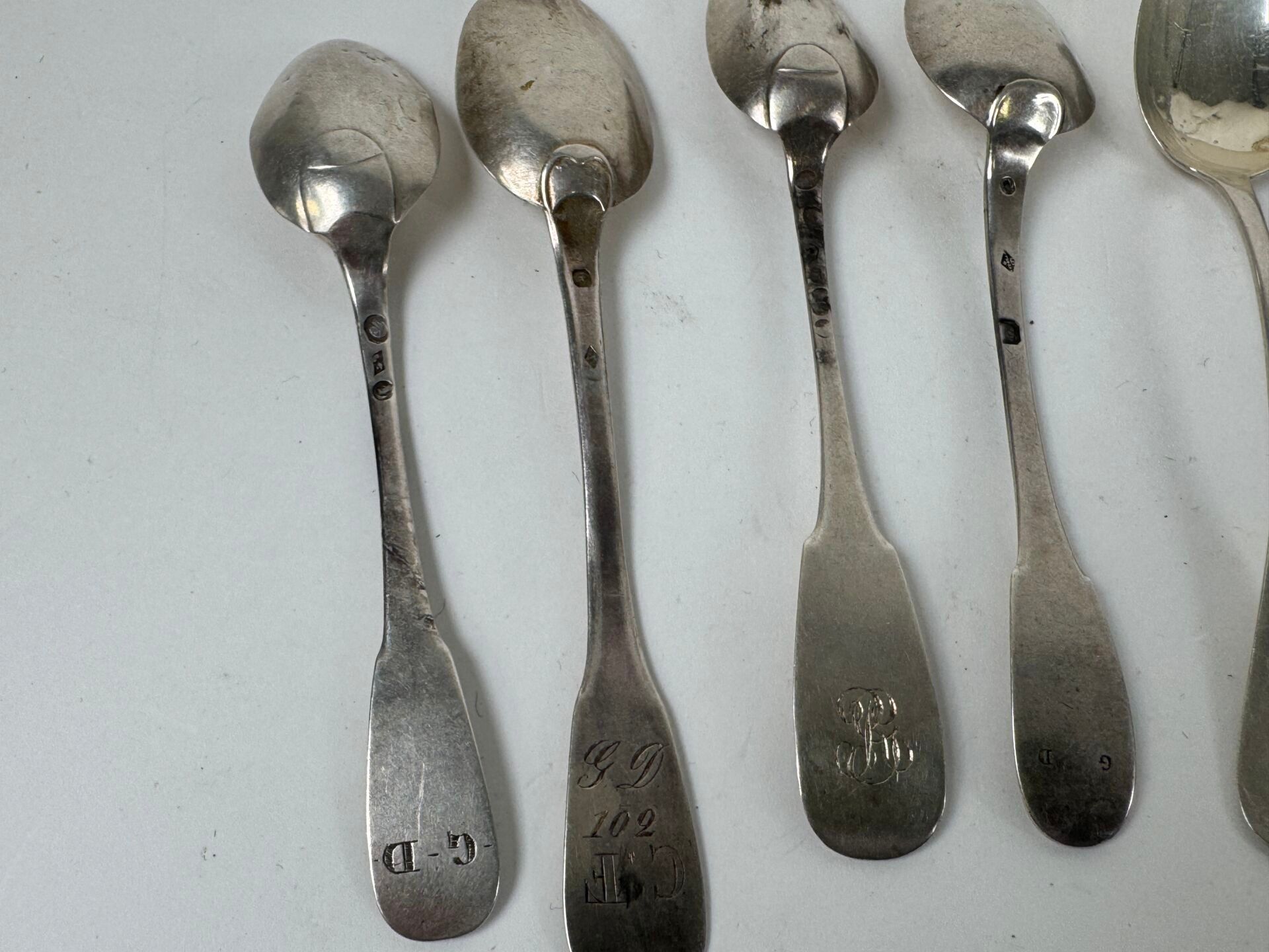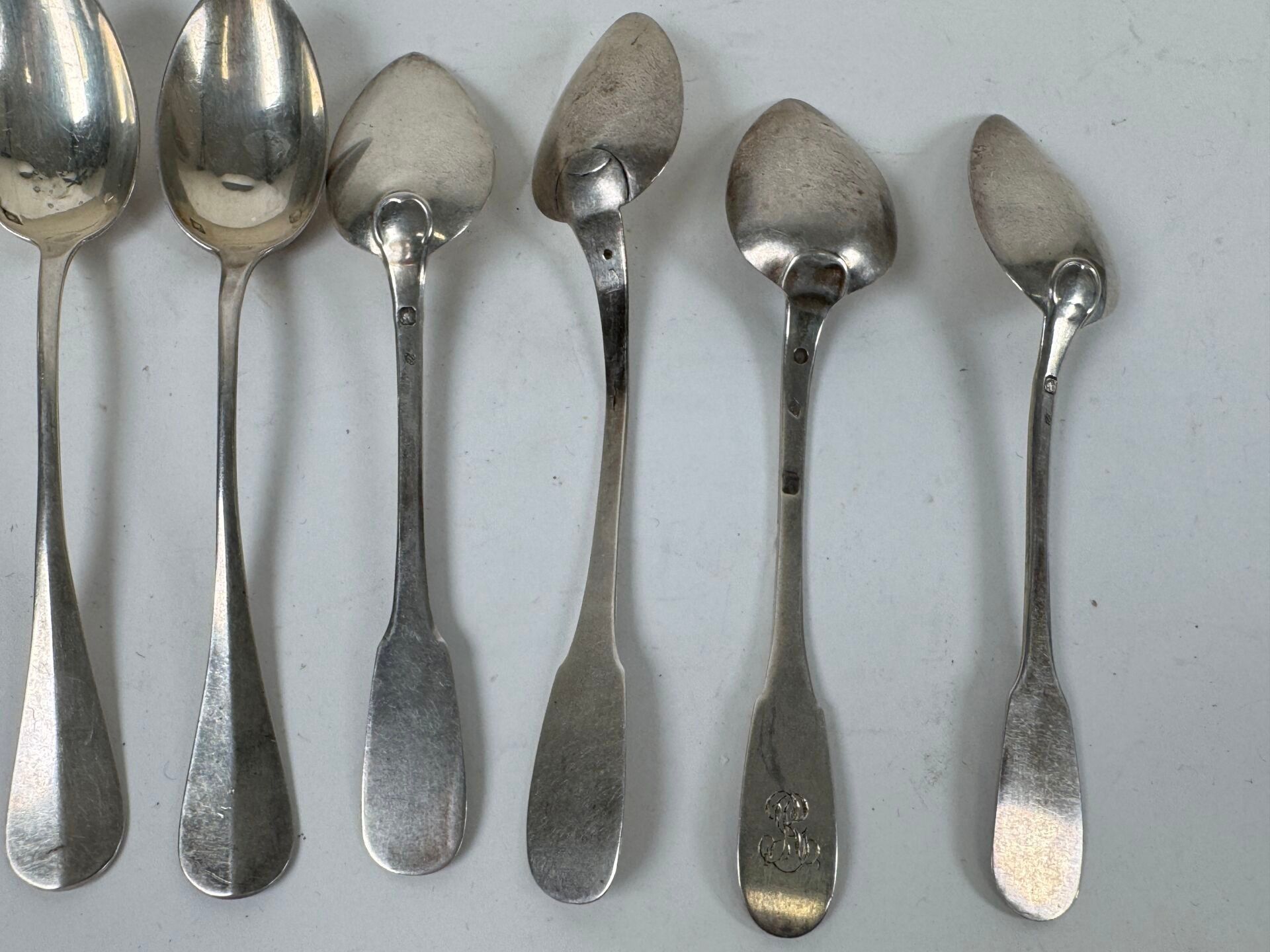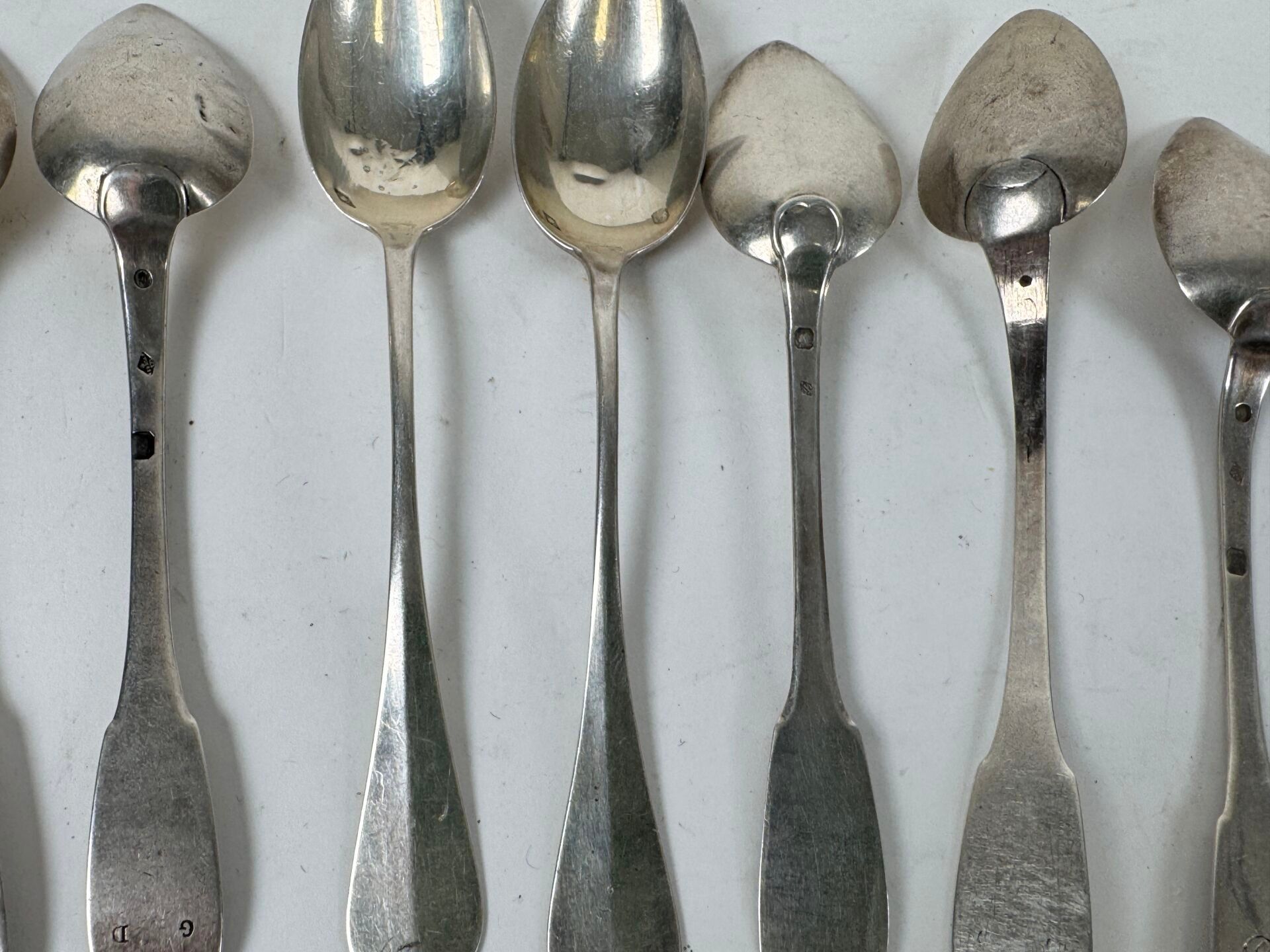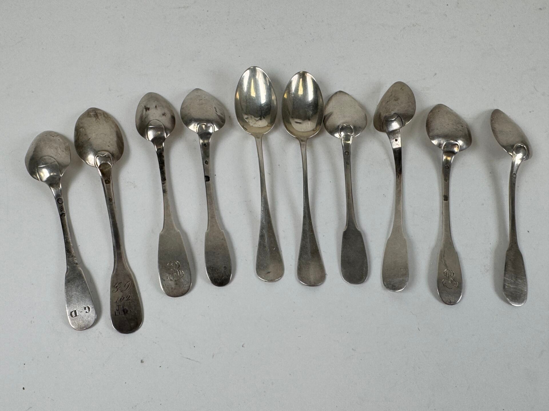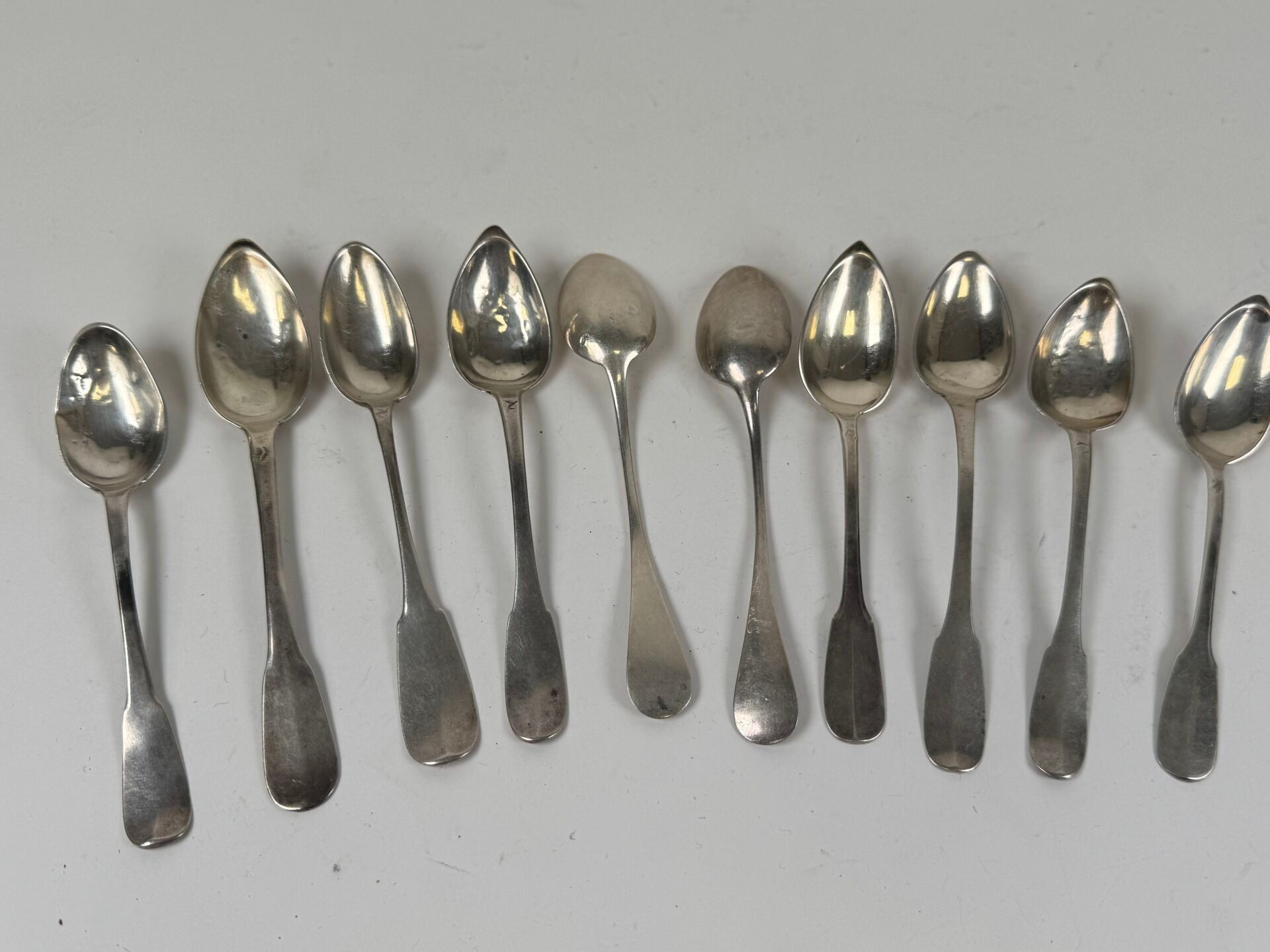 Set of 10 small spoons in 950/1000 silver, single-flat model. Some are engraved.