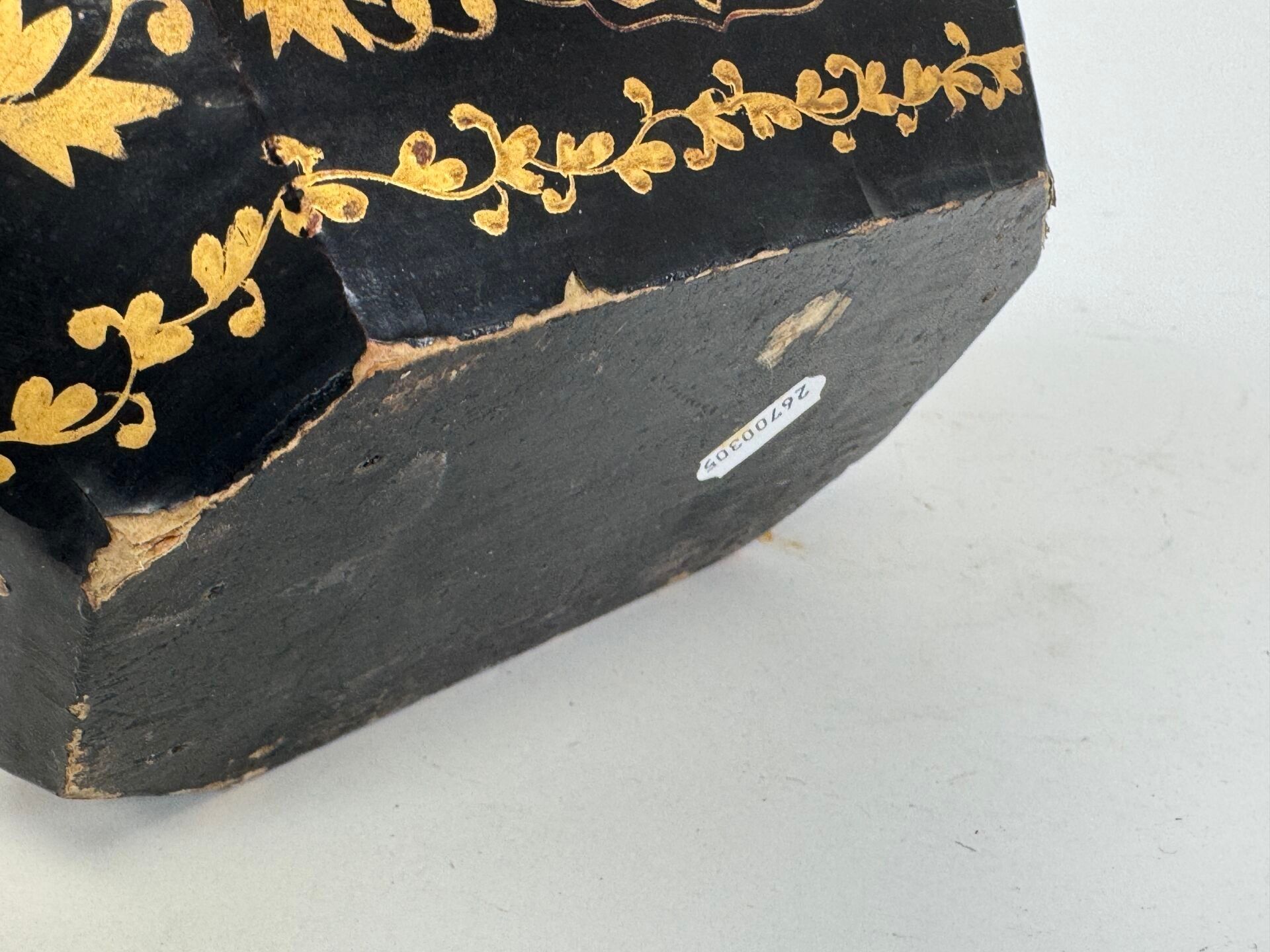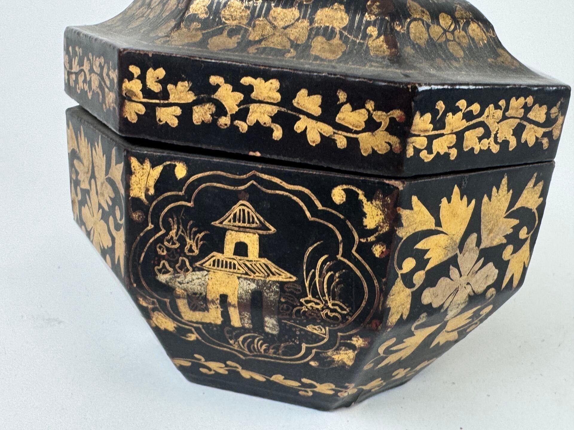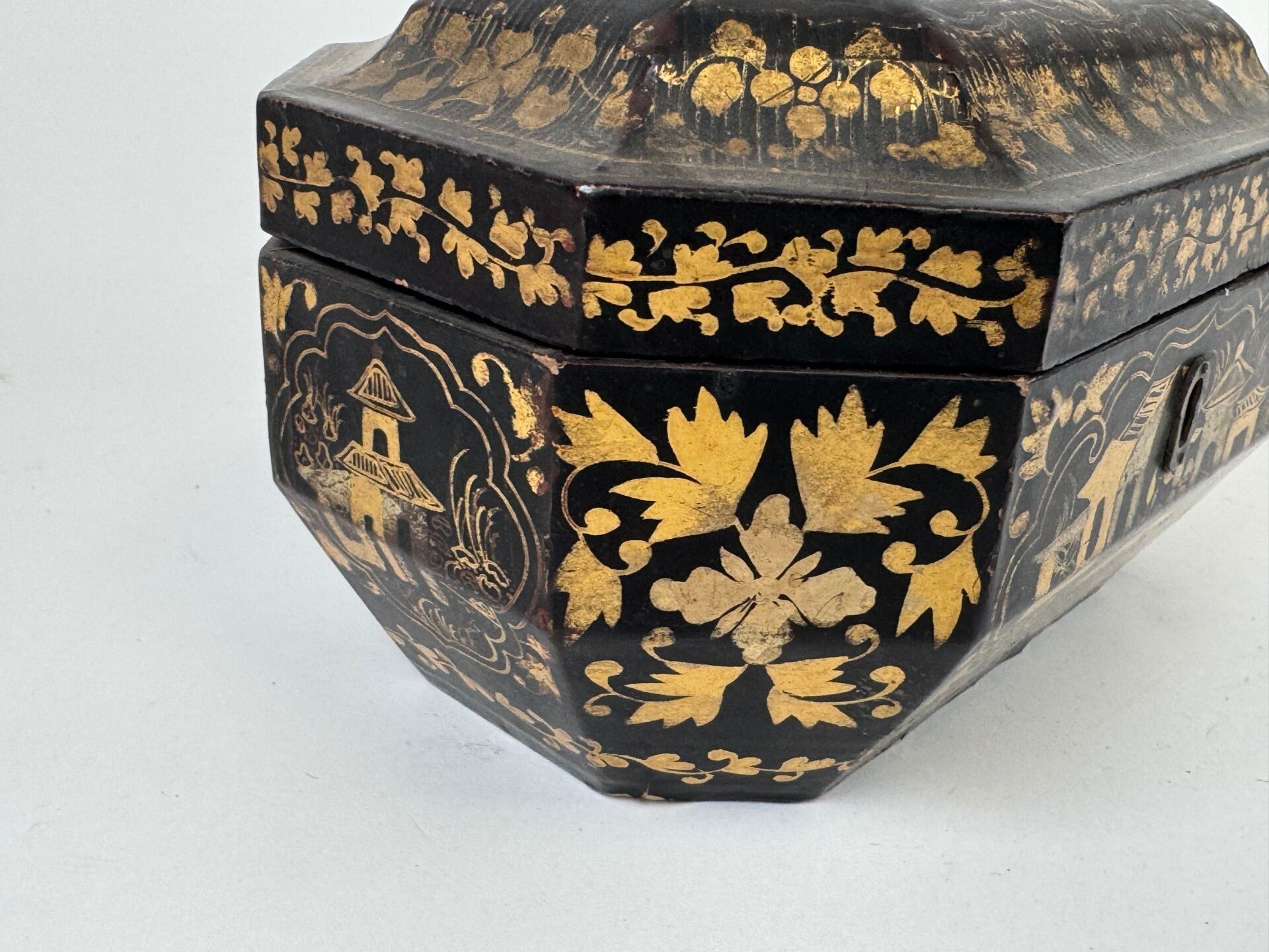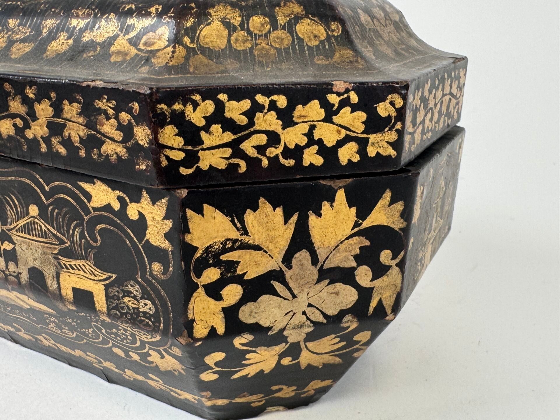 Lacquered wood tea caddy with gold decoration of Asian lands…
