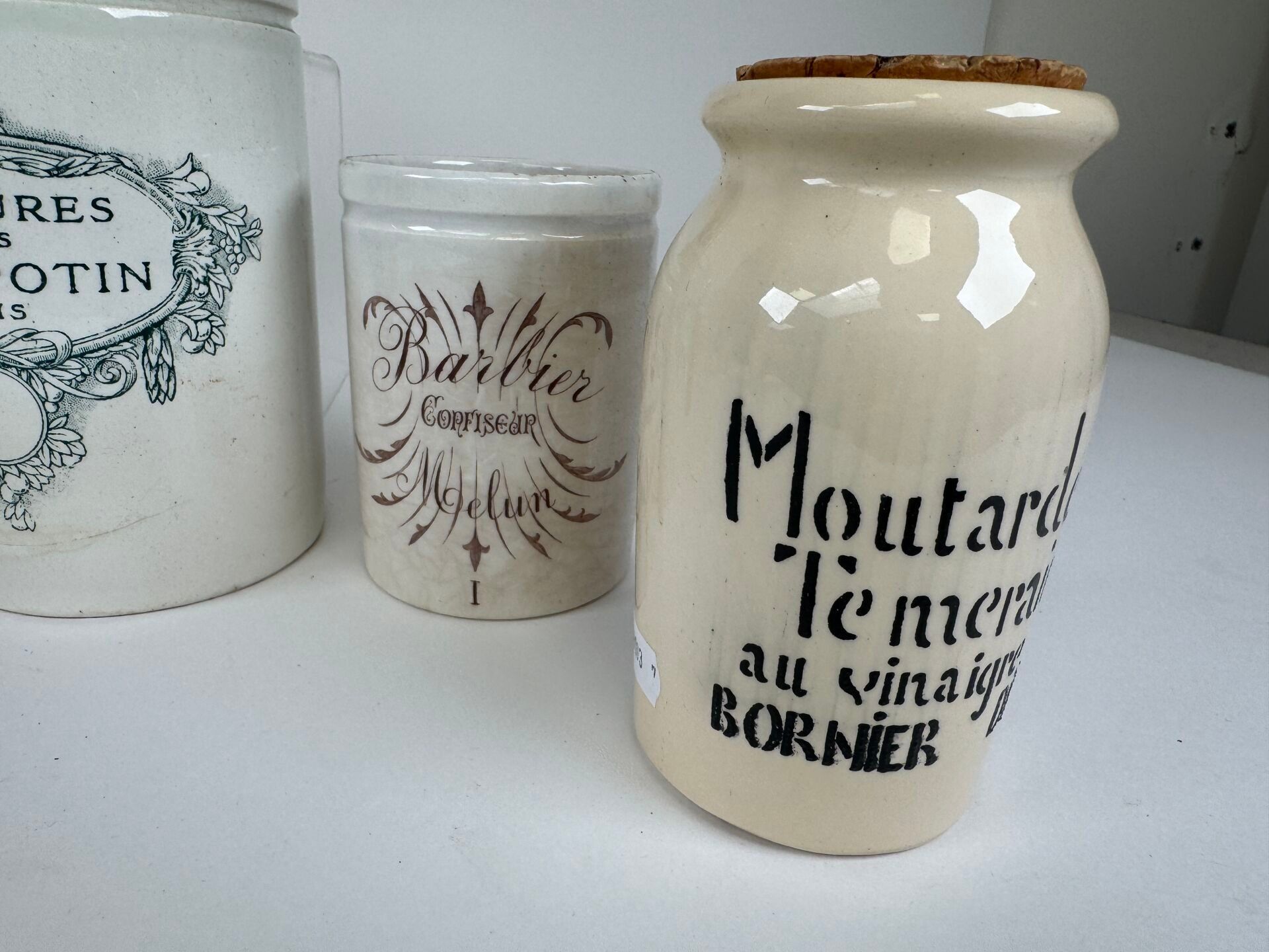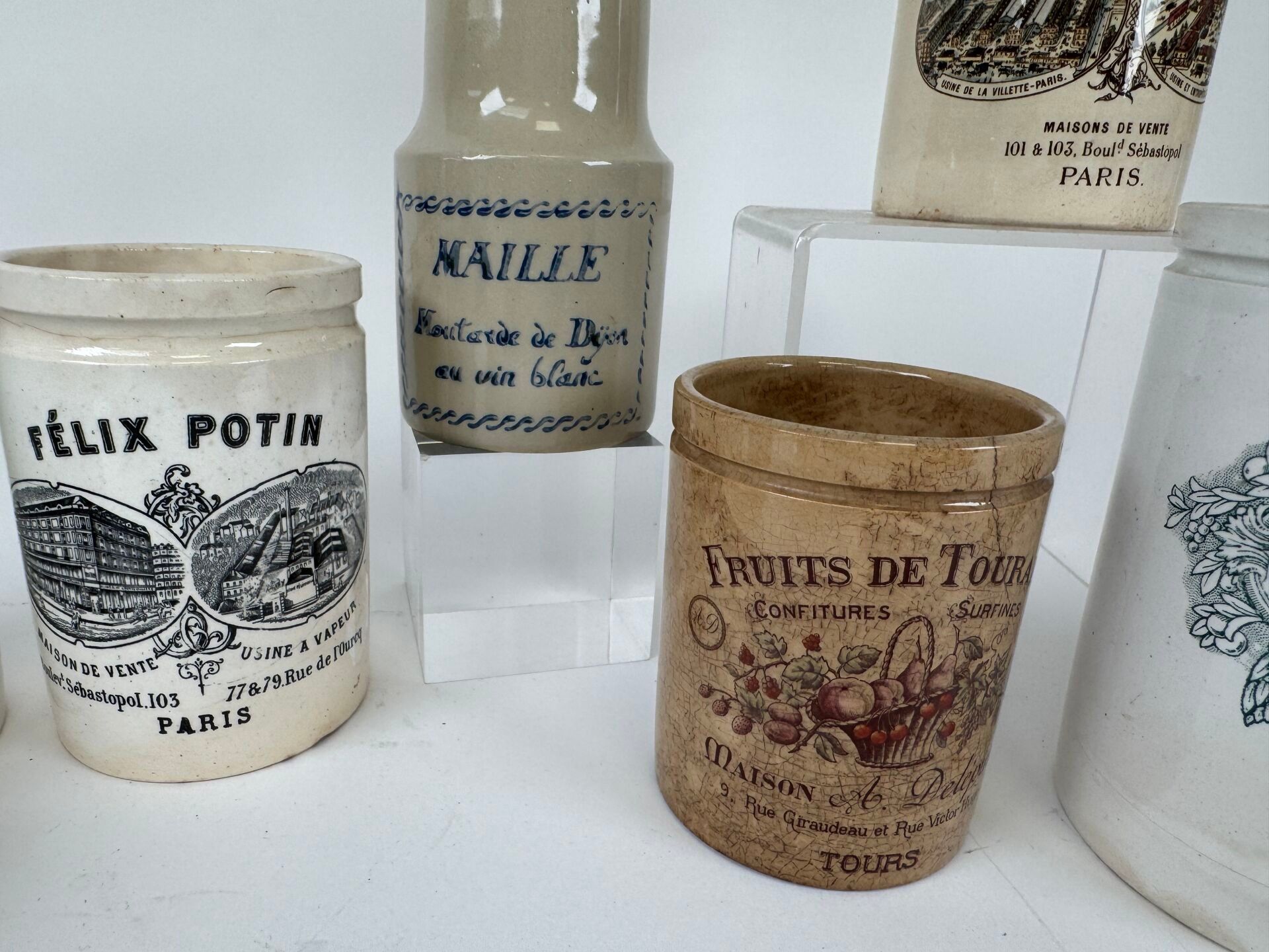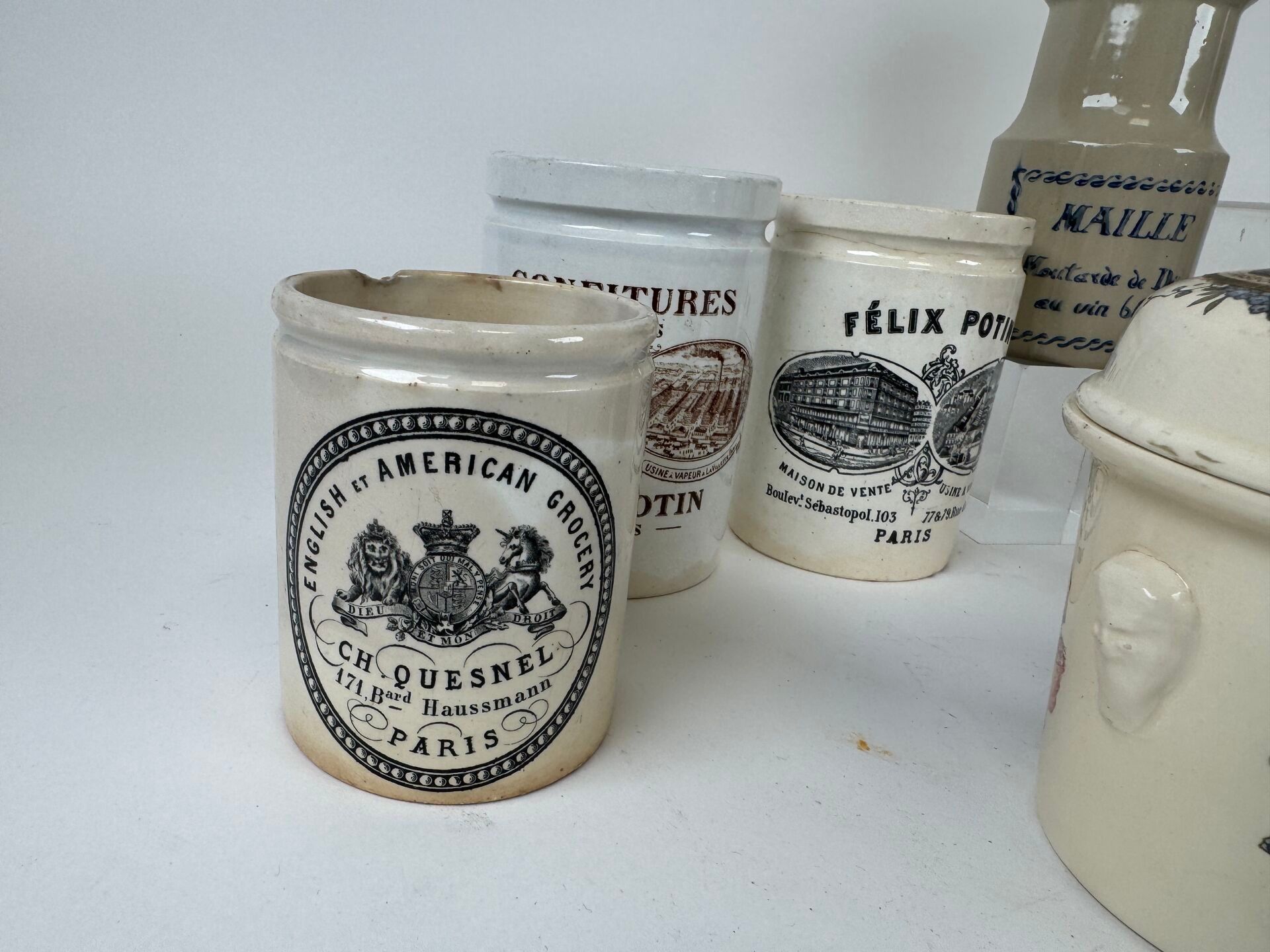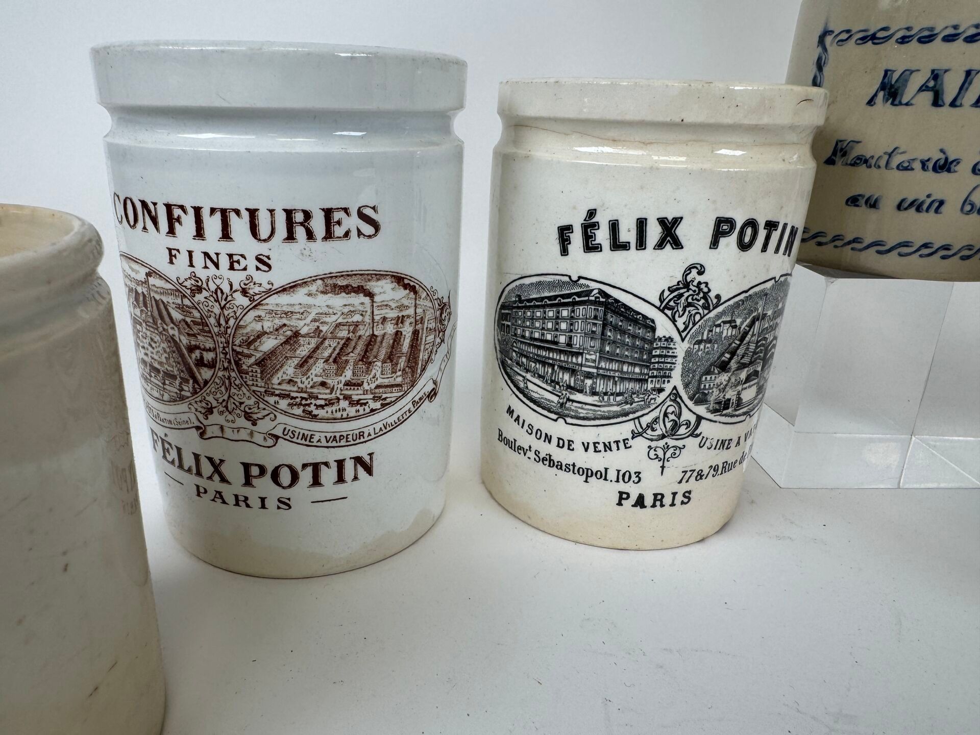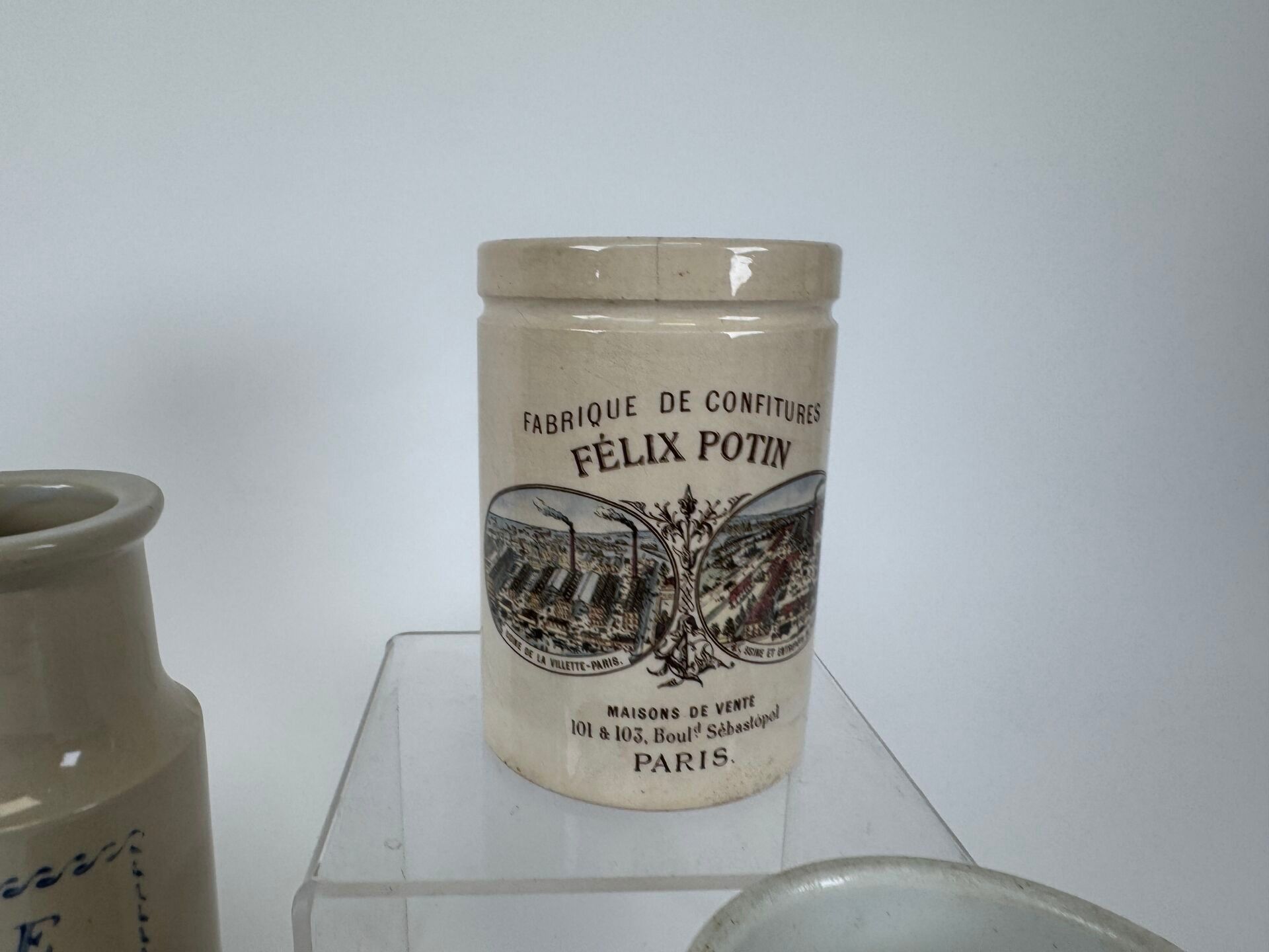 Collection of 10 polychrome earthenware mustard or jam jars, including advertising by Félix POTIN, ...