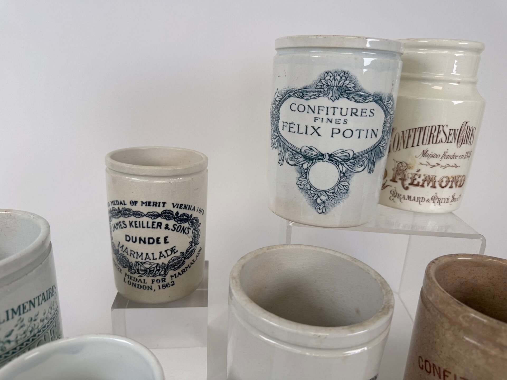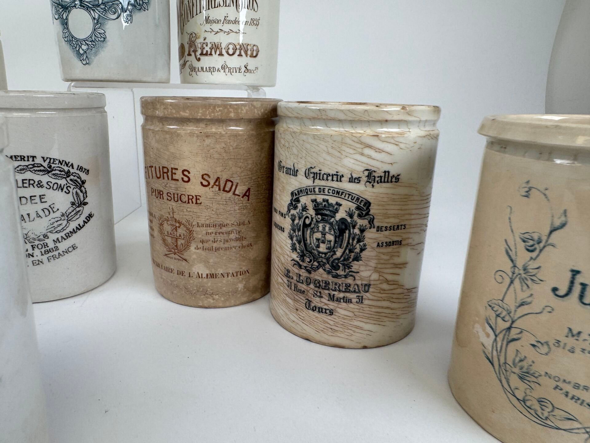 Collection of 13 polychrome earthenware jam jars including Félix POTIN, ...