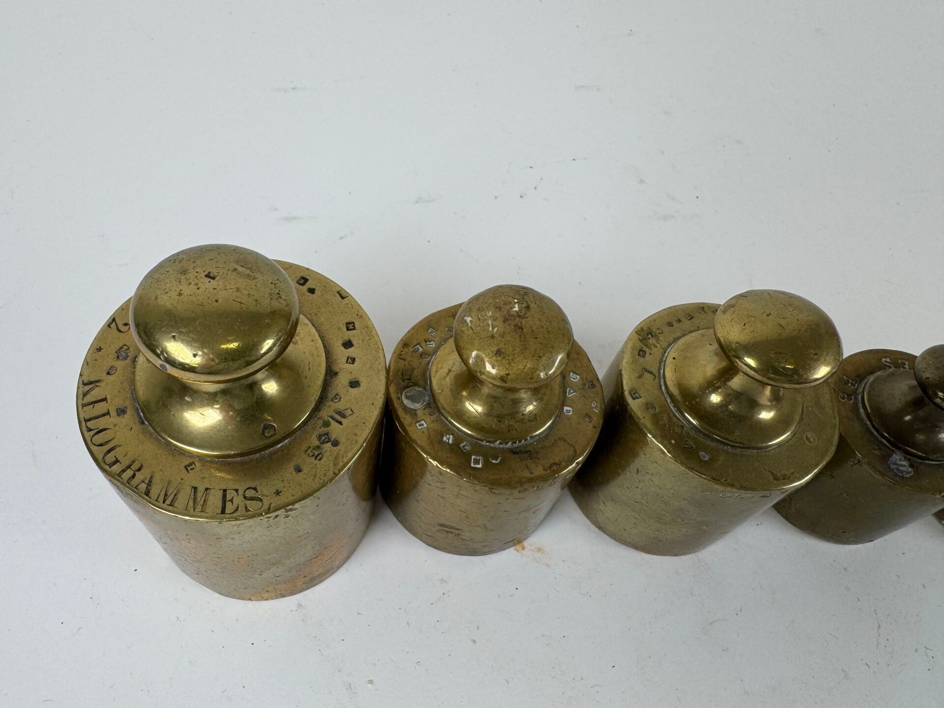 5 gold-plated metal weights. 2 kg, 1 kg and 500 grams.