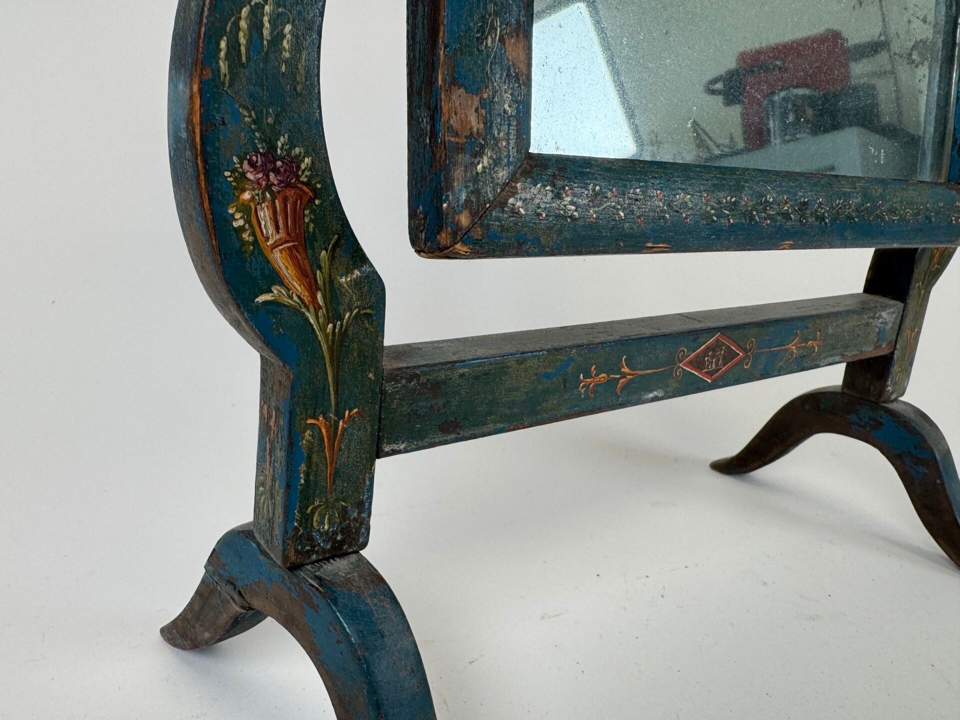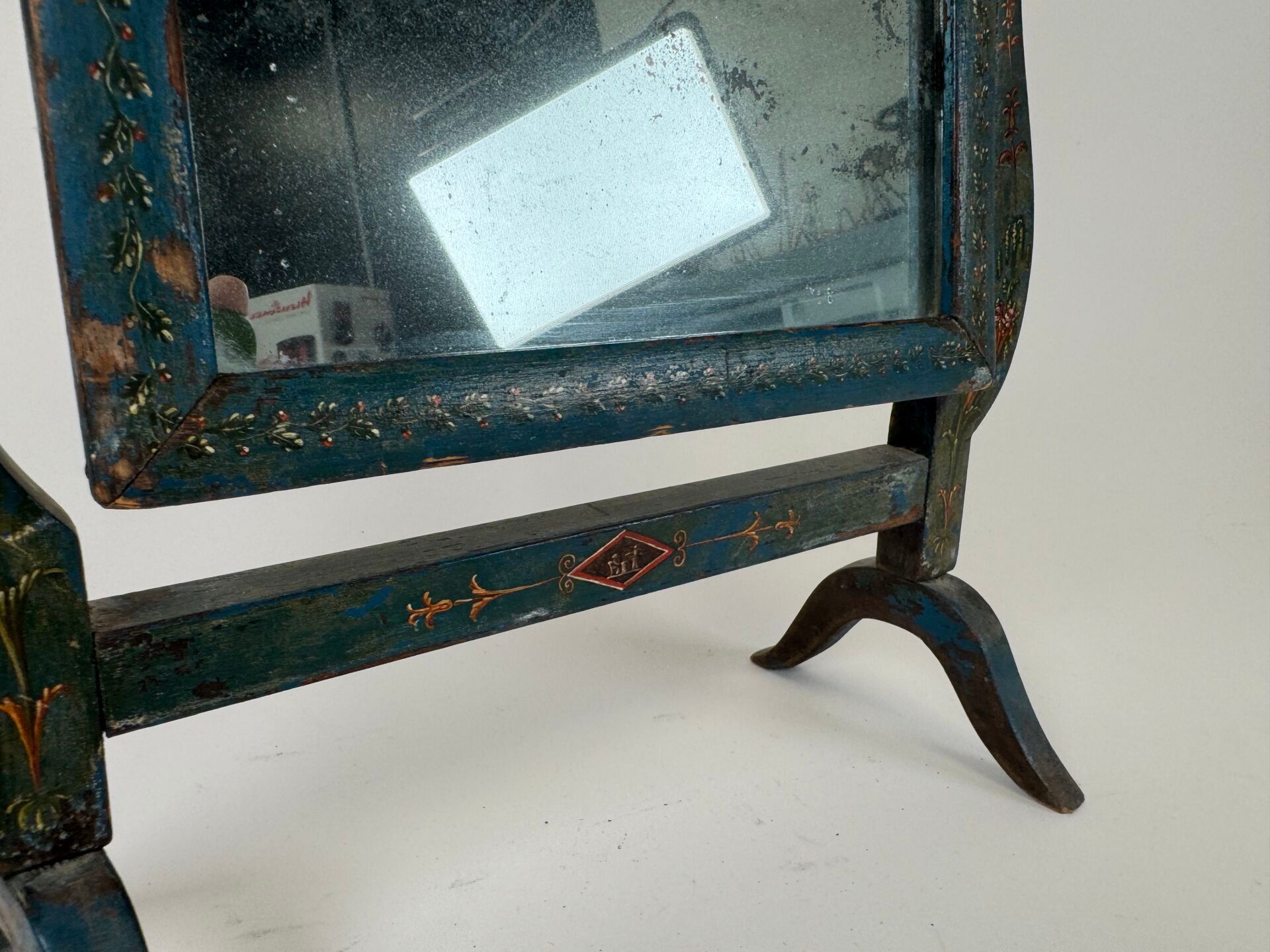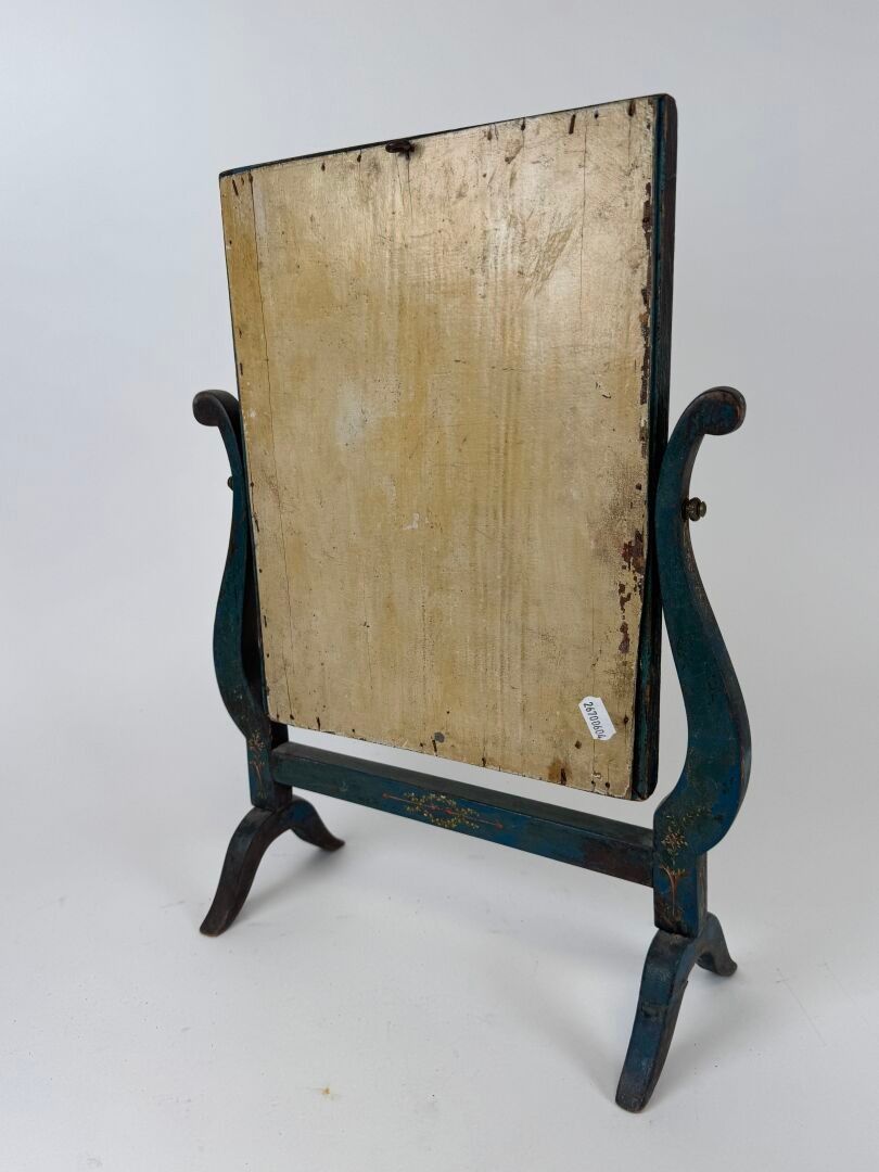 Rectangular swivel table mirror in painted wood decorated with small flowers.