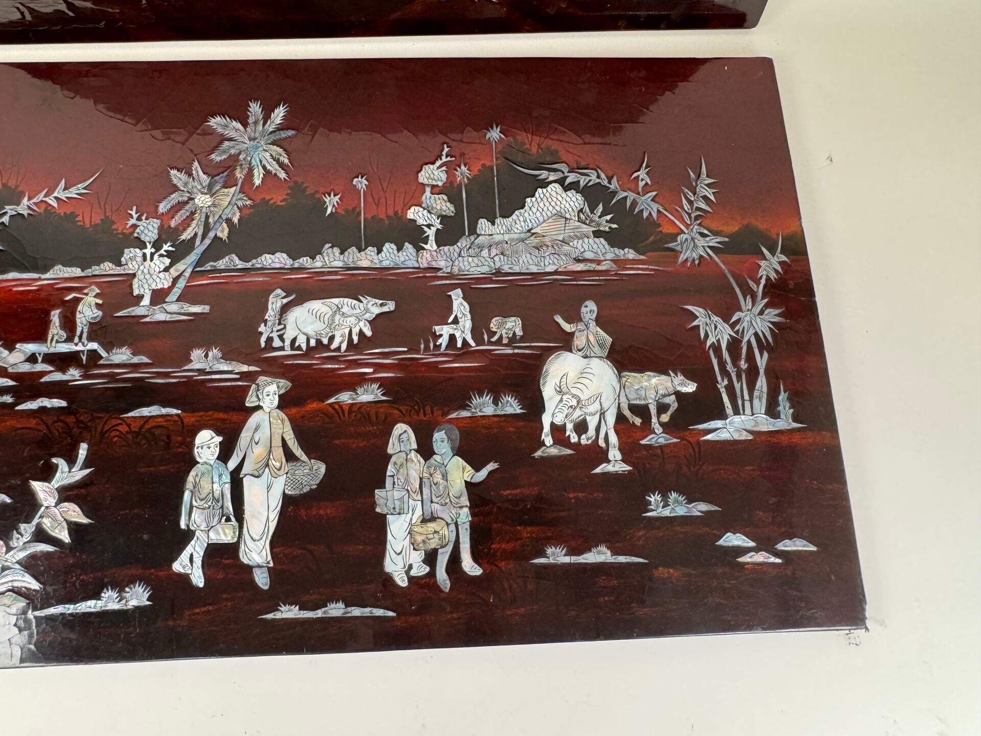 ASIA, 20th century Two rectangular panels in lacquered wood …