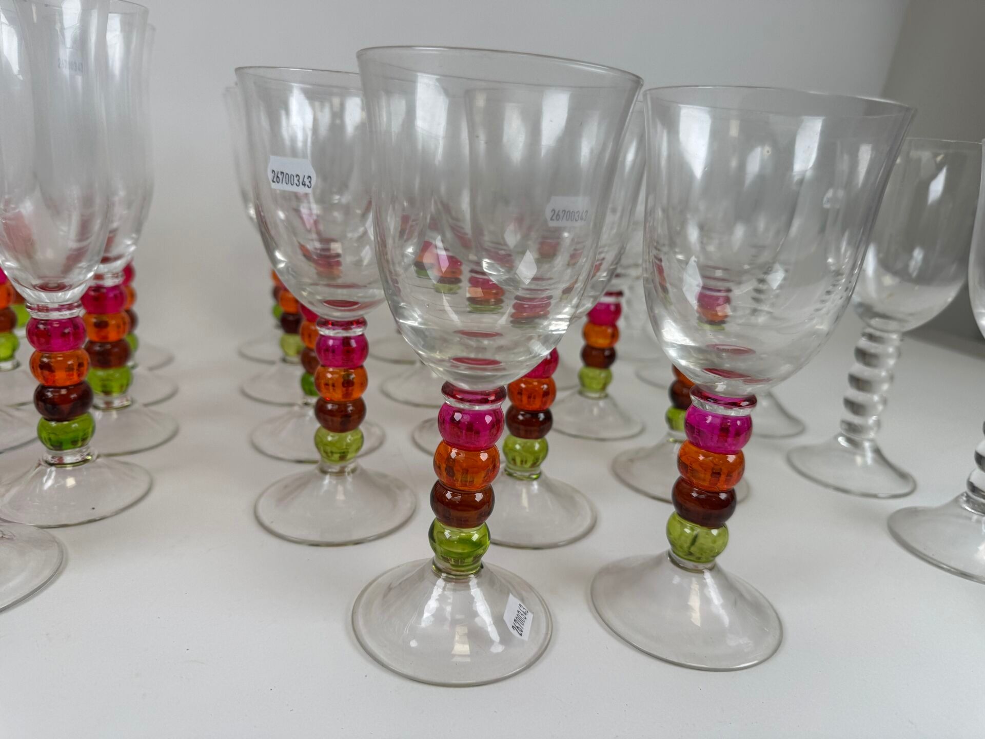 Part of a glass service with partially coloured stems compri…
