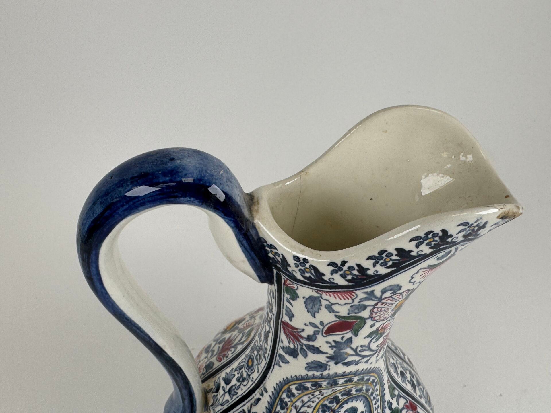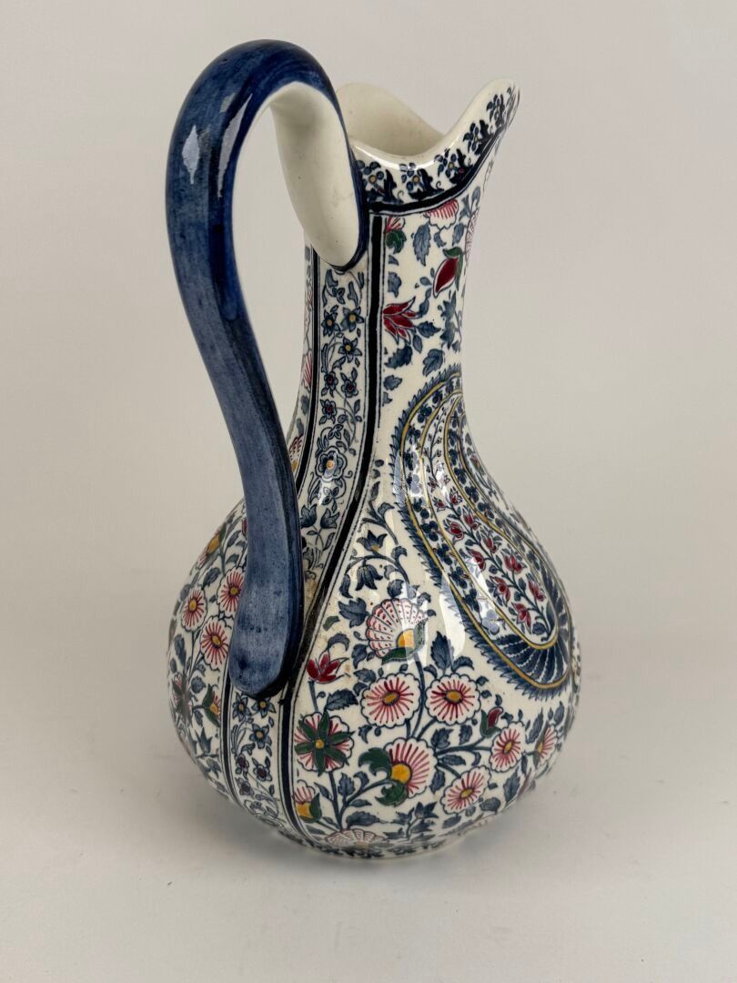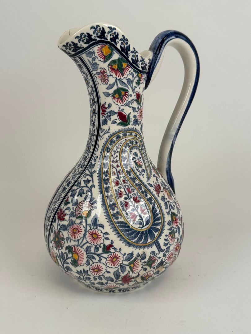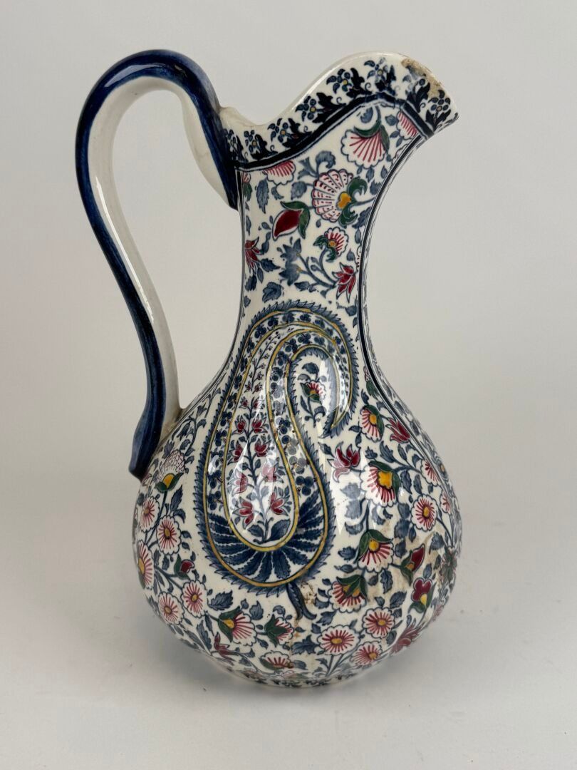 GIEN France. Polychrome earthenware jug with paisley decorat…