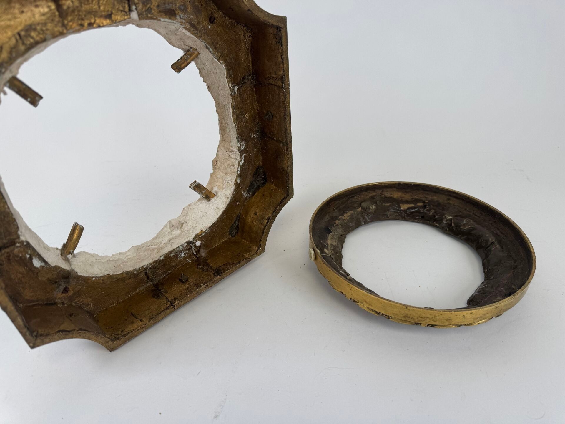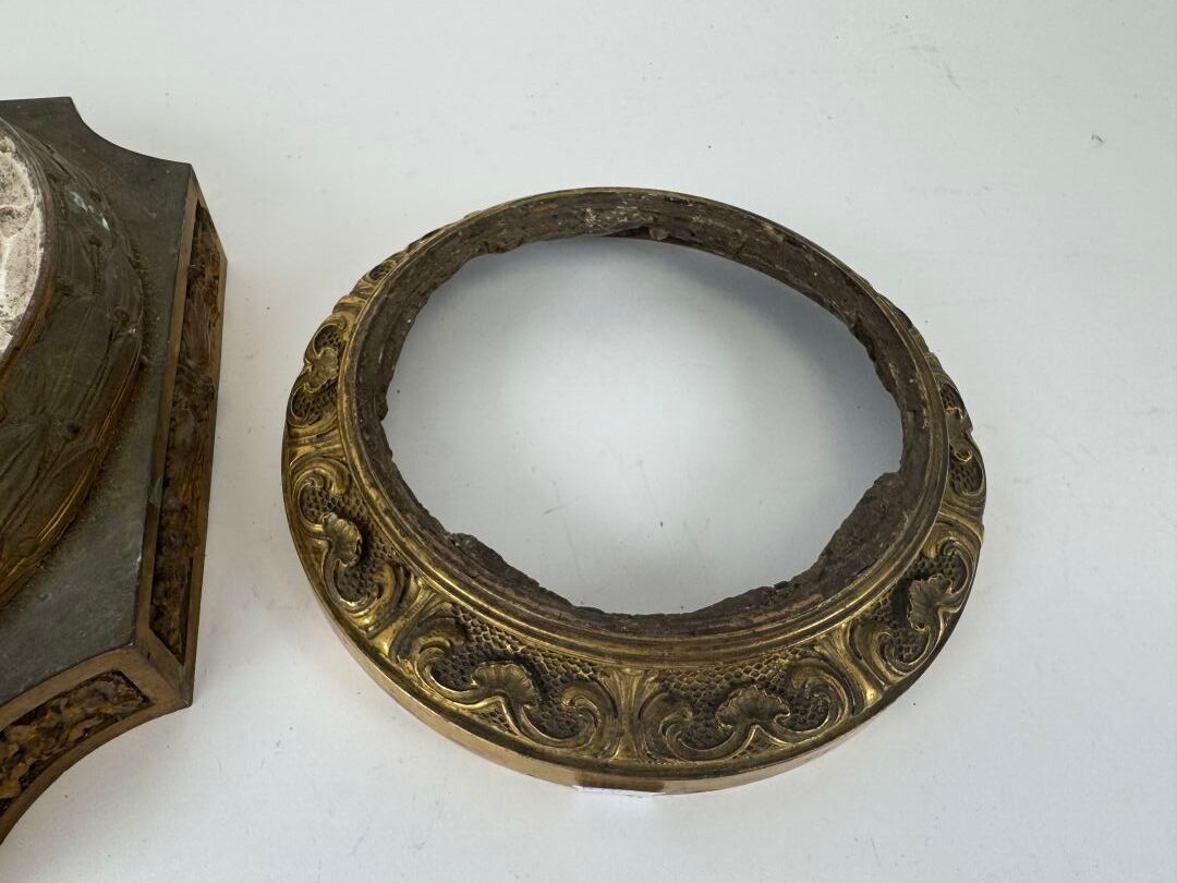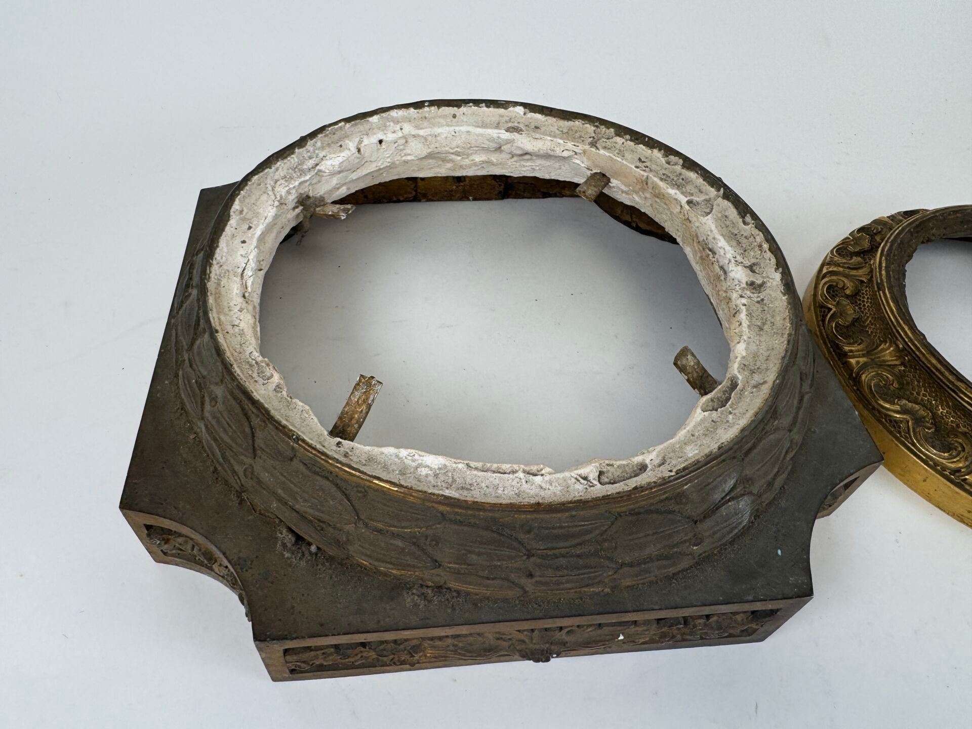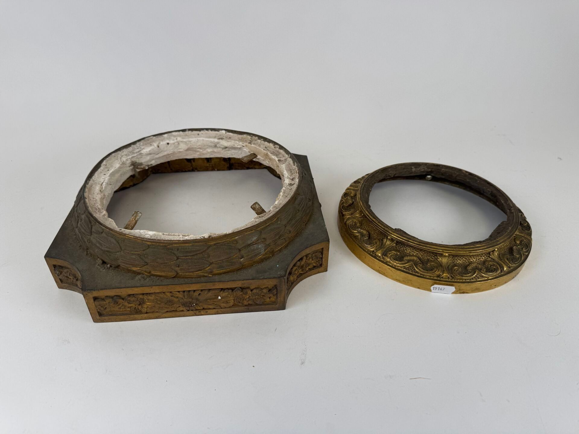 Two ormolu and chased bases decorated with foliage, one circular, the other square, the corners cut.