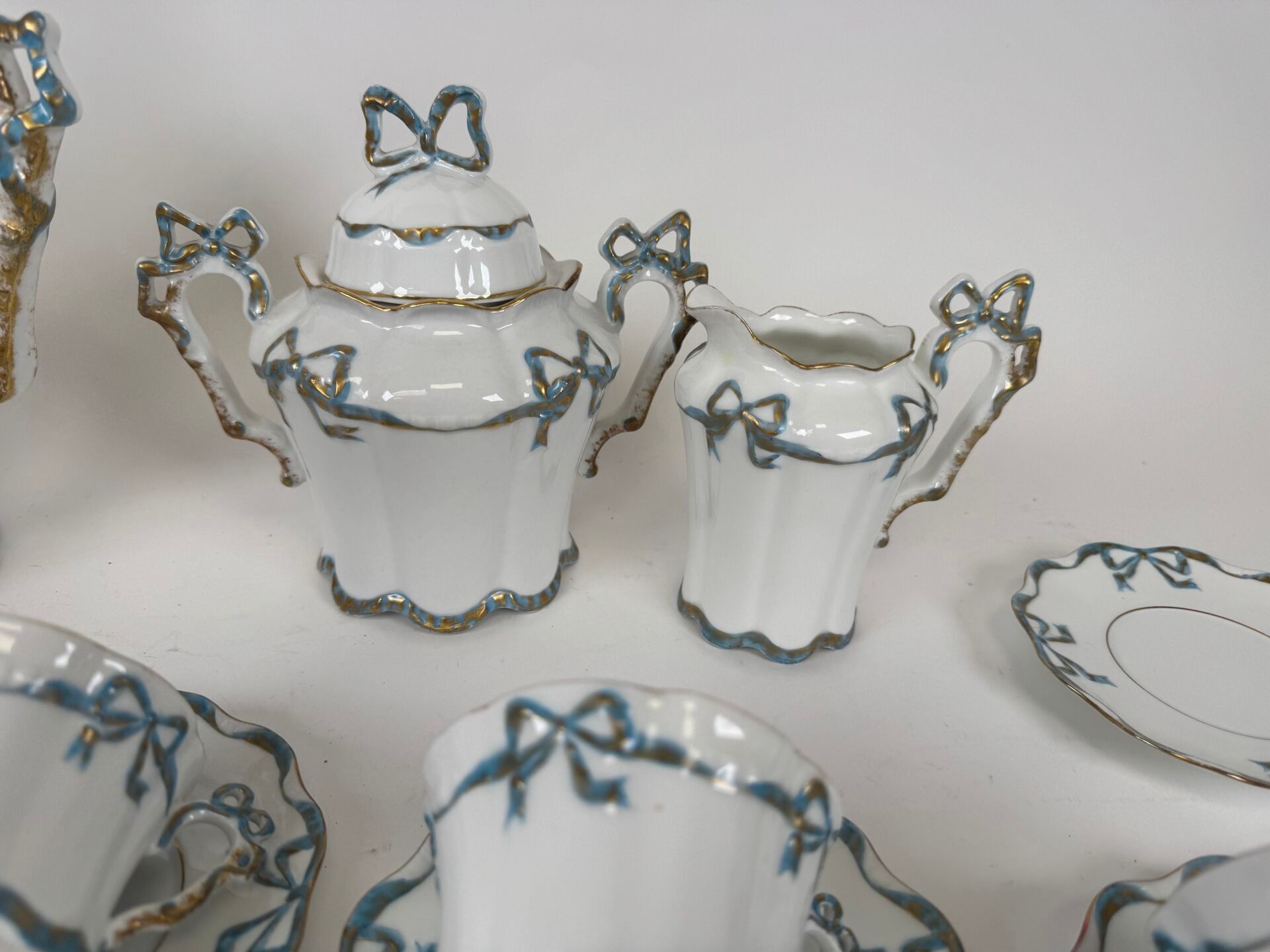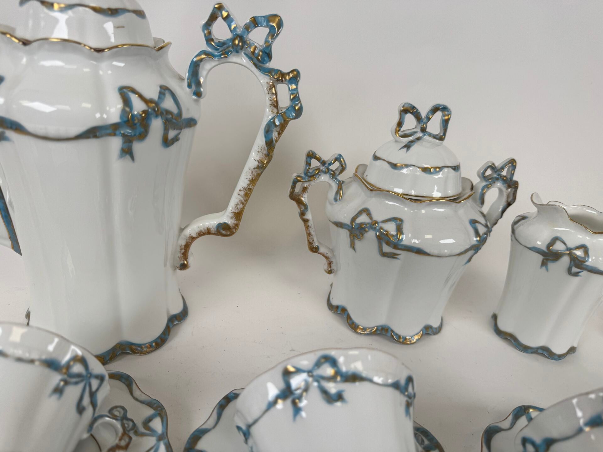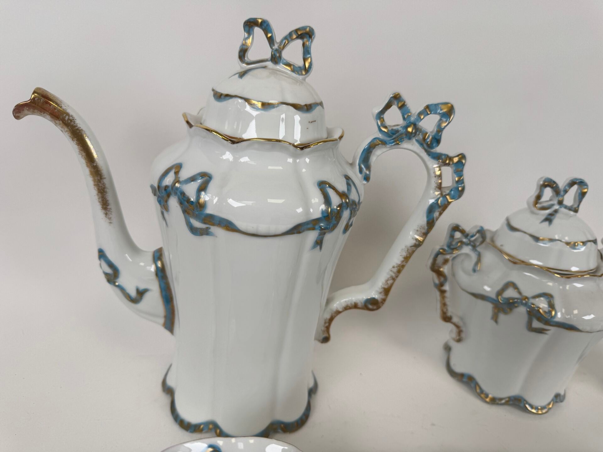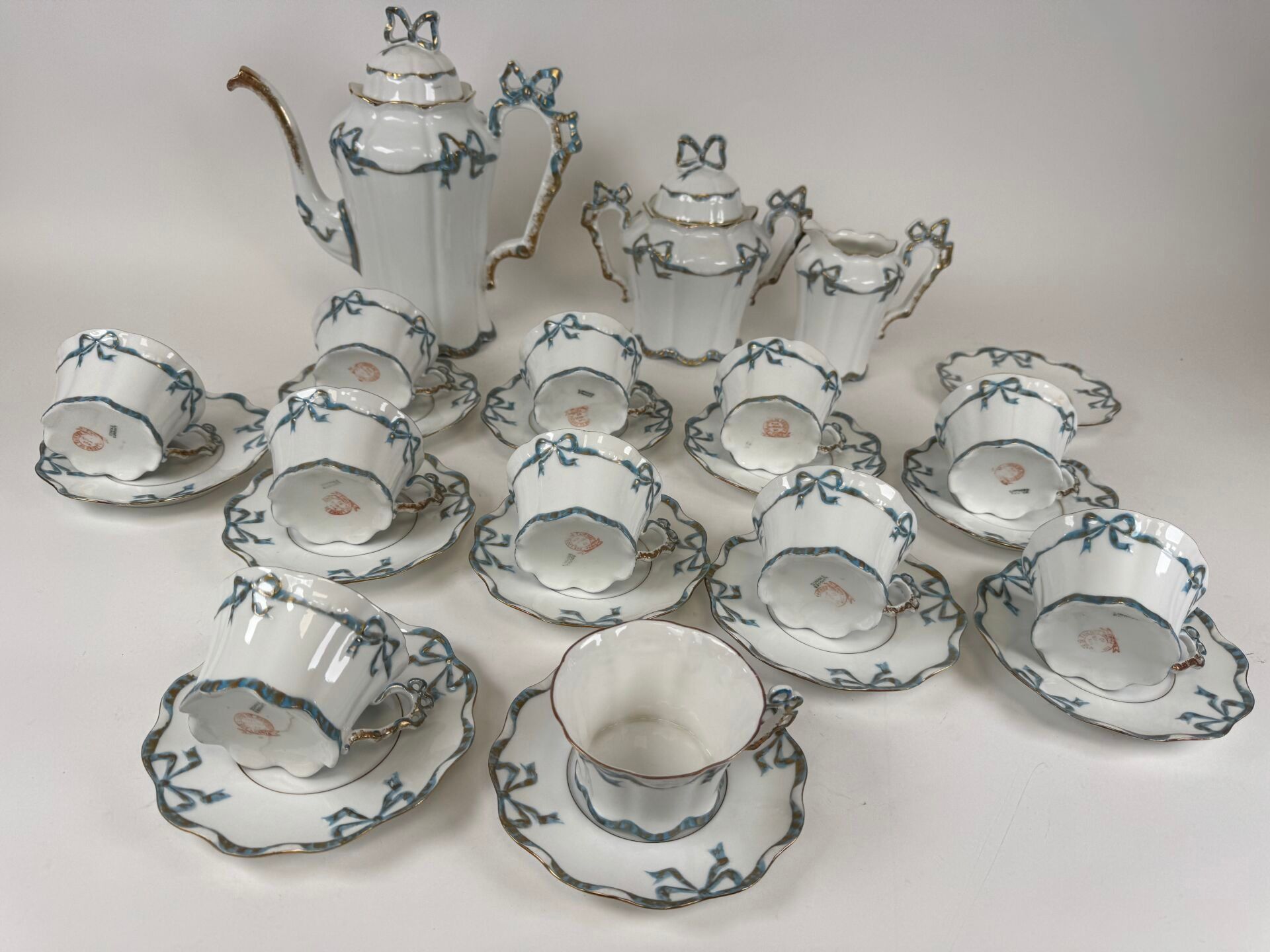 A polychrome porcelain coffee service with knot decoration comprising :