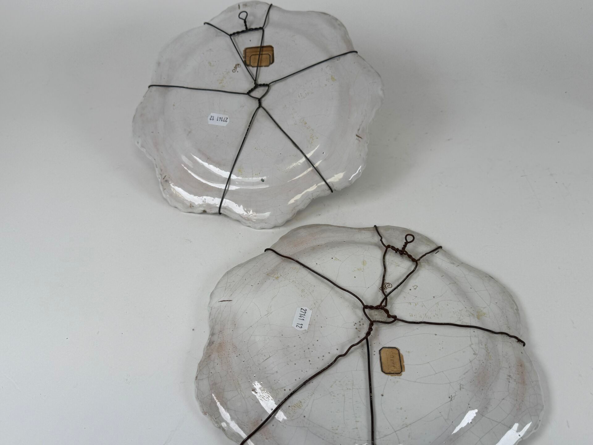 Two polychrome earthenware plates with religious figures and…